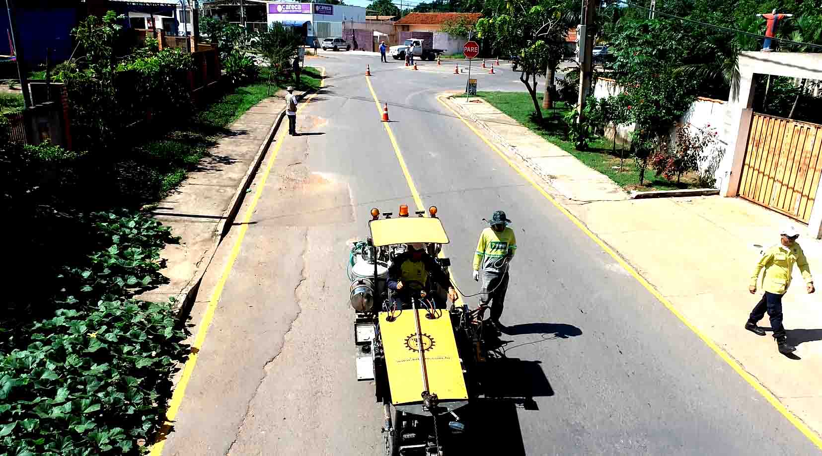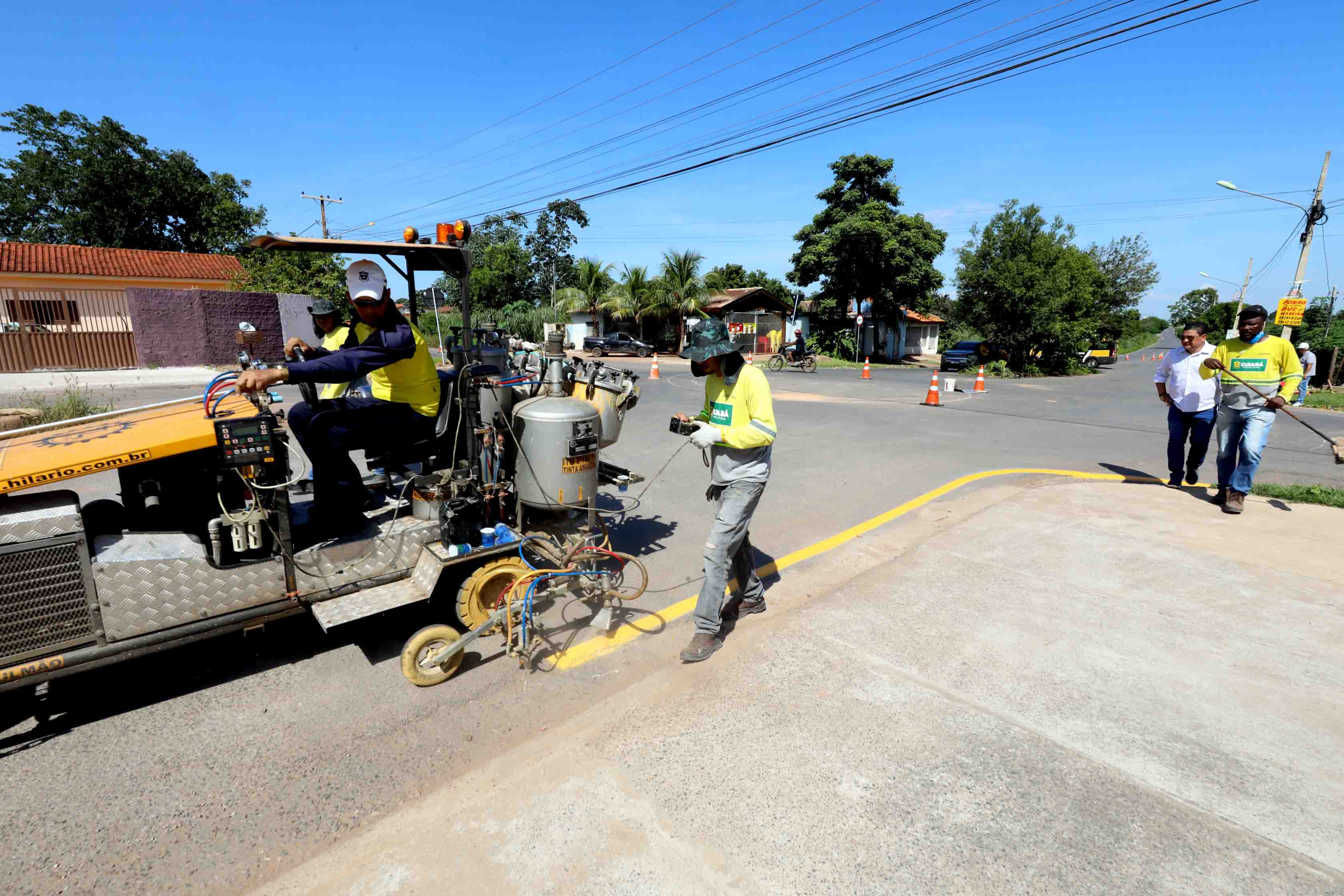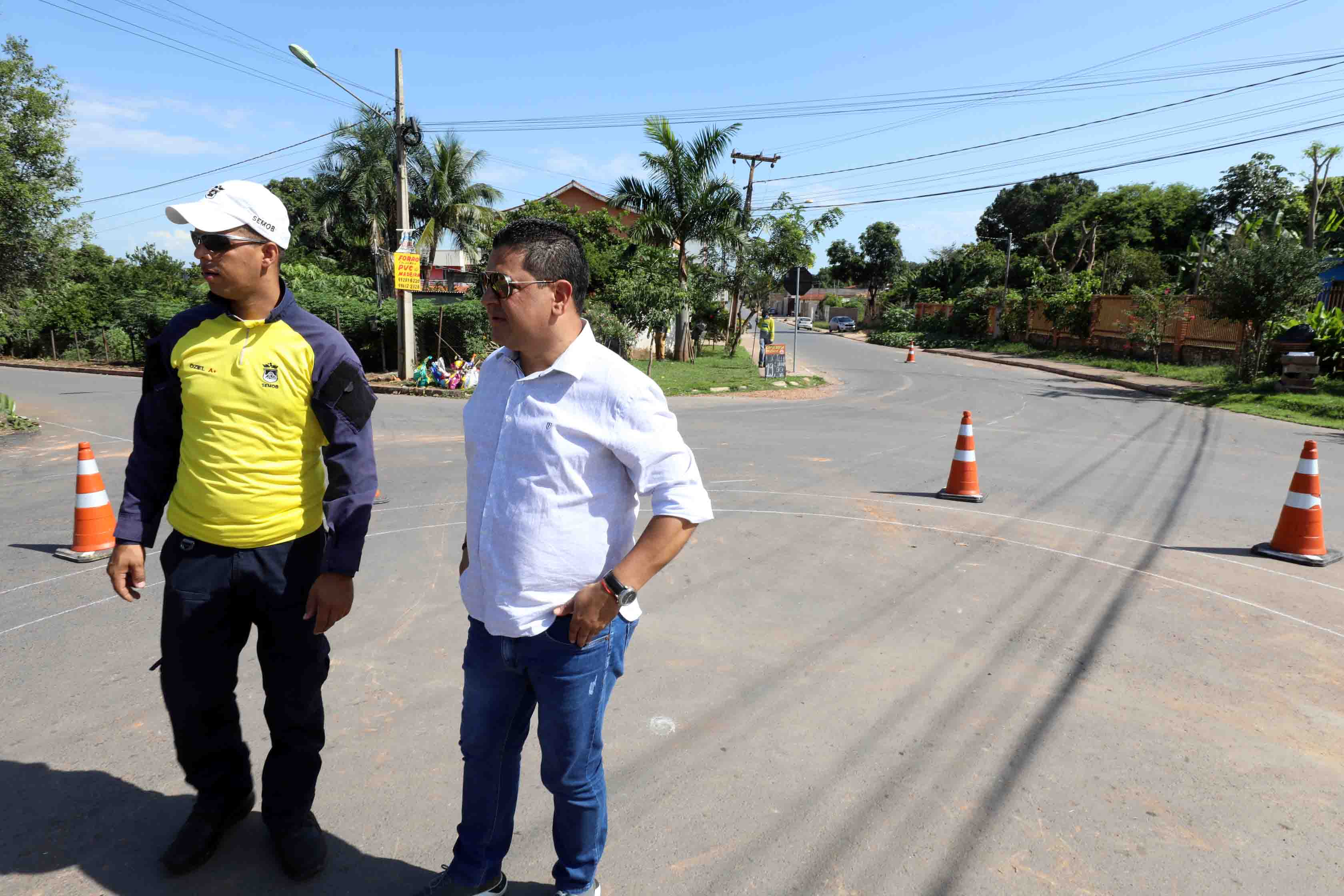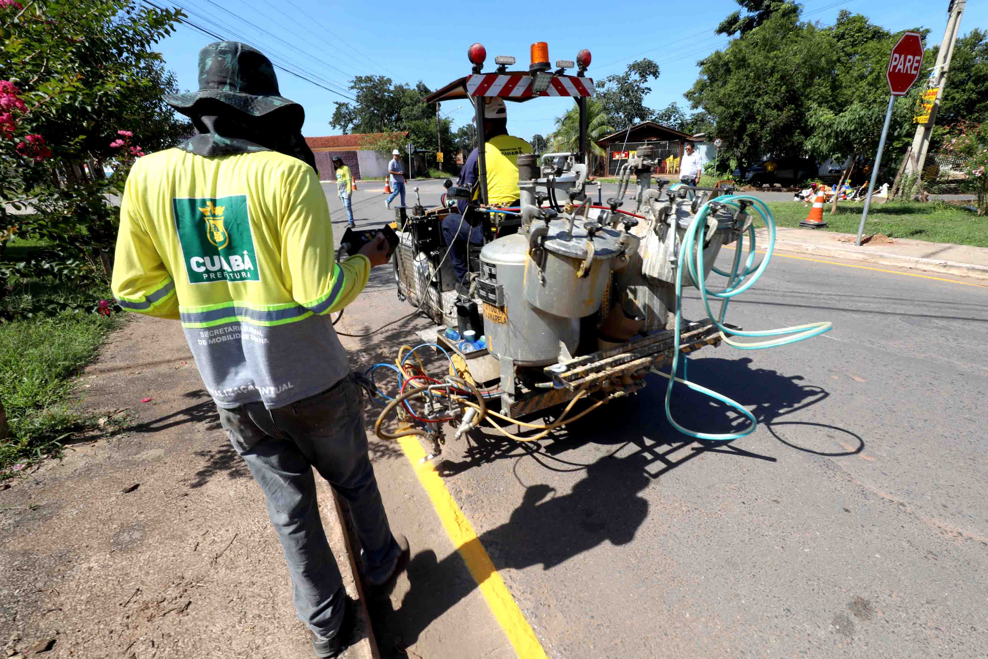 A Prefeitura de Cuiabá vem realizando obras nos quatro cantos da Capital e levando mais qualidade de vida à população dos bairros mais distantes da área central. As regiões do Jardim Paulicéia, Parque Cuiabá e Real Parque foram alguns deles. Nesta terça-feira (5), a Prefeitura de Cuiabá, por meio da Secretaria de Mobilidade Urbana (Semob), atendeu a uma solicitação da população do bairro Real Parque, e implantou uma rotatória de tachões, mais 16 placas de sinalizações, 4 aproximações (divisores de fluxo) e 3 linhas de bordo. Ainda, nesta semana serão construídas faixas de pedestres e demais sinalizações em conformidade com o Código de Trânsito Brasileiro (CTB).