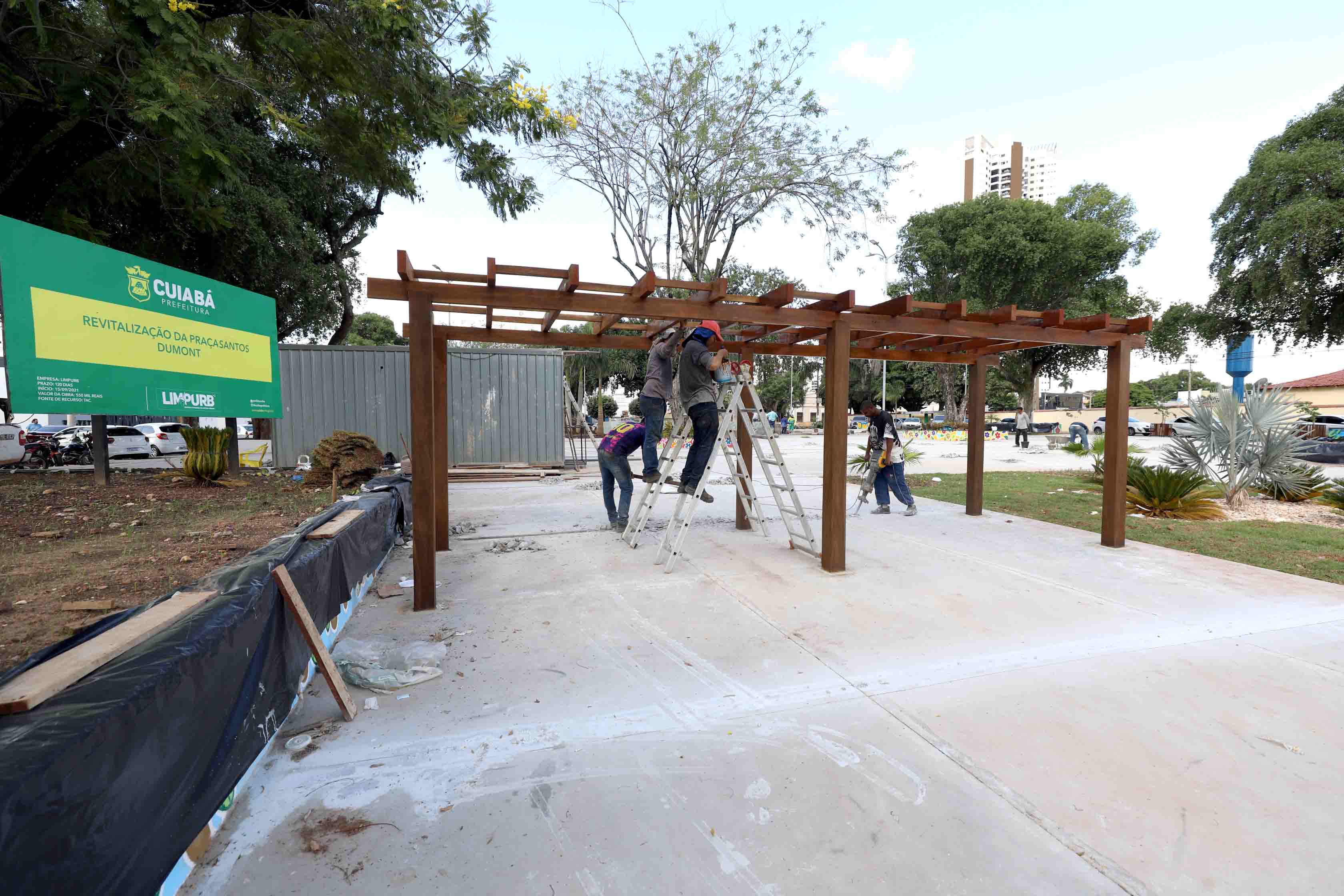 A revitalização da Praça Santos Dumont recebe o investimento aproximado de R$ 550 mil e foi iniciada em setembro de 2021. Conforme o cronograma montado, a obra deve ser concluída e entregue à população neste mês de abril, como parte da programação de comemoração do aniversário de 303 anos de Cuiabá.