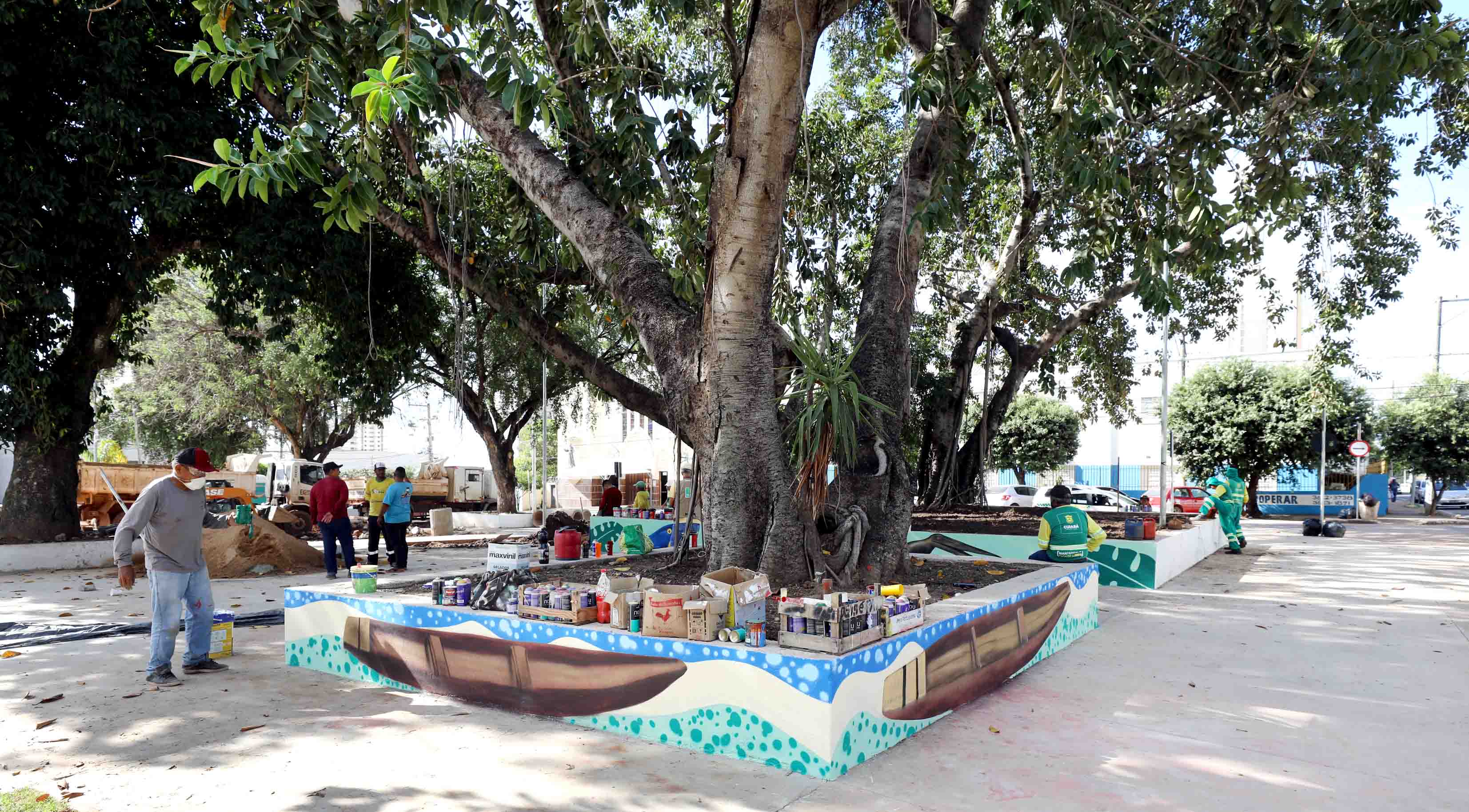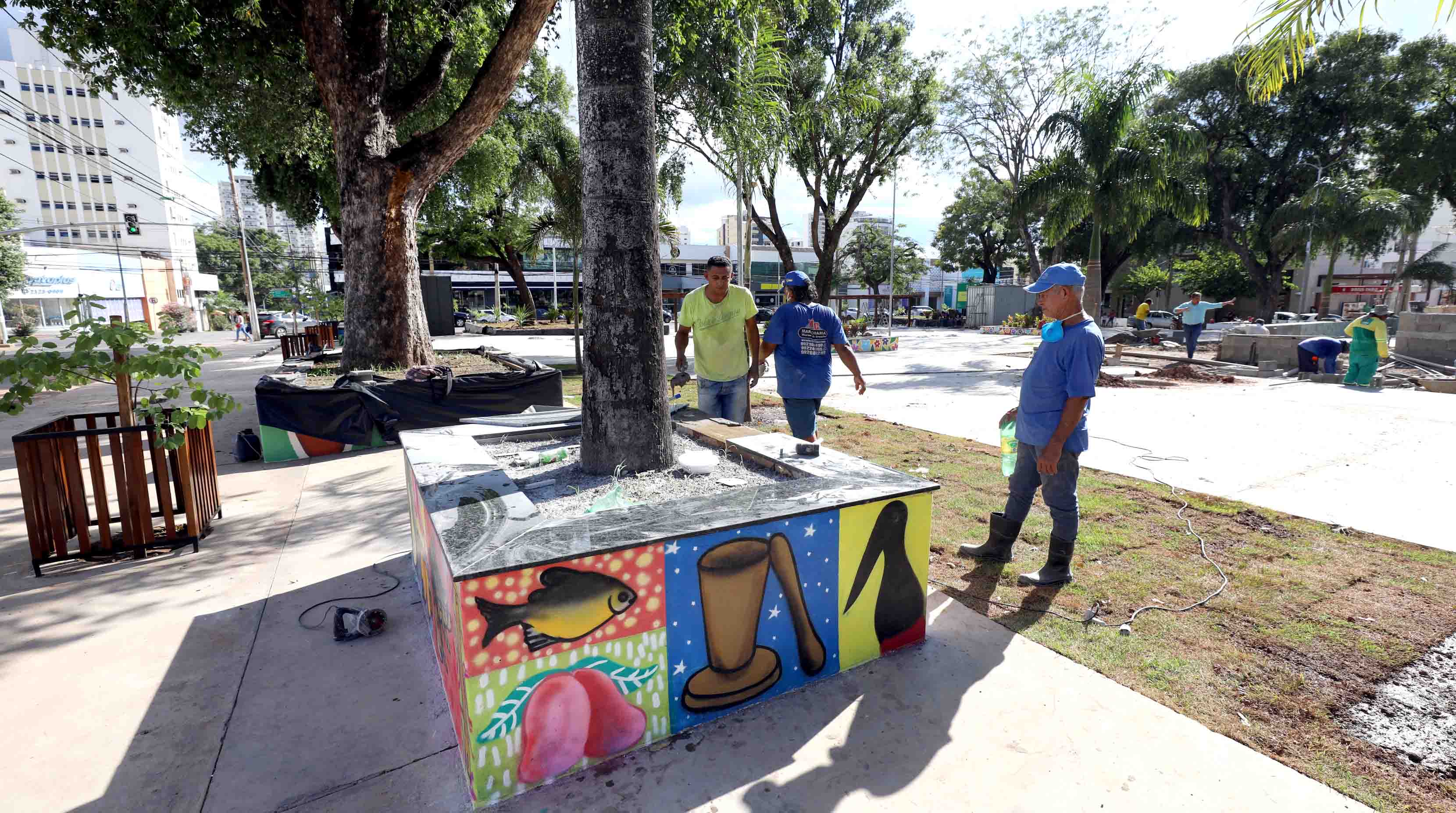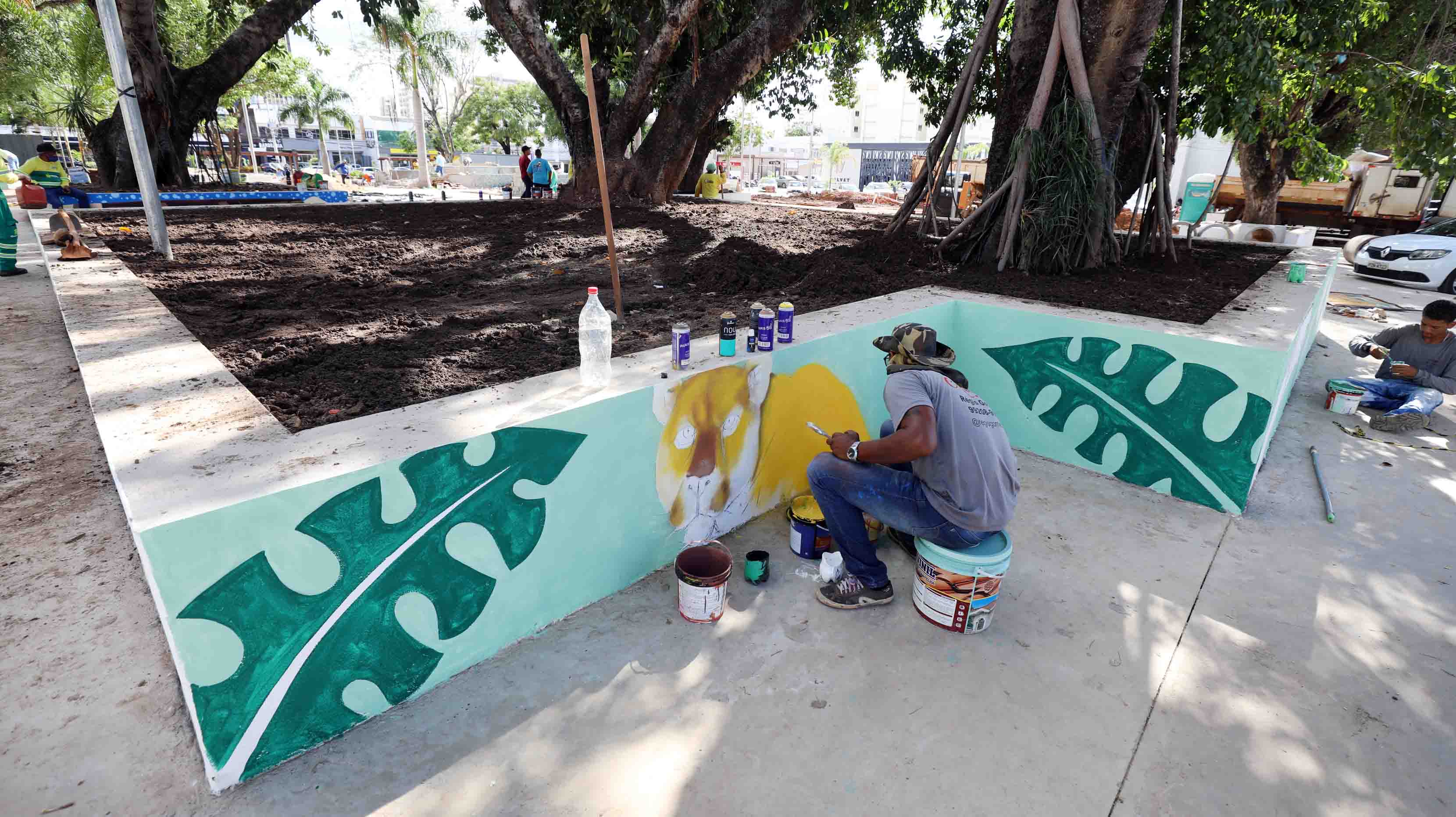 Um dos mais tradicionais espaços públicos de lazer da Capital vai ganhar um visual ainda mais cuiabano. Localizada na região central, a Praça Santos Dumont está passando por um completo processo de revitalização. O espaço contará com inúmeras novidades, como as pinturas de figuras que representam a história, cultura, fauna e flora de Cuiabá.