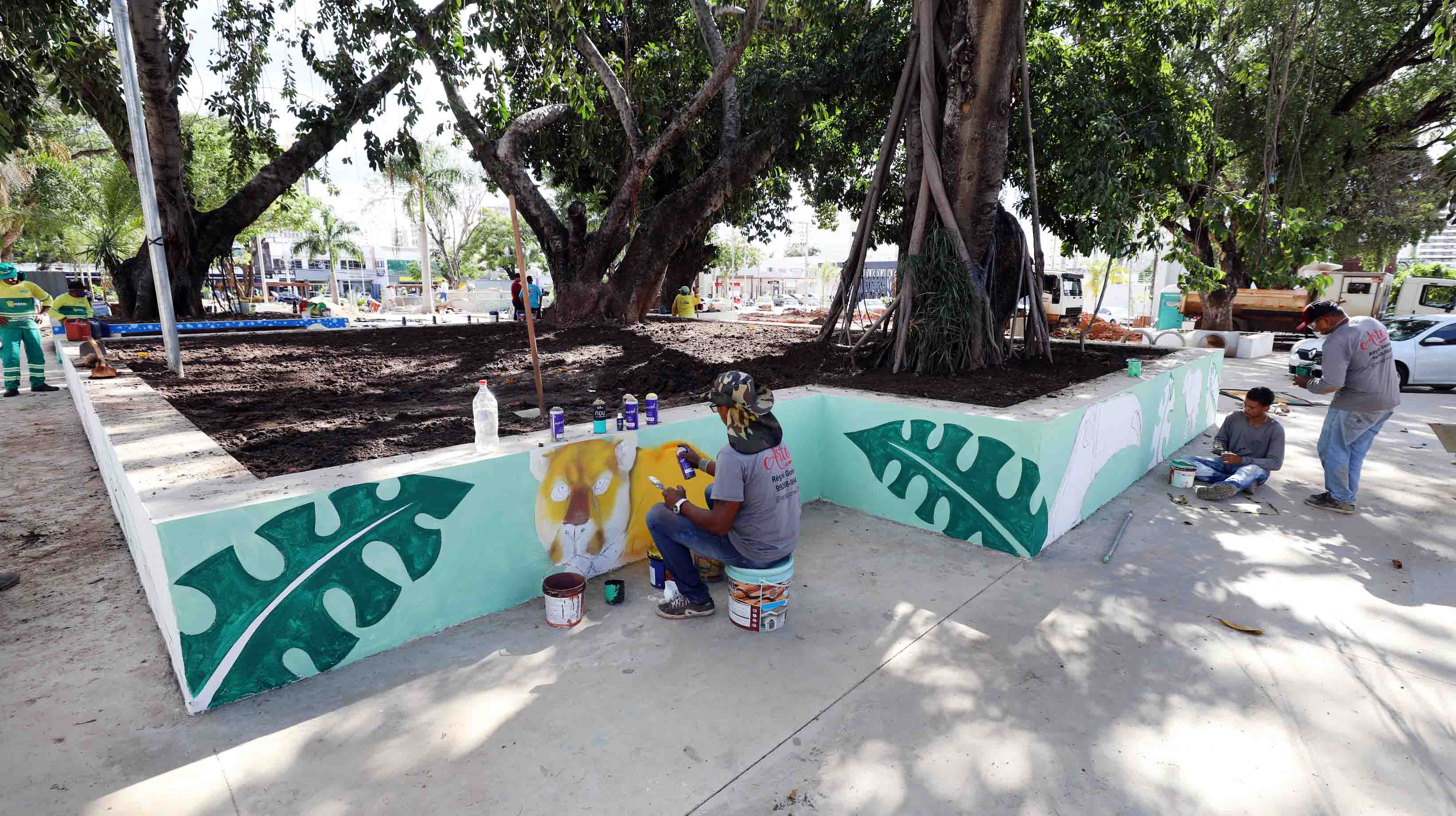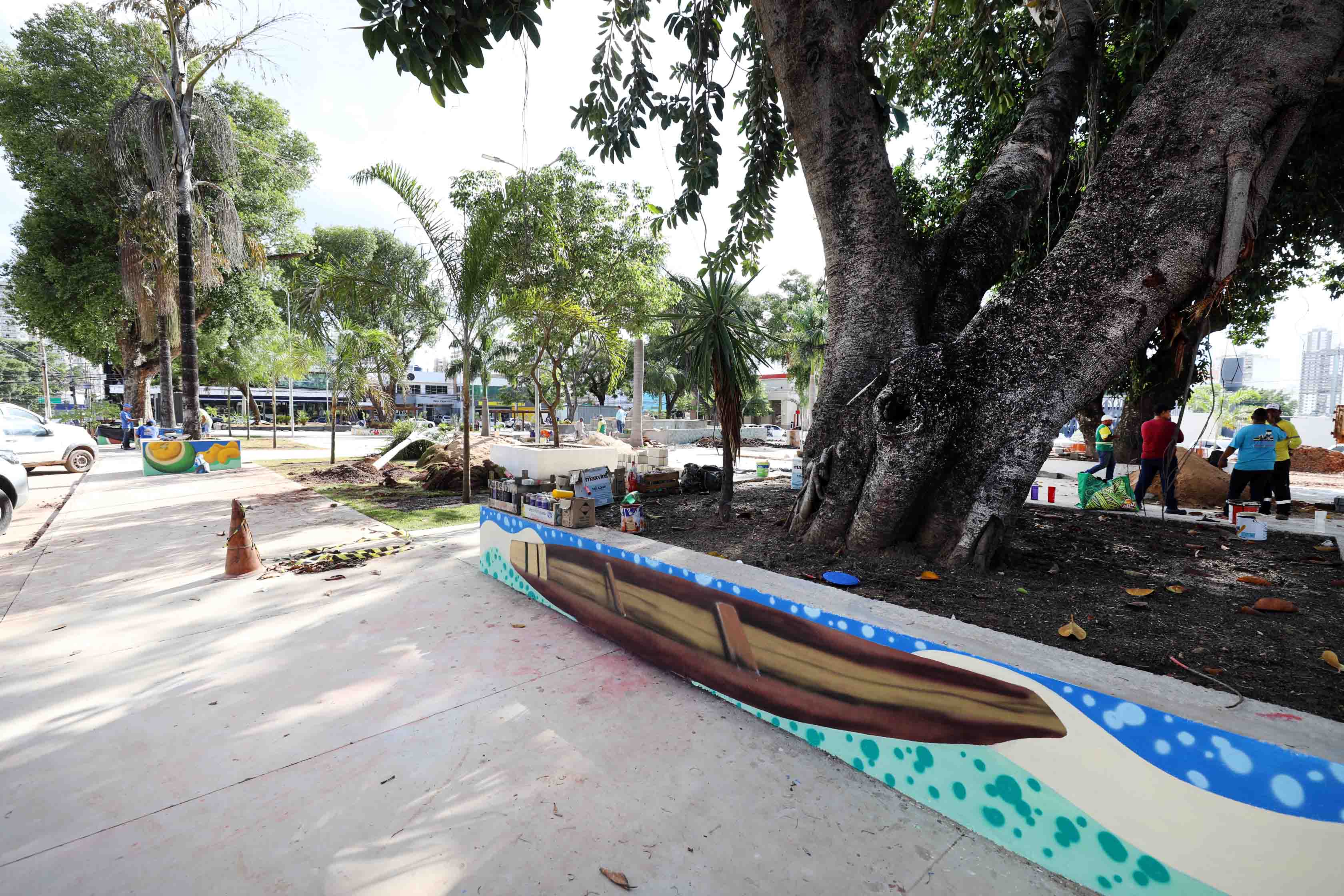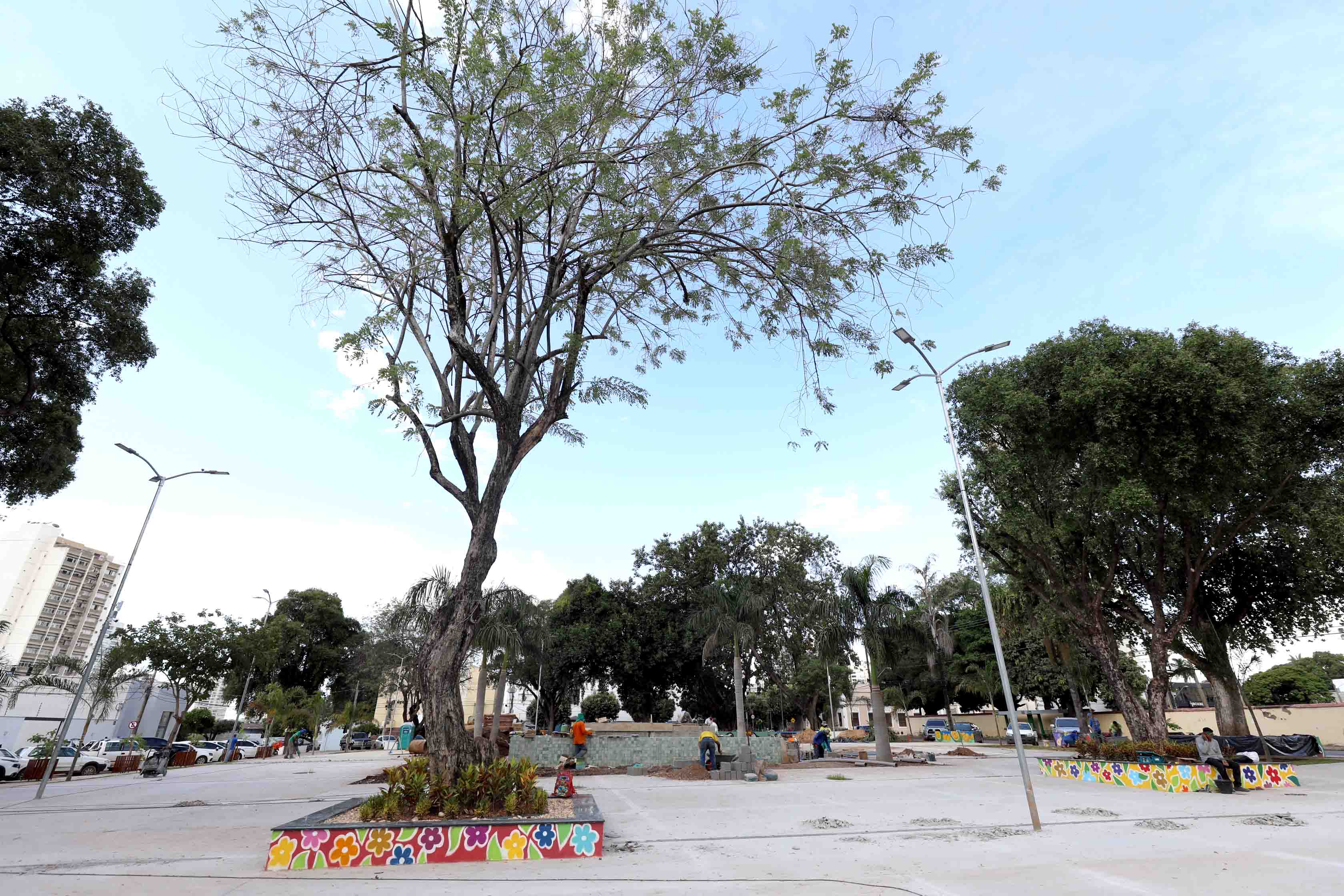 Um dos mais tradicionais espaços públicos de lazer da Capital vai ganhar um visual ainda mais cuiabano. Localizada na região central, a Praça Santos Dumont está passando por um completo processo de revitalização. O espaço contará com inúmeras novidades, como as pinturas de figuras que representam a história, cultura, fauna e flora de Cuiabá.