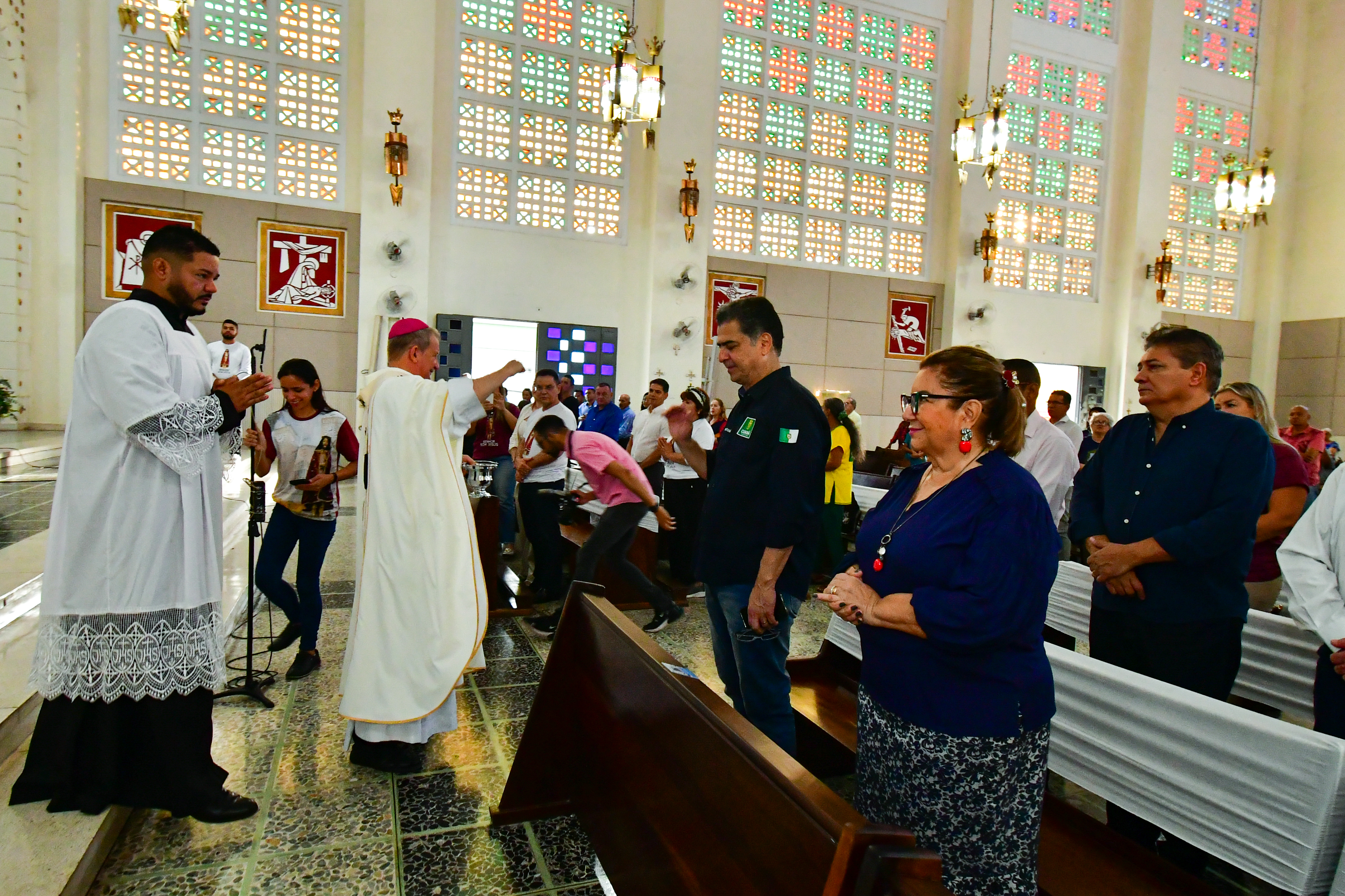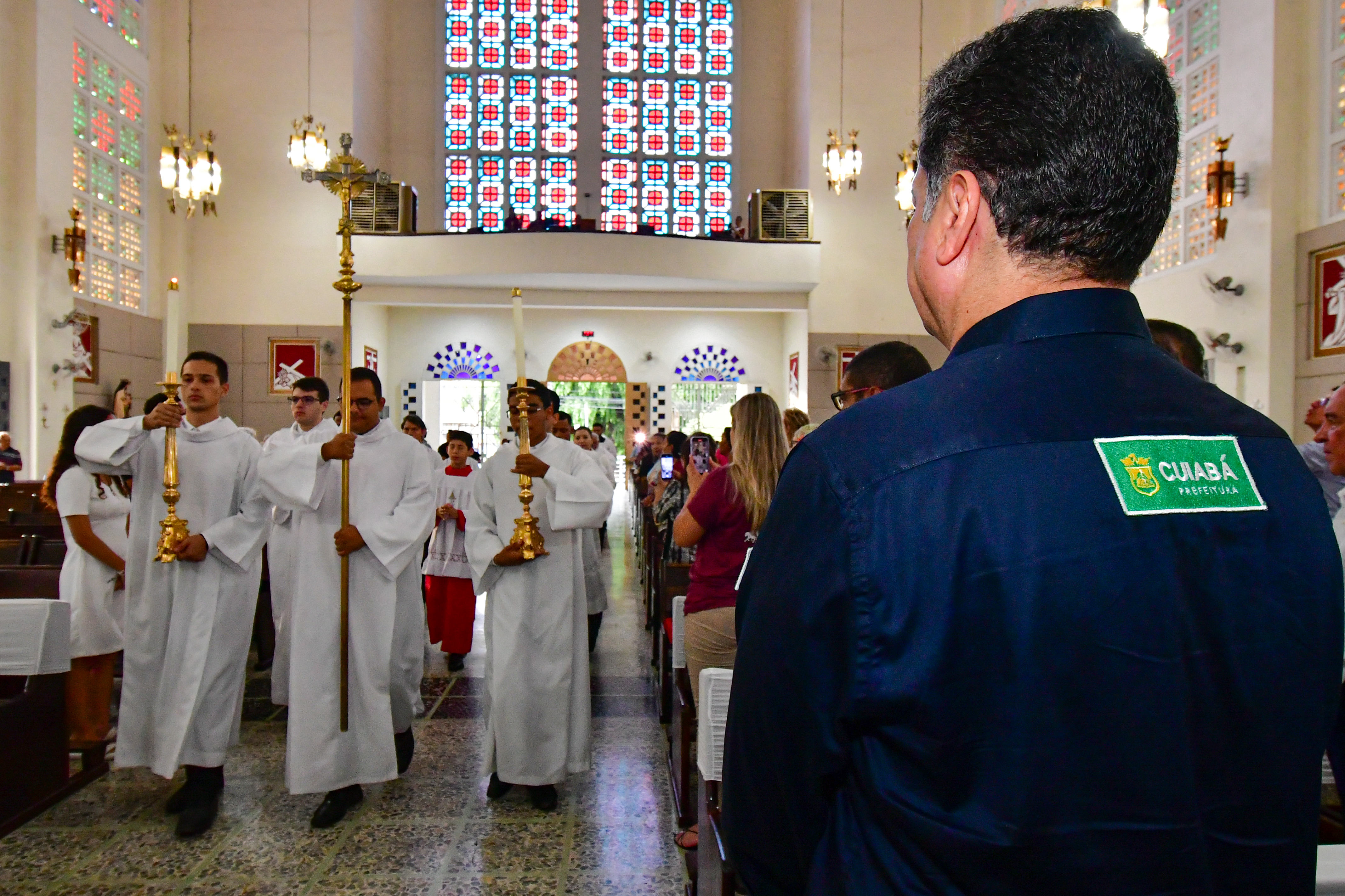 Na manhã de hoje, 8 de abril, data de celebração dos 305 anos de Cuiabá, as comemorações iniciaram cedo. O prefeito de Cuiabá, Emanuel Pinheiro, participou da Santa Missa na Catedral Basílica do Senhor Bom Jesus de Cuiabá. A celebração foi realizada pelo arcebispo metropolitano de Cuiabá, Dom Mário Antônio da Silva e pelos padres Deustedh Almeida e Felisberto Samuel. O gestor, ao lado das secretária da Mulher, Celly Almeida, entrou na igreja carregando a bandeira de Cuiabá.