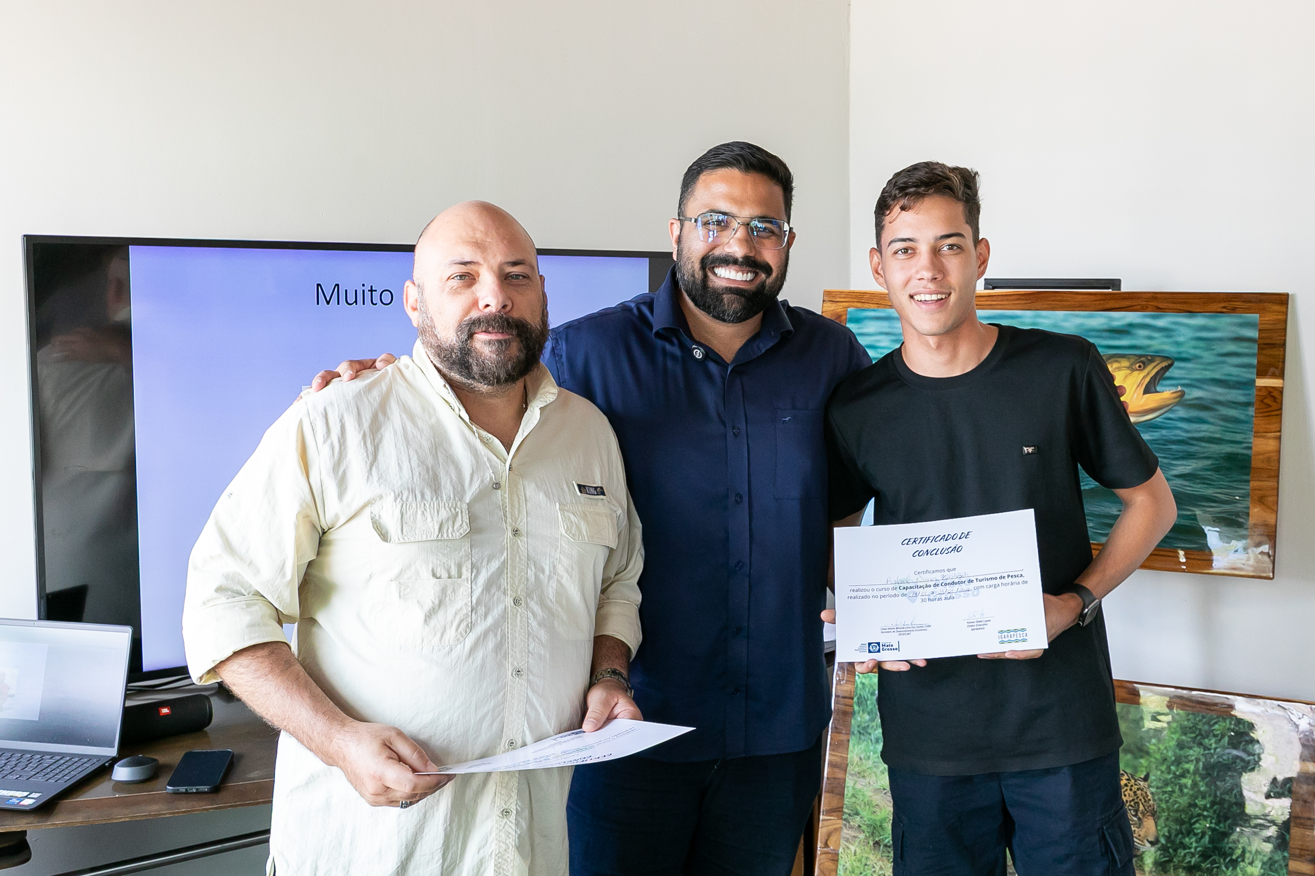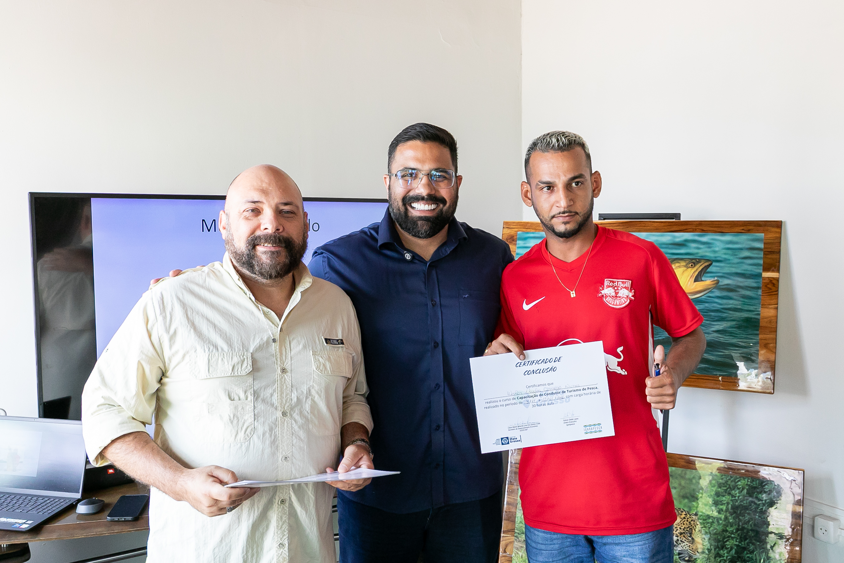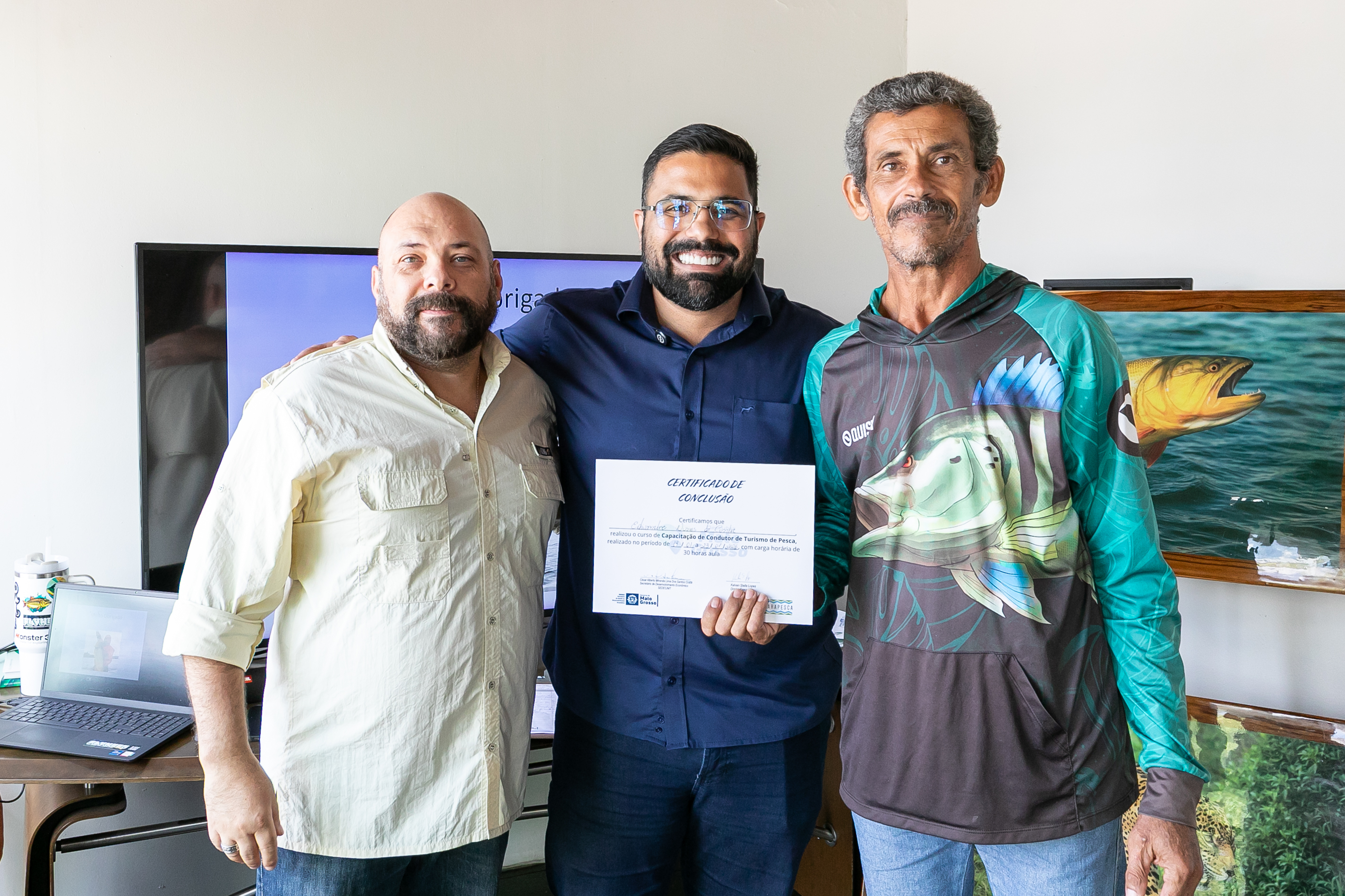 A capacitação em Condução de Pesca Esportiva foi concluída na manhã desta sexta-feira (23), na sede da Secretaria Municipal de Desenvolvimento Econômico, Trabalho, Turismo e Agricultura (SDTA), marcando um avanço importante para o fortalecimento do turismo sustentável em Cuiabá. A formação contou com aula prática realizada na Marina Sérgio Motta, sob a ponte de mesmo nome, às margens do Rio Cuiabá, no bairro Praeirinho, aproximando os participantes do ambiente real de atuação profissional.