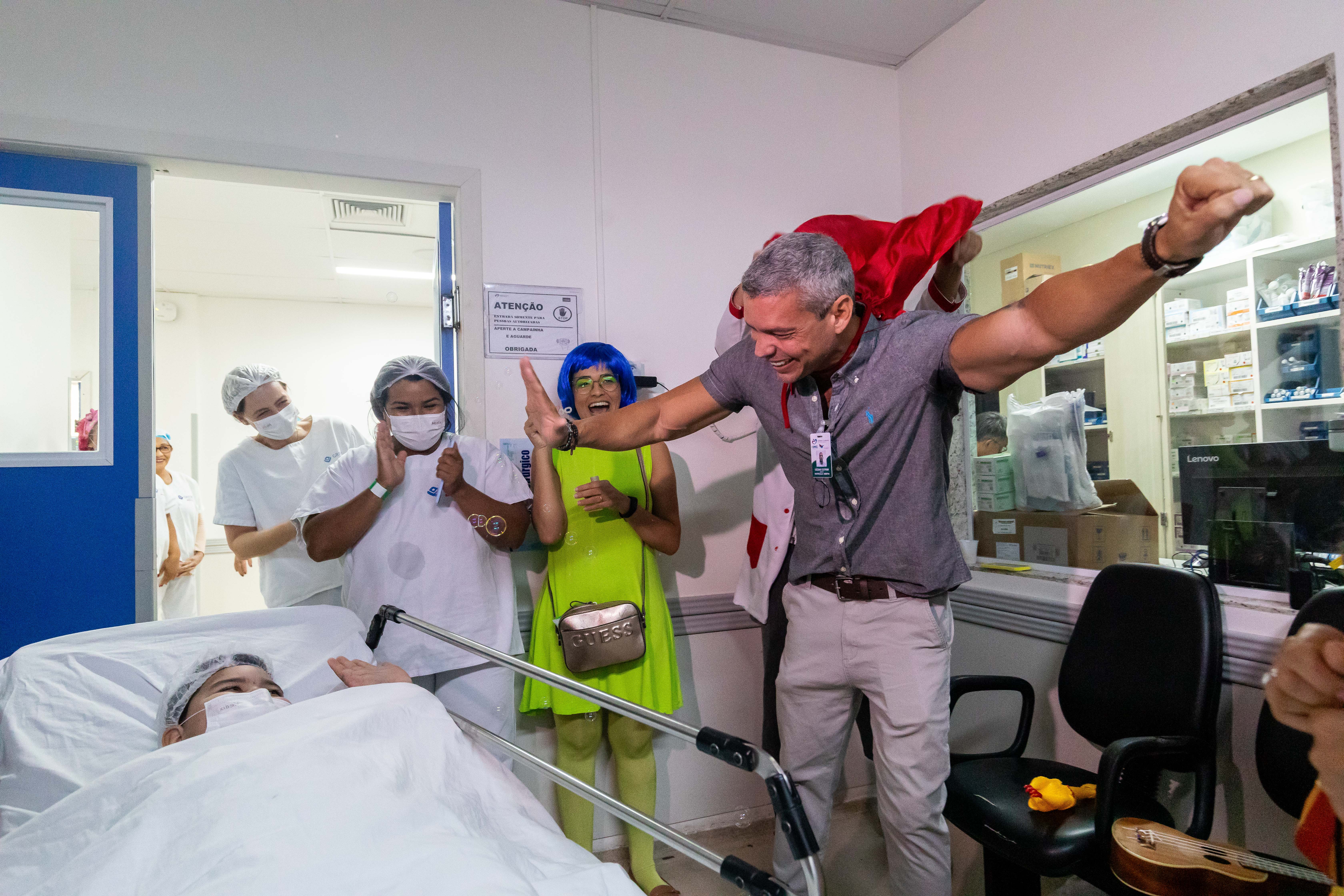 Na manhã deste sábado, um dos momentos mais emocionantes foi protagonizado pela Equipe Lúdica do HMC que vestida dos personagens do desenho divertidamente, que acompanhou os pacientes até o centro cirúrgico, levando acolhimento, leveza e conforto emocional a eles e seus familiares. A ação reforça o compromisso da unidade com um atendimento humanizado e empático.