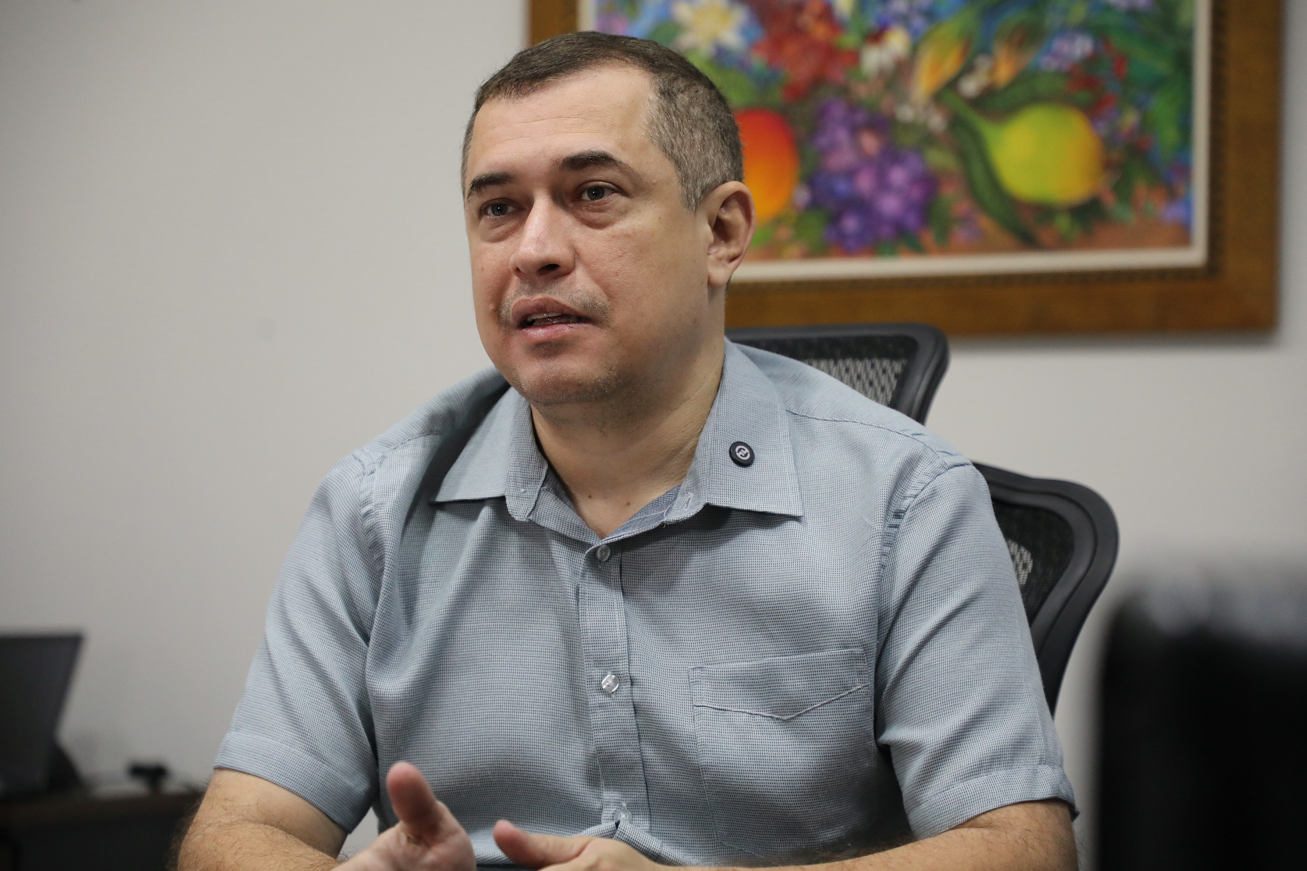 A matéria é ilustrada com a imagem do secretário Marcelo Bussiki, sentado numa cadeira de cor preta, com camisa de cor cinza. No fundo, há um quadro colorido.
