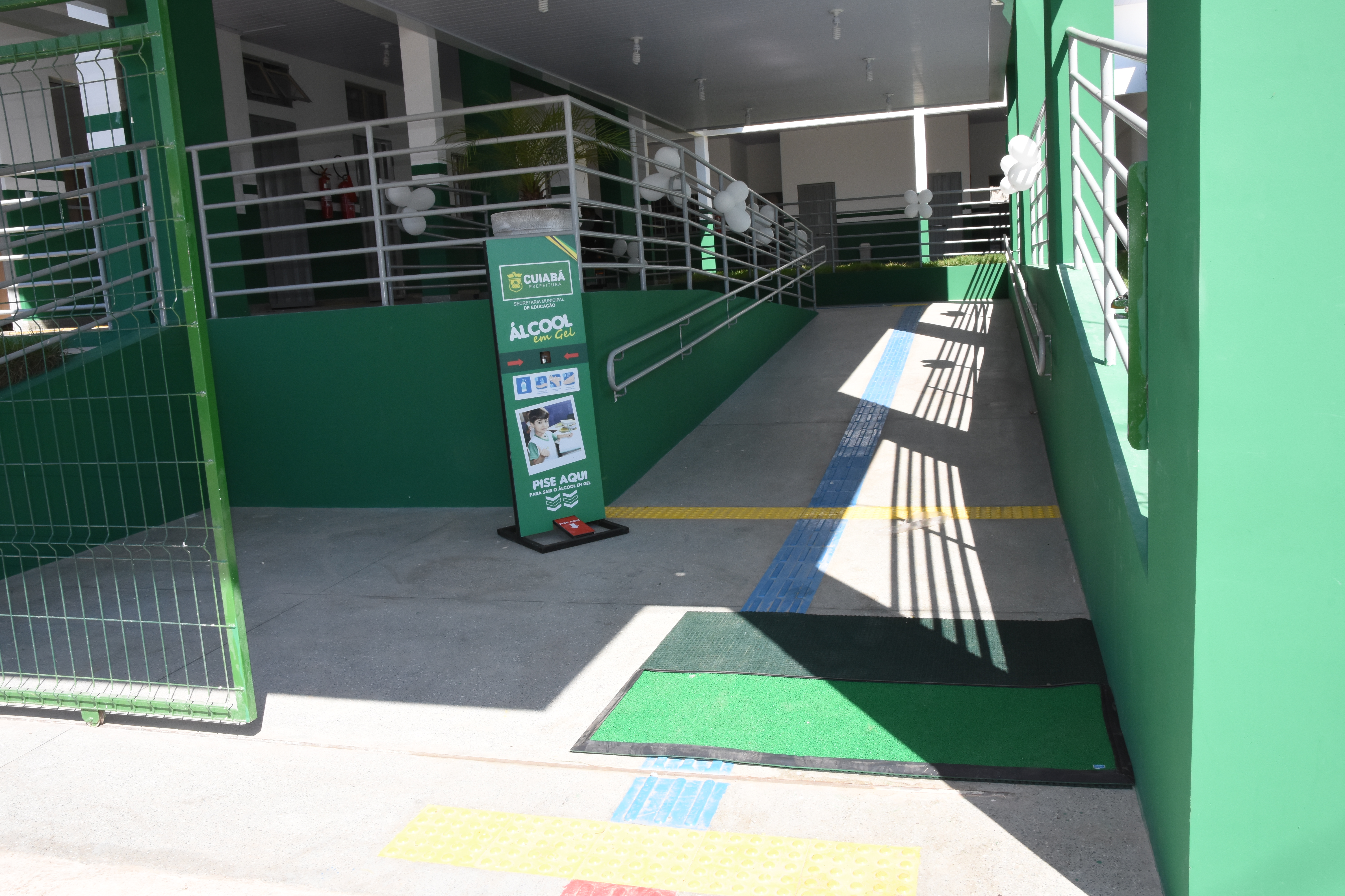 Dentro da estratégia para a implementação dos protocolos de biossegurança a Secretaria Municipal de Educação disponibilizou para as unidades educacionais dispenser para álcool, tapetes sanitizantes, produtos para desinfecção do espaço, máscaras para os estudantes e profissionais entre outros itens.