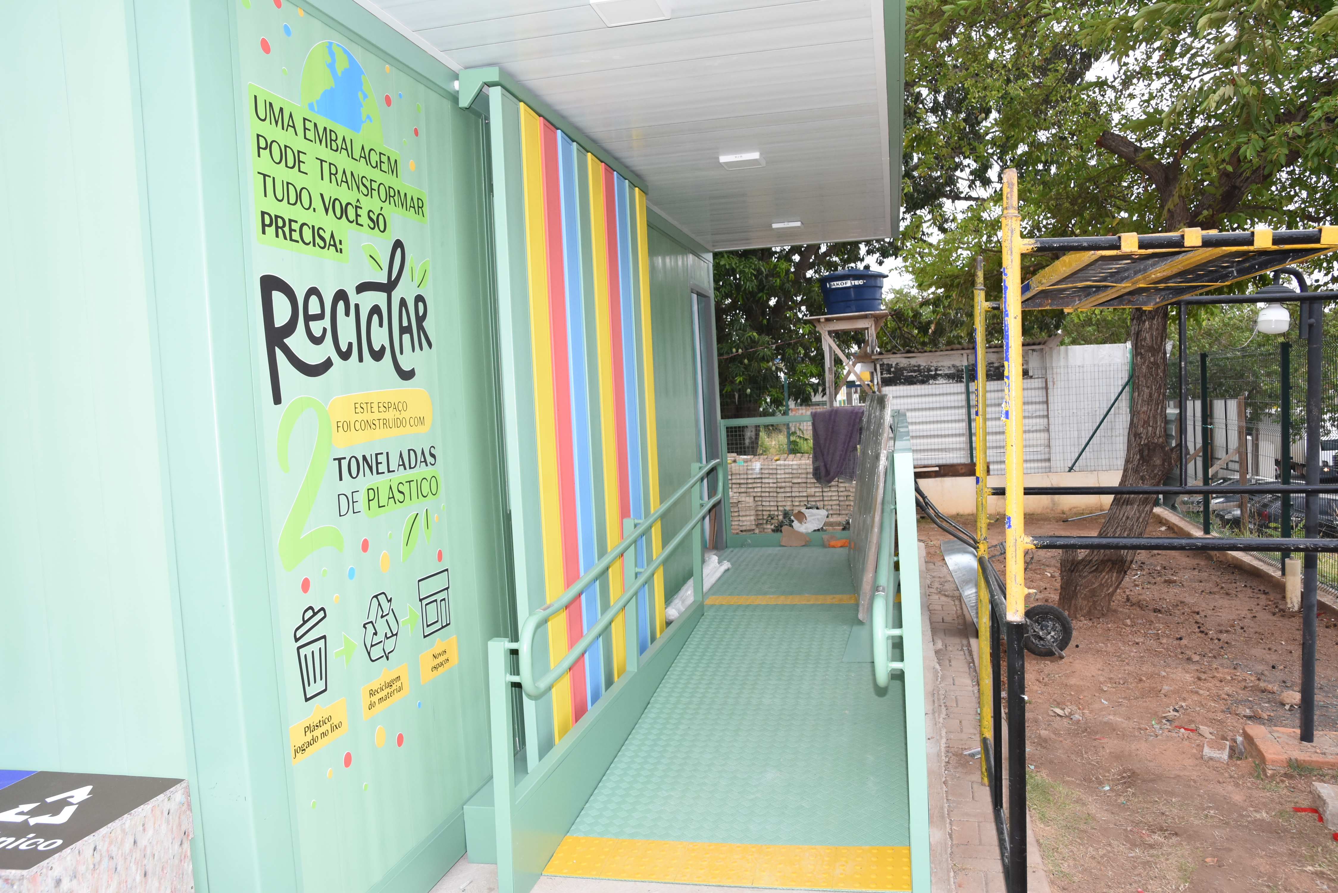 Instalado na Escola Municipal de Educação Básica (EMEB) Madre Marta Cerutti, no bairro Bela Vista, o espaço pedagógico, de 30m², no formato de um cubo, foi construído com aproximadamente 2,2 toneladas de plástico reciclado e, a partir de agora, está pronto para receber estudantes da rede pública municipal de ensino.