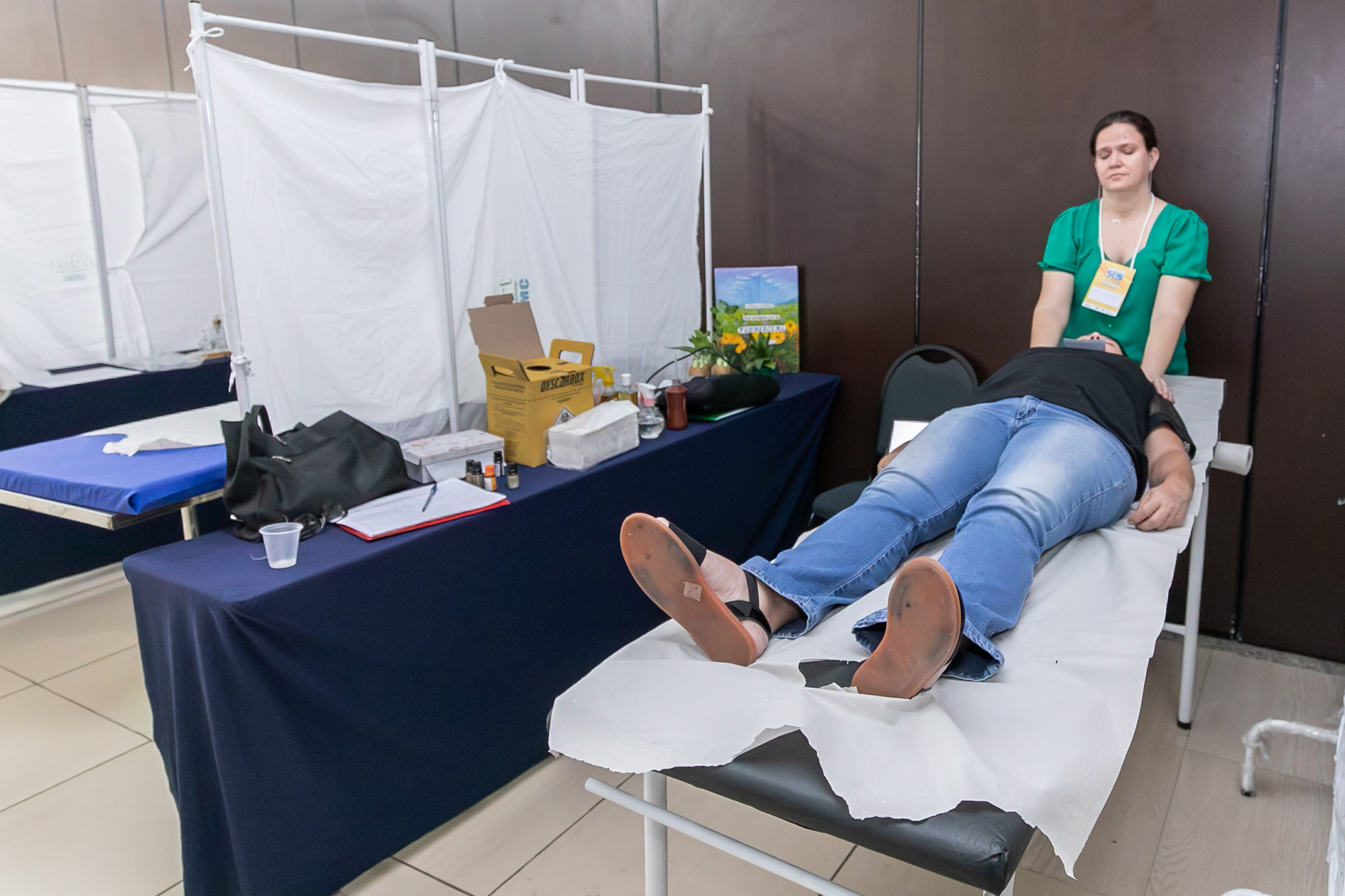 Durante os três dias de conferência, os participantes experimentaram atendimentos rápidos com foco em relaxamento, alívio de dores e equilíbrio emocional. Além disso, são oferecidas orientações sobre como acessar esses serviços na rede pública.