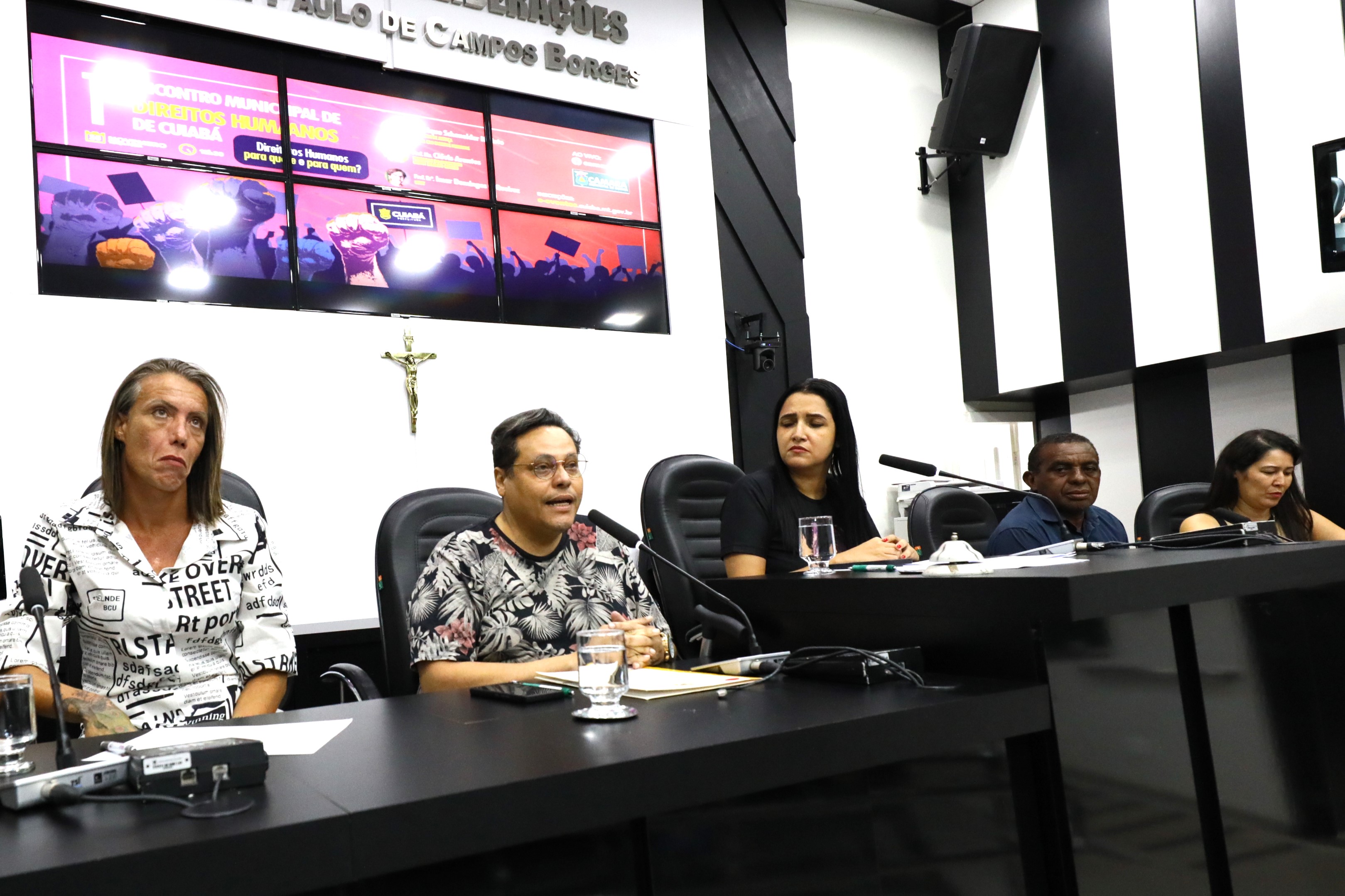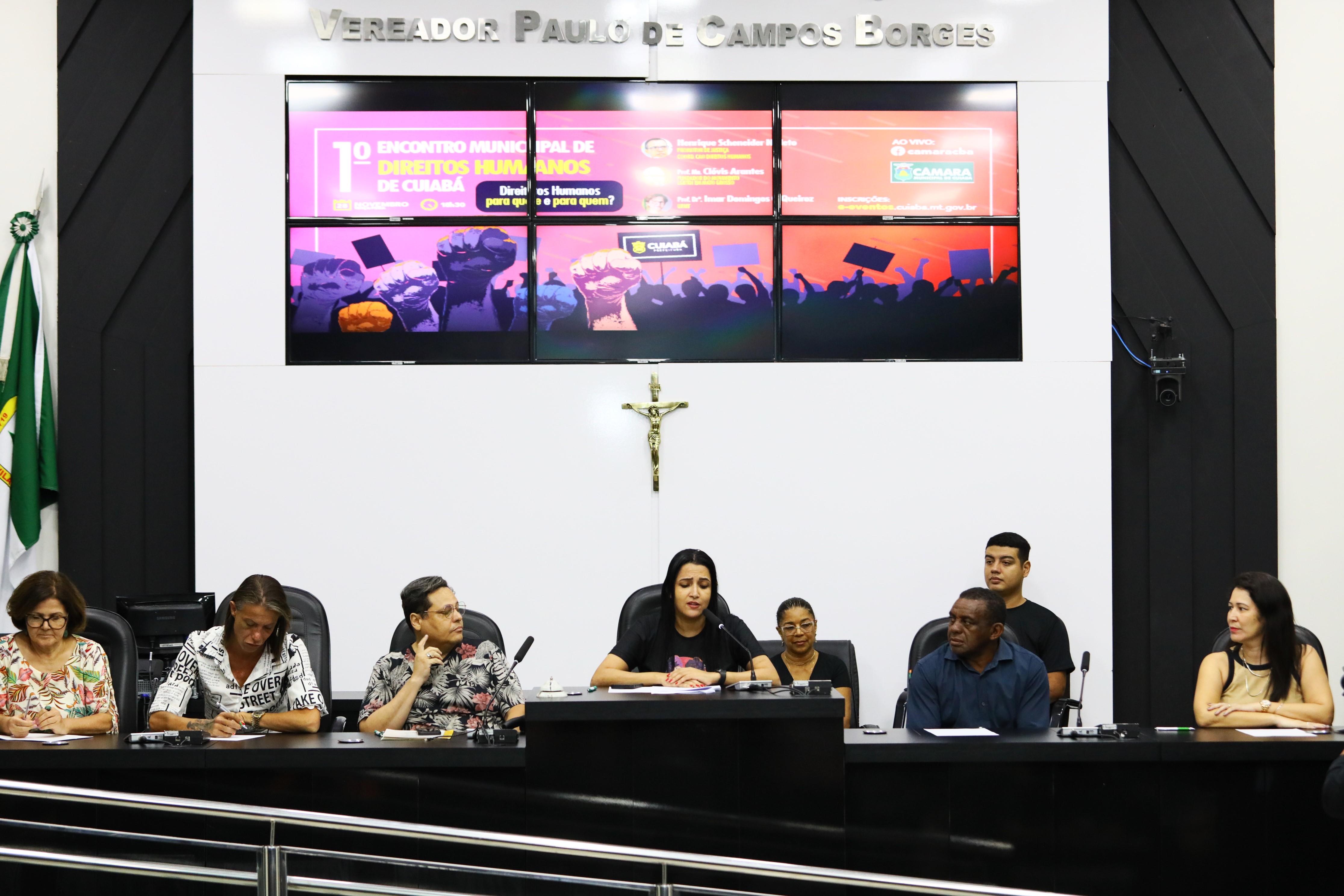 "Direitos Humanos: Para que e Para quem?" foi a temática do 1º Encontro Municipal de Direitos Humanos, realizado na noite desta terça-feira (28), no Plenário das Deliberações da Câmara Municipal de Vereadores. Uma iniciativa promovida pela Prefeitura de Cuiabá objetivando chamar à atenção da sociedade sobre todos os direitos da população, independentemente de raça, credo, cor, gênero e tantas outras questões.