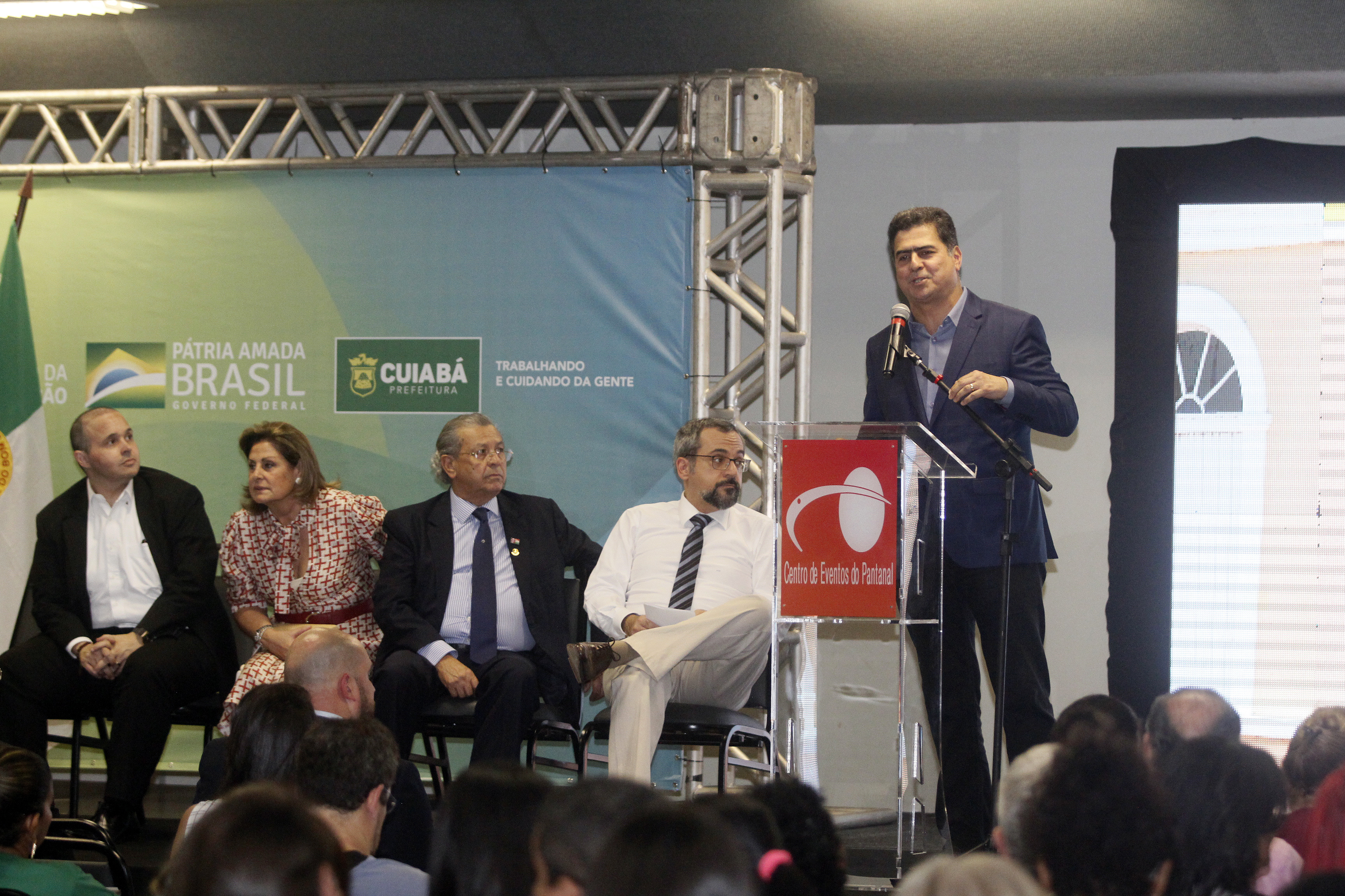 O prefeito Emanuel Pinheiro, acompanhado pela primeira-dama Marcia Pinheiro e ao lado de autoridades federais, municipais e profissionais da rede pública municipal de Cuiabá, recepcionou o ministro e disse que está tentando articular uma previsão para infraestrutura e construção de novas unidades.