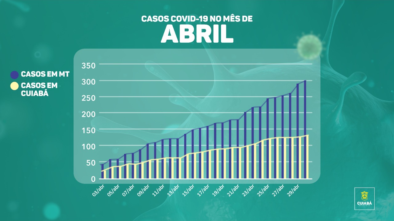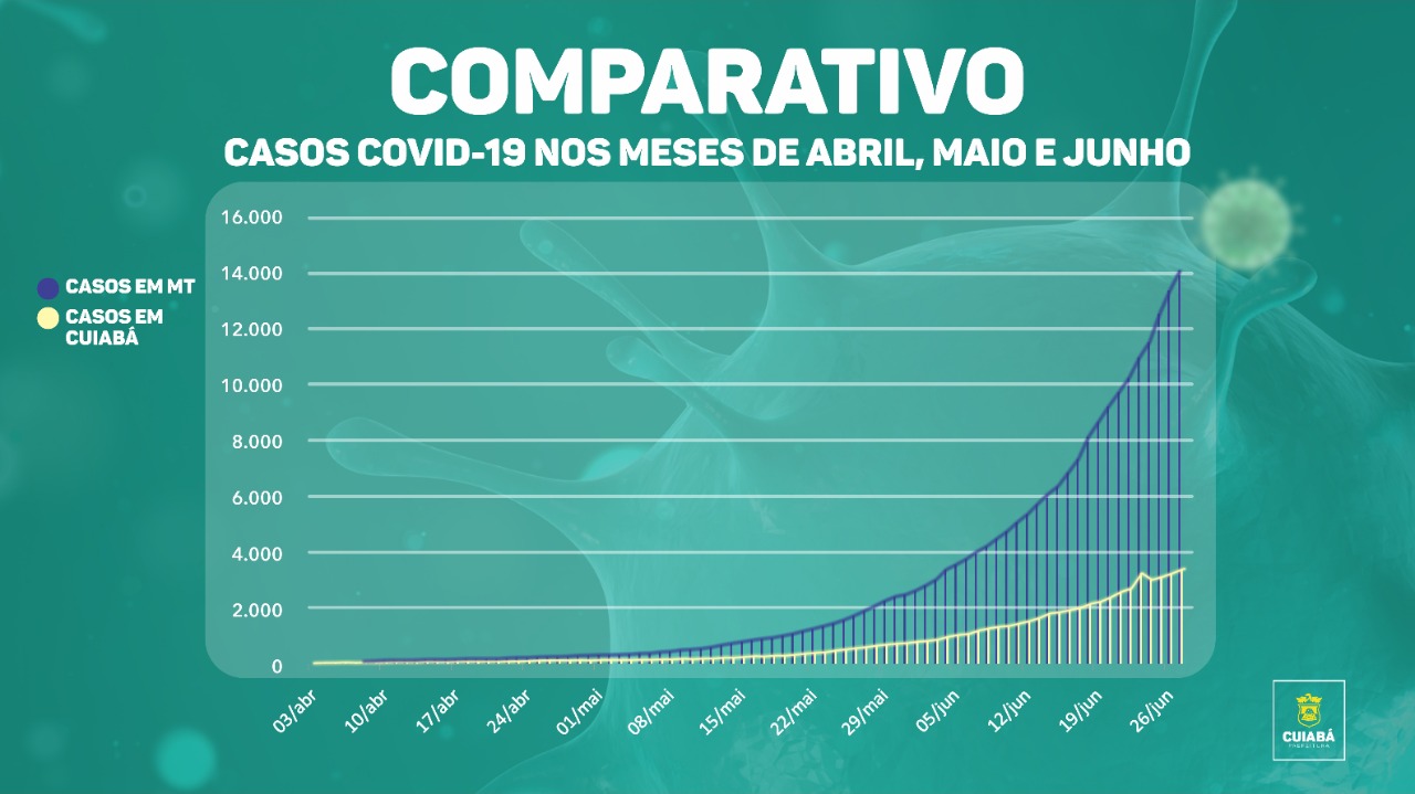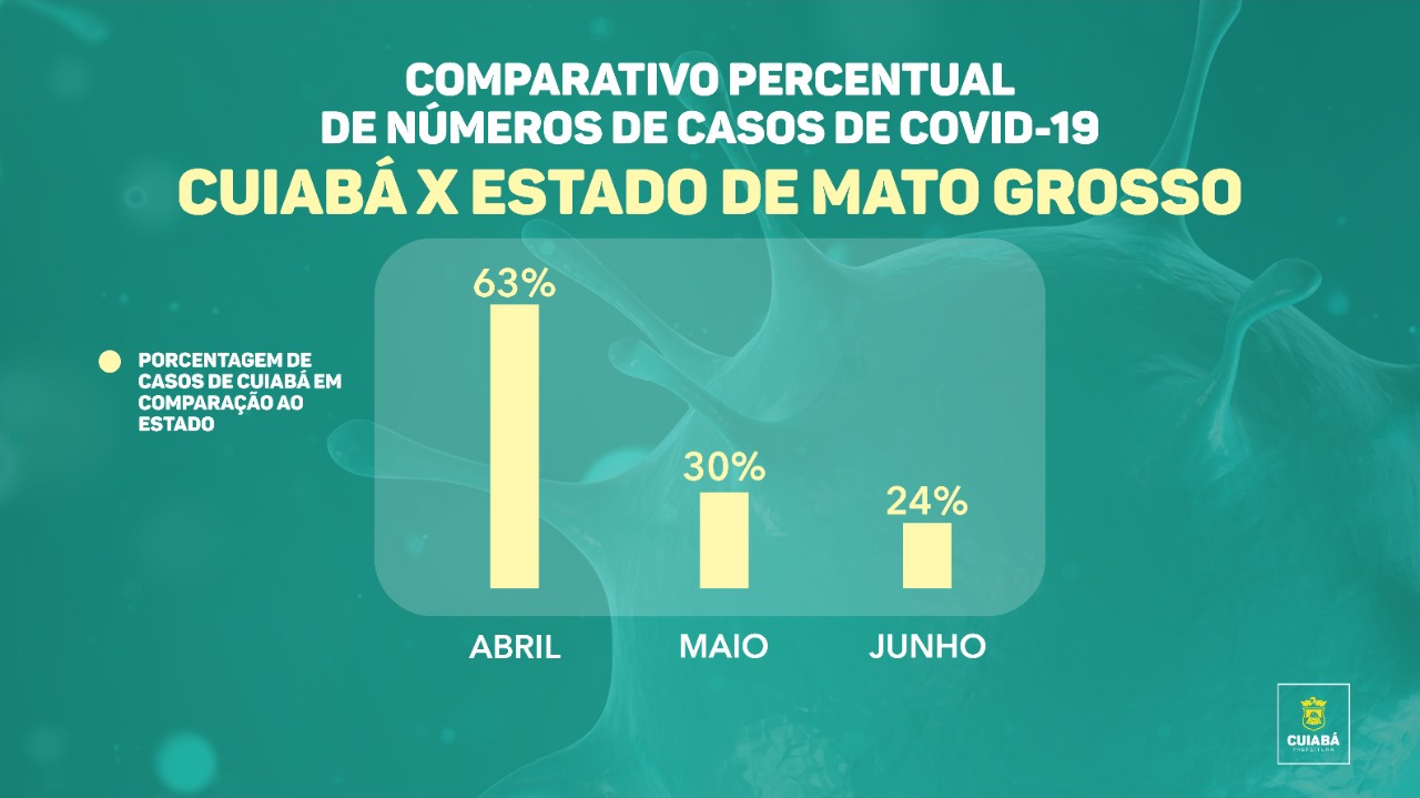 Em todos os meses de abril, maio e junho, Cuiabá esteve abaixo da curva de contaminação pelo coronavírus do estado, conseguindo achatar a curva de maio para junho, enquanto Mato Grosso encontra-se com curva ascendente neste momento. Mais de 70% dos casos confirmados da doença estão ocorrendo nos demais 140 municípios, contribuindo mais fortemente para o crescimento da curva de contágio no estado.
