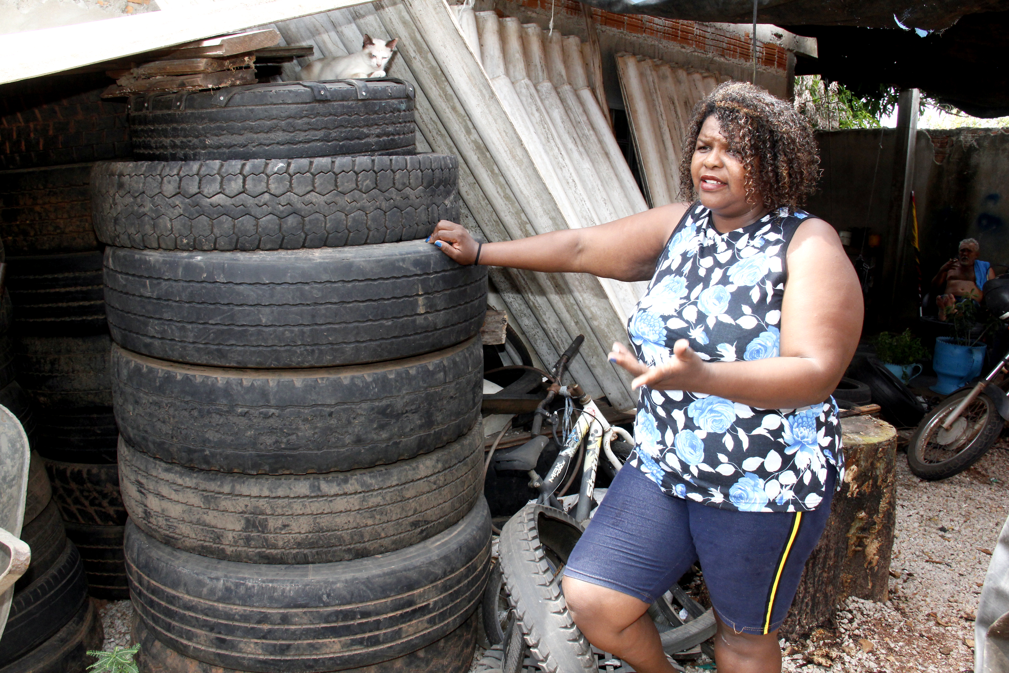 “Meu filho passou dias internado e sofrendo com a doença. A partir disso eu comecei a pensar em o que poderia fazer para ajudar no combate ao mosquito. Naquele momento, percebi que o pneu estava em evidência nos casos de focos do Aedes. Comecei a recolher aqueles que encontrava descartado nas ruas e trazer para casa. Para que meu quintal não se tornasse um grande criadouro, furei todos eles, empilhei e comecei a colocar a mão na massa. Hoje, eu vejo que meu trabalho tem sido bem aceito. Tanto que, quando um conhecido acha um pneu jogado por aí, recolhe e traz aqui em casa. Outros quando vão trocar o pneu do carro também me doam o usado”, conta.