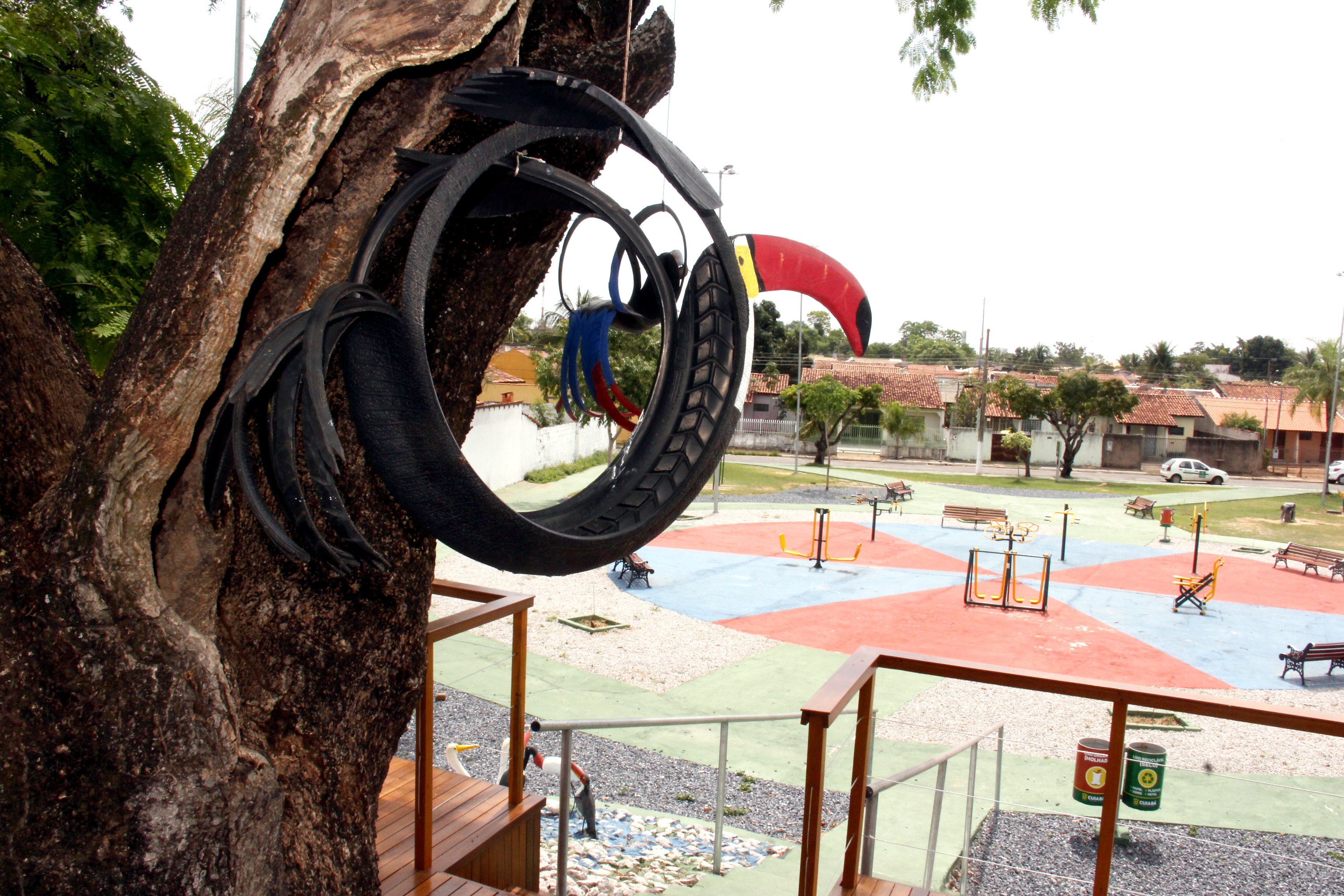 “Dependendo da peça, conseguimos fazer em aproximadamente meia hora. O corte é um pouco mais demorado, mas passando essa etapa o trabalho, fica mais rápido. Por último pegamos a lixadeira e fazemos o acabamento da peça. Todo o trabalho é realizado aqui na minha área mesmo. Em cima da mesa, no chão, onde tiver um espaço. No entanto, quero construir um barracão com uma área reservada apenas para isso. Para a Prefeitura já fiz os brinquedos dos espaços de lazer no CPA IV, Nova Canaã e Jardim Universitário II”, relata a trabalhadora.