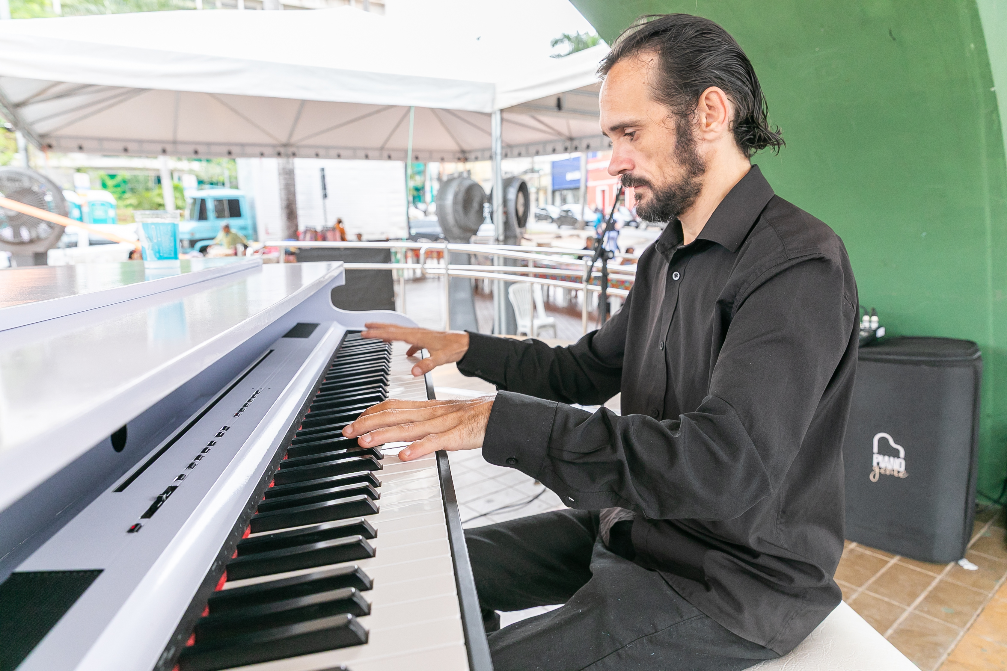 A 6ª edição da Feira Cultura, Sabor e Arte, realizada pela Secretaria Municipal de Cultura, na Praça Alencastro, na quinta-feira (30) nasceu de uma iniciativa denominada “Vem pra Praça”, que tem o propósito de aproximar ainda mais a cultura popular da comunidade, para levar as ações culturais para um espaço mais acessível e próximo das pessoas. E a novidade agradou os expositores pelo movimento, pela alegria e receptividade. Músicos e bailarina do Projeto Piano Gente se apresentaram pela manhã e a tarde, dando um toque especial a programação. As 5 edições anteriores aconteceram na sede da Secretaria Municipal de Cultura, na Av. Barão de Melgaço.