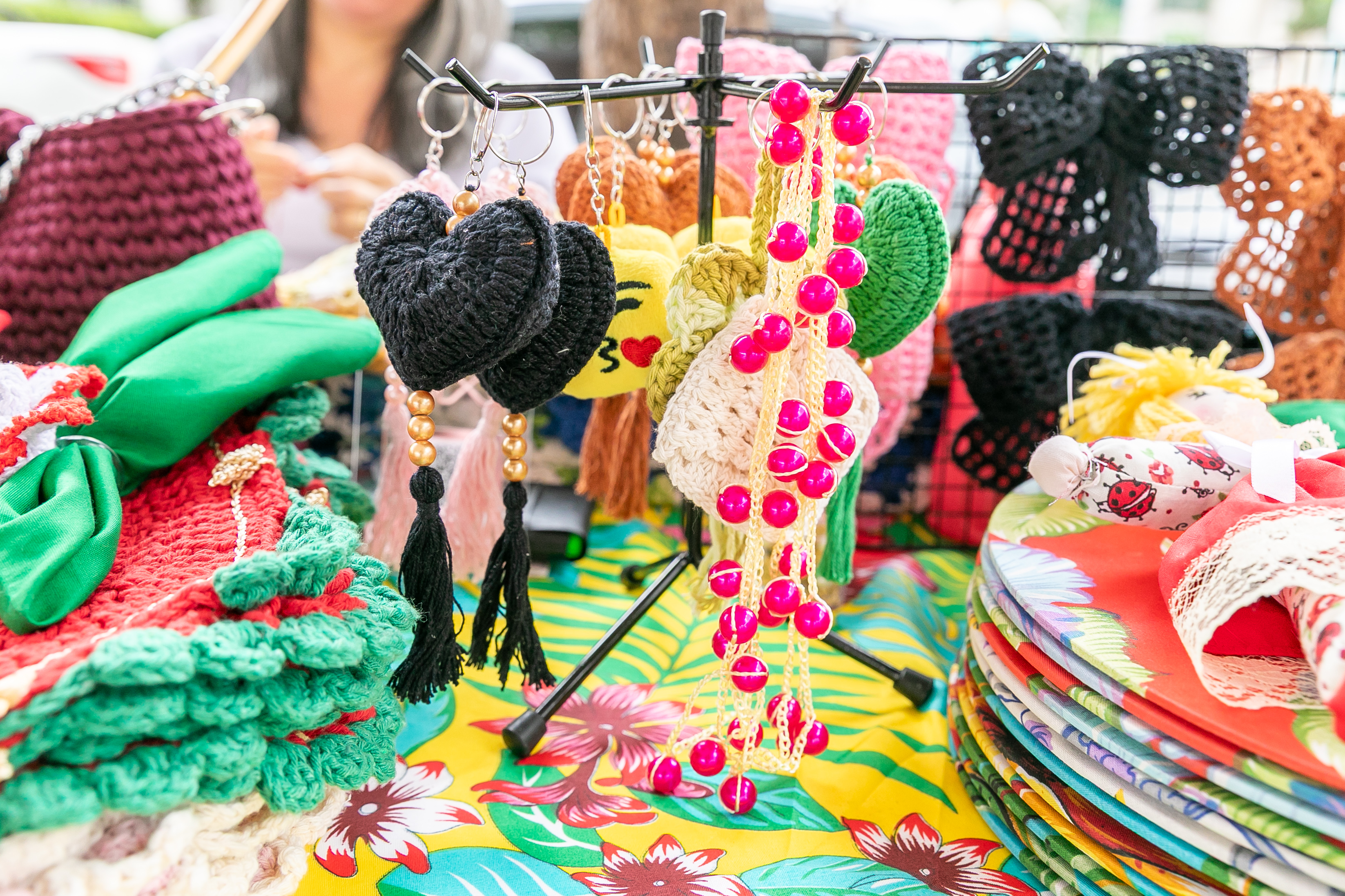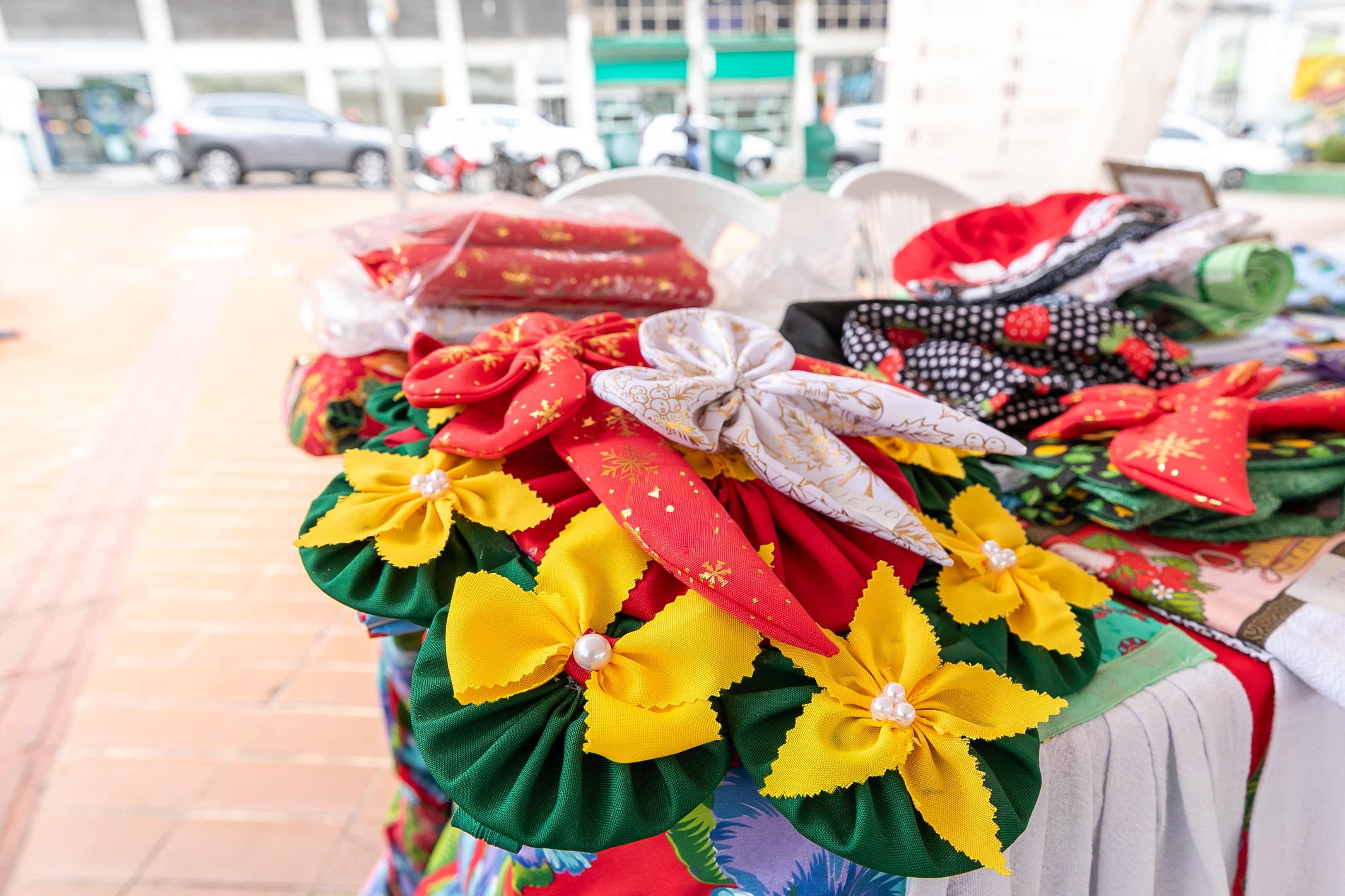 A feira contou, ainda, com artesanato de crochês, panos de pratos bordados, almofadas já caracterizadas em clima de natal, bem como porta panetones, bijuterias, e muito mais.