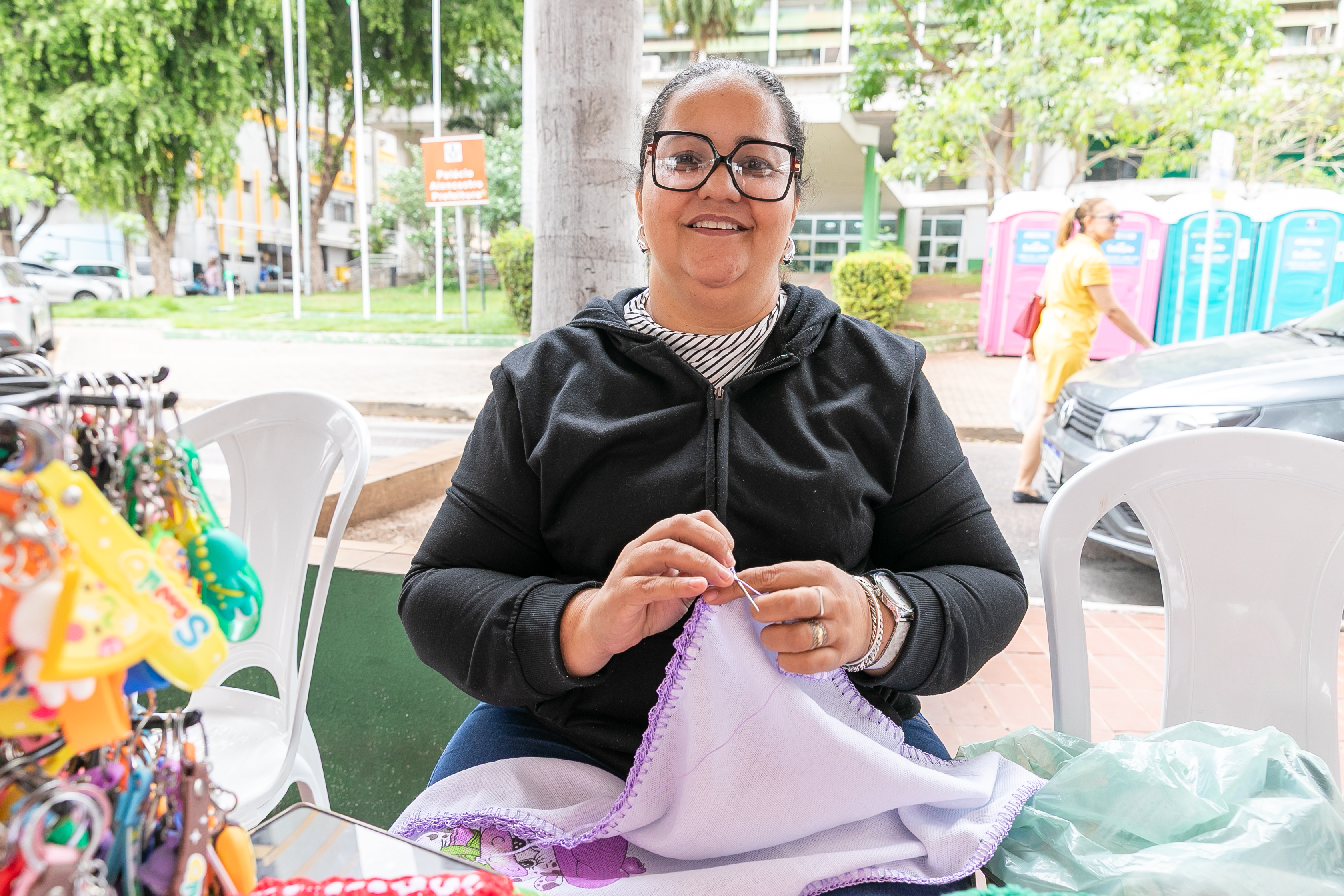 Geize Padilha comercializa variedades de itens de artesanato e também gostou do novo espaço.