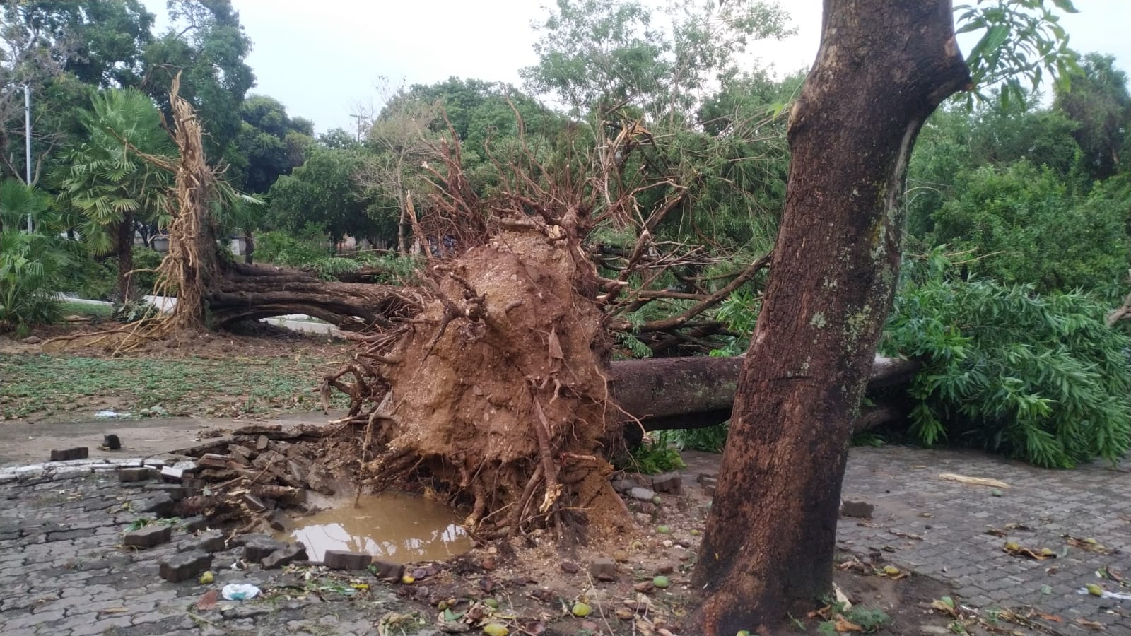 Na Av. Beira Rio algumas árvores de pequeno porte não suportaram o vento e foram arrancadas, outras quebraram e parte dos galhos impediram o trânsito em meia pista. Na estrada do Moinho, também teve árvores arrancadas. A mesma situação foi registrada no Bairro Boa Esperança, com árvores destruídas pelo temporal.