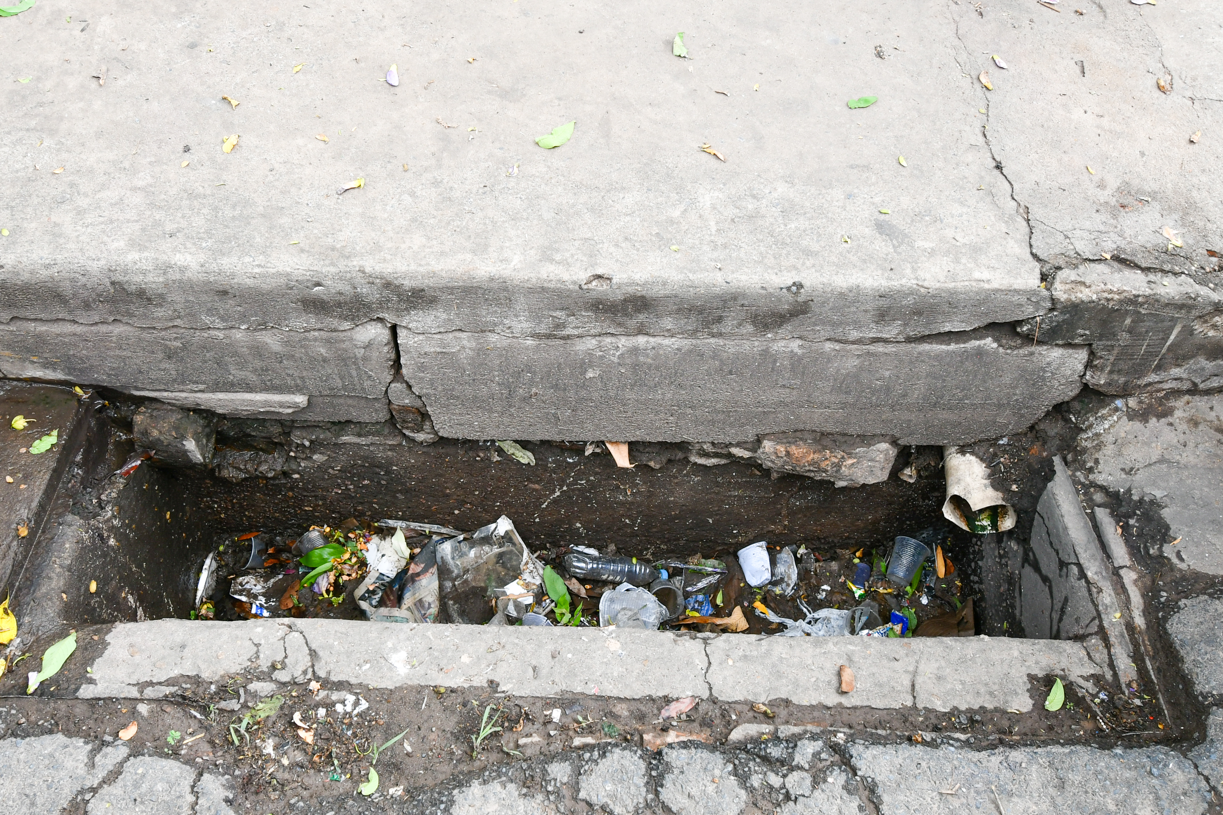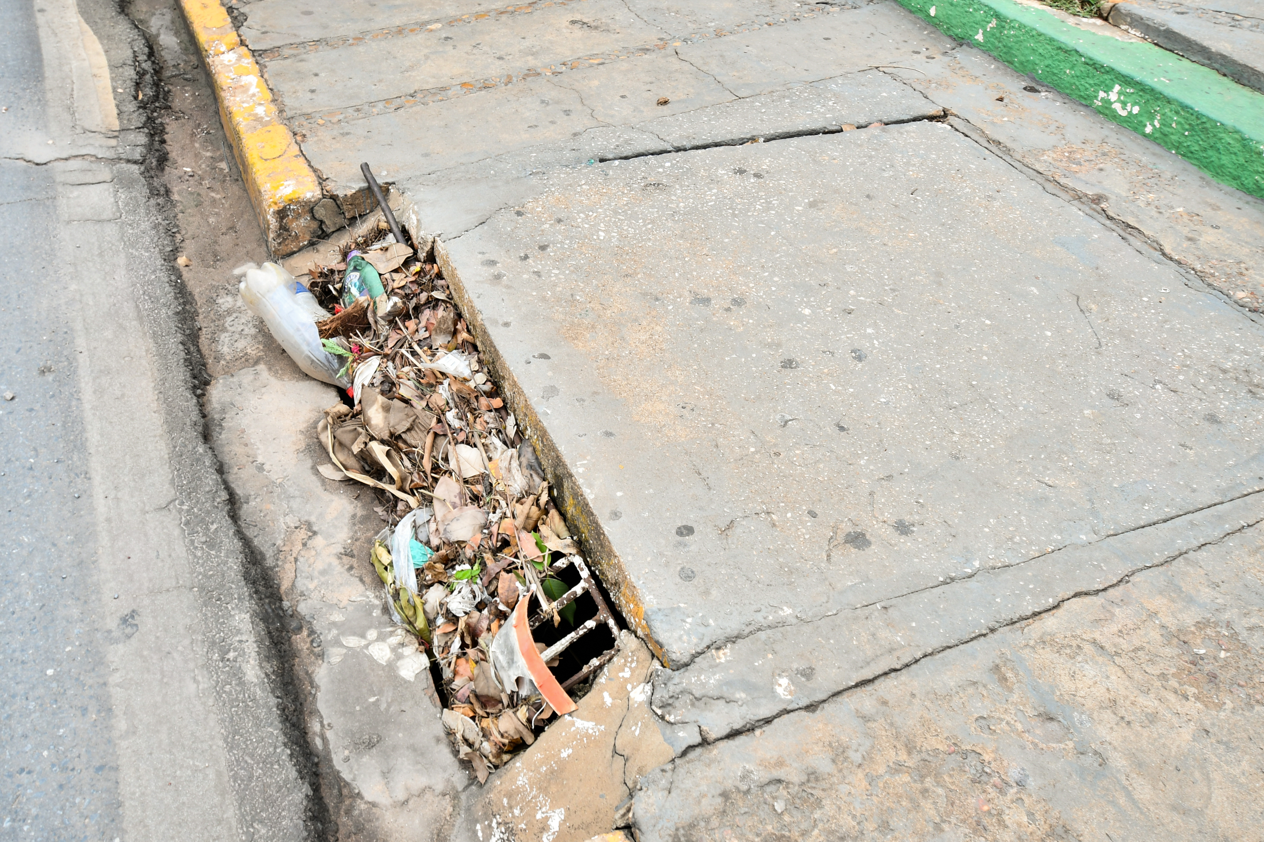 Os bueiros do centro estão com acúmulo de terra e muito lixo, parte trazido pelo volume de água e outra parte devido à falta de conscientização da população, que descarta irregularmente o lixo nas ruas. São materiais variados como sacolas, garrafas plásticas, papelão, restos de marmitas de isopor, entre outros.