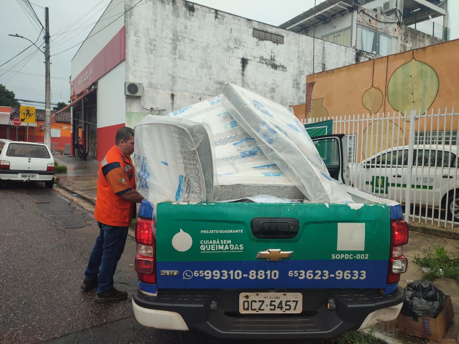 Já as famílias impactadas pela chuva intensa no bairro São Mateus, em Cuiabá, receberam 104 colchões e 104 travesseiros.