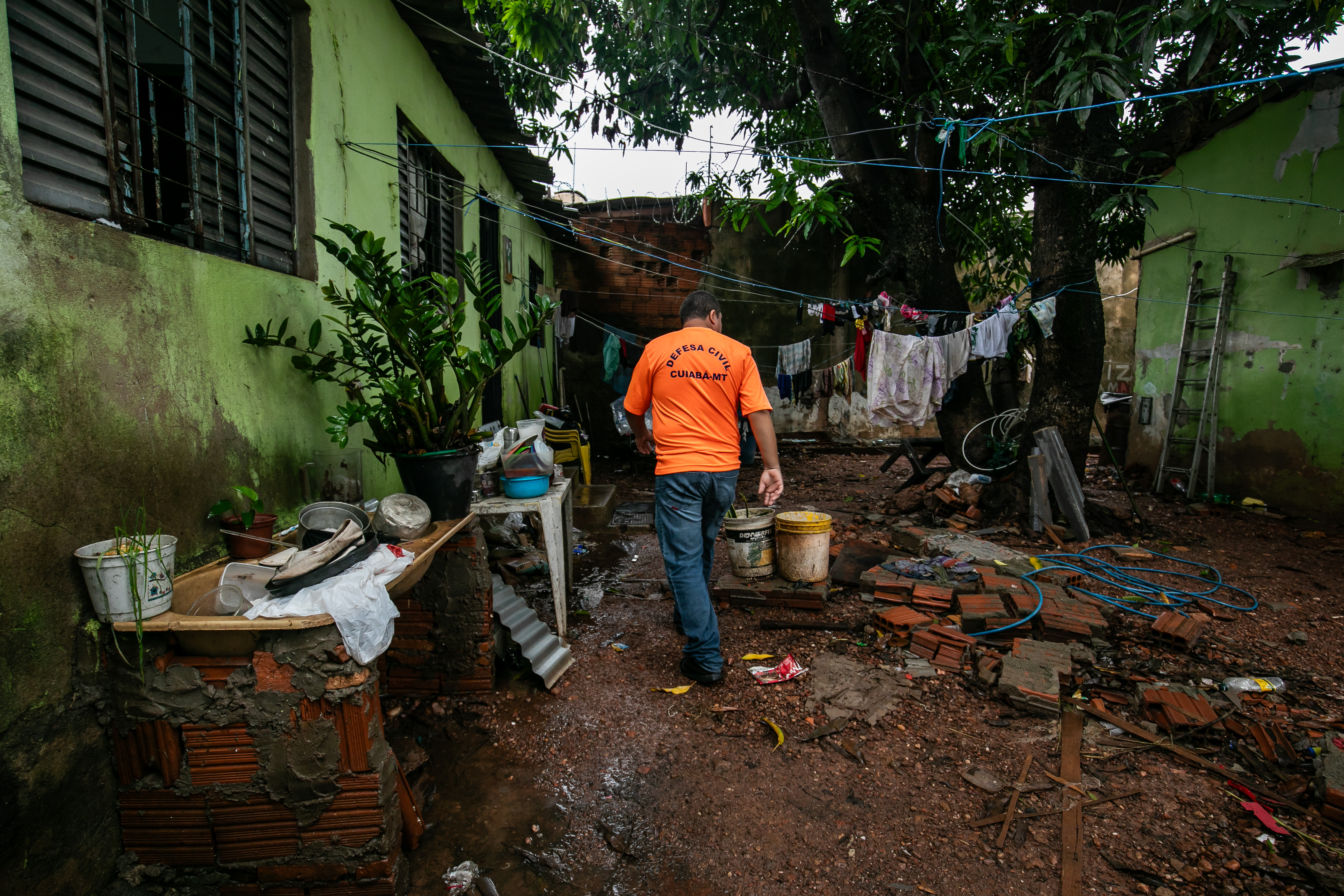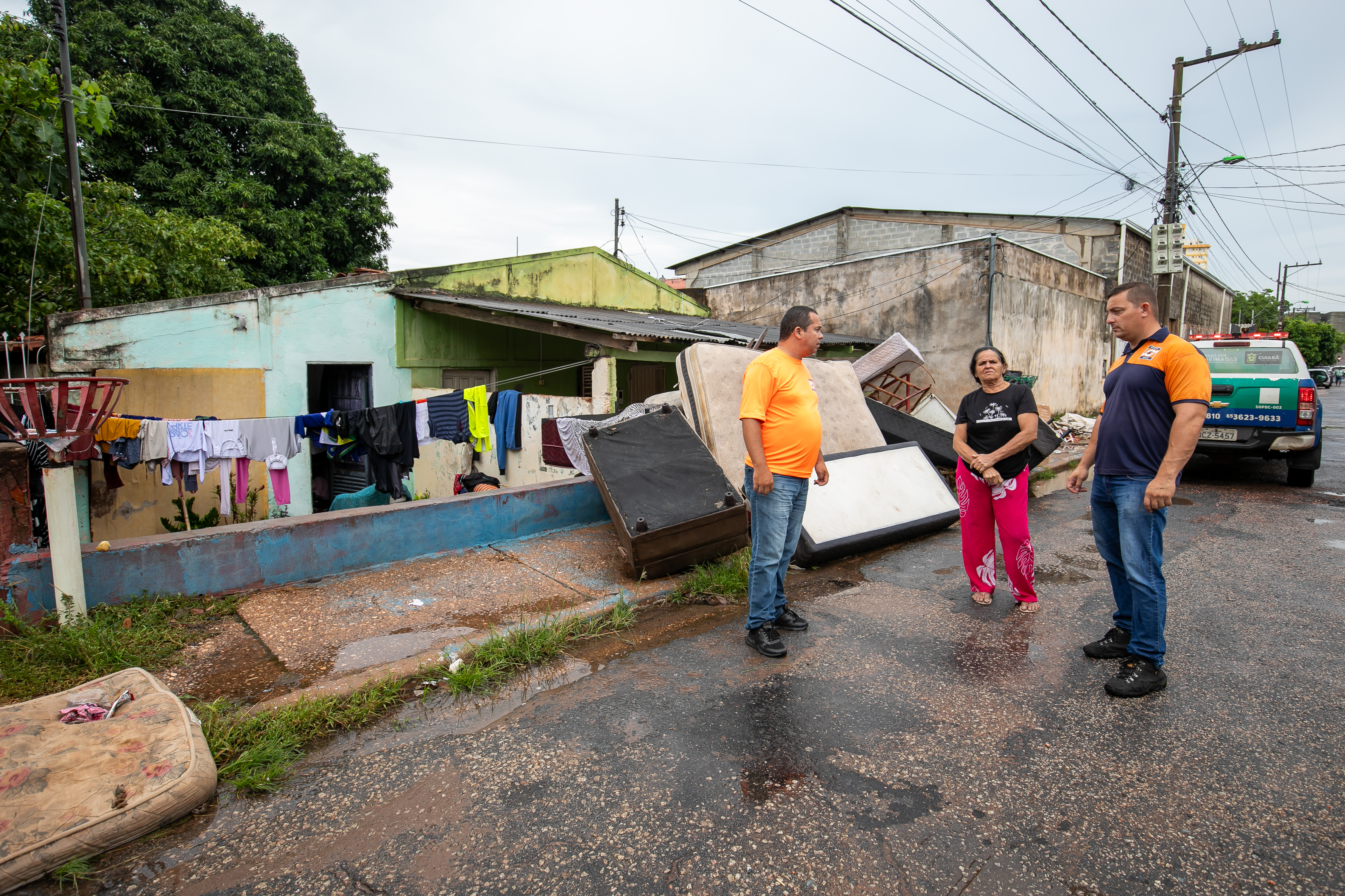“Vistoriamos três casas, elas ficam uma ao lado da outra. No local passa uma manilha e, como encheu o córrego, a água voltou. As casas foram alagadas. Uma das casas sofreu danos na estrutura com a queda de um muro. A família precisou deixar o local e foi para casa de parentes. Equipes do Cras estão dando apoio para cadastrar as famílias“, afirmou Ozeias.