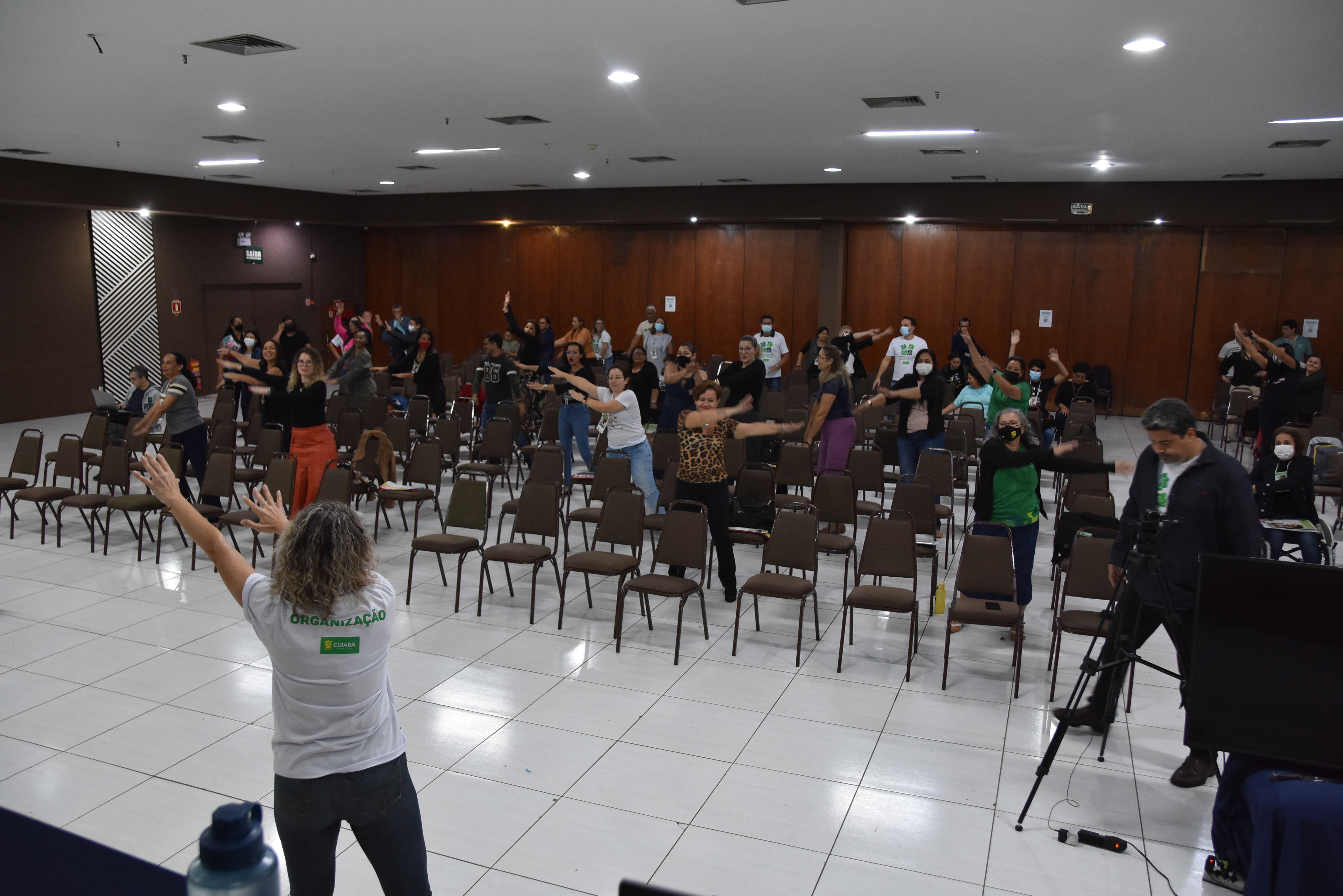 O segundo dia da Conferência começou com uma atividade física. A programação do evento prevê a finalização da avaliação e votação das metas e estratégias do Plano Municipal de Educação e, logo após, os delegados começarão as discussões em torno das propostas apresentadas para a Conferência Nacional de Educação (CONAE 2022), que acontecerá de 23 a 25 de novembro de 2022, em Brasília.