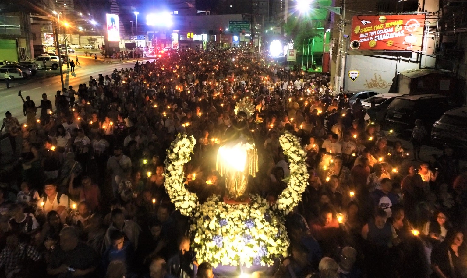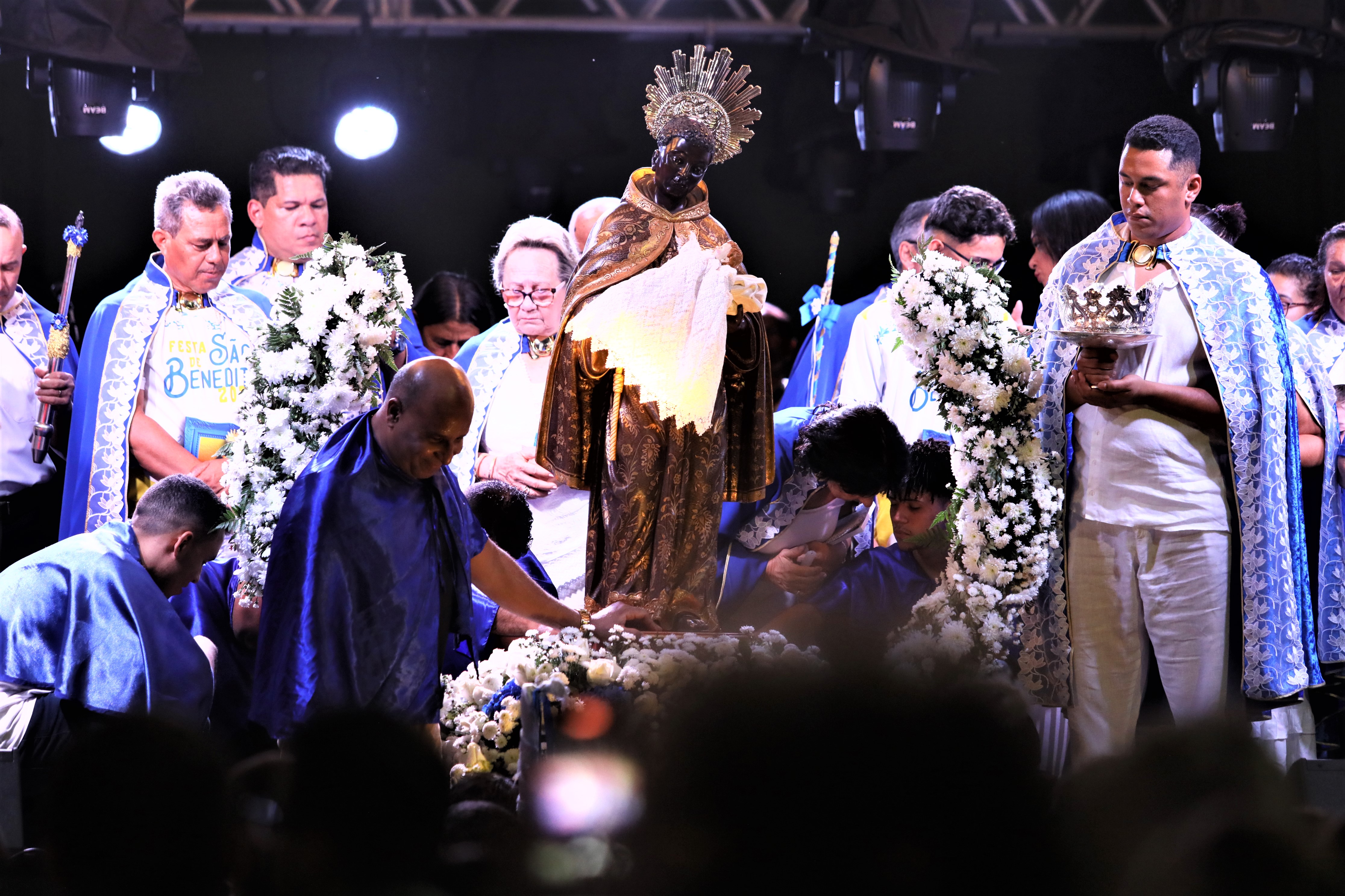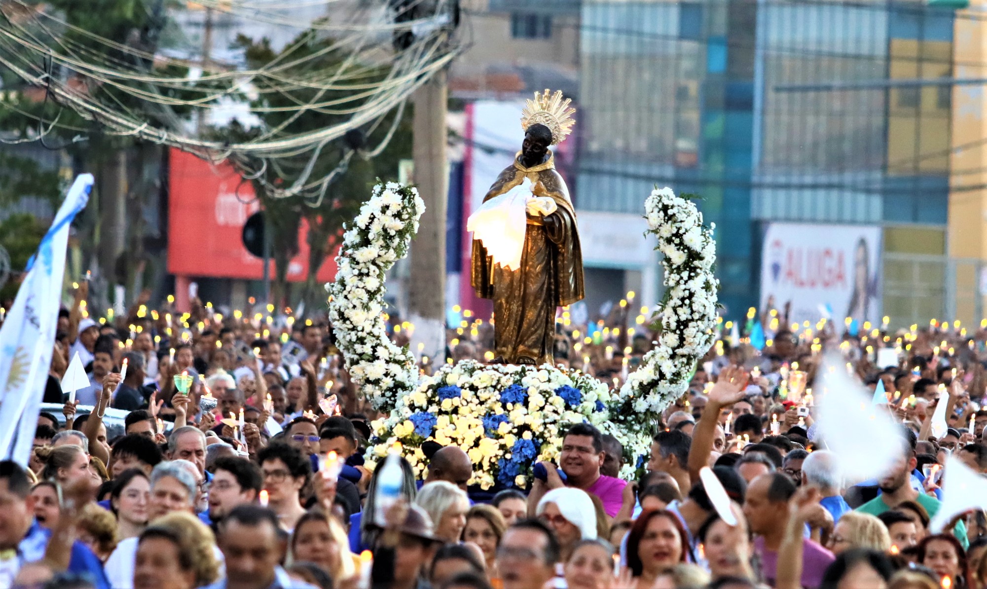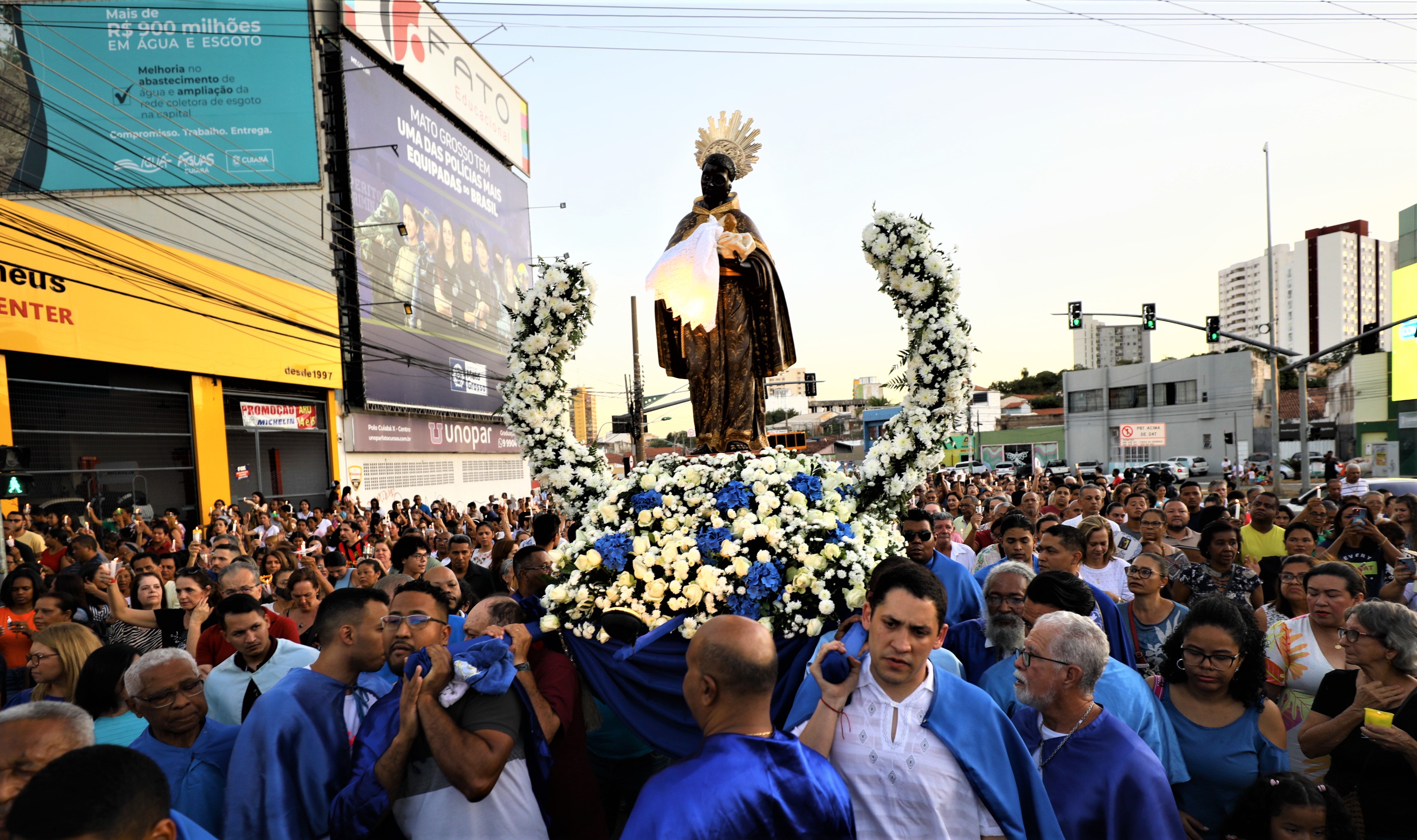 As ruas e avenidas no entorno da Igreja de Nossa Senhora do Rosário e São Benedito, em Cuiabá, ganharam um brilho especial no final da tarde do último domingo (02), durante a procissão em Ação de Graças ao glorioso São Benedito, que é testemunho de tantos milagres e que traz, além da religiosidade, a cultura e a ancestralidade de um povo. Fiéis e devotos, acompanhados de familiares, amigos ou até mesmo sozinhos, alguns com os pés descalços como sinal de testemunho de graças alcançadas, contribuíram para o sucesso dessa tradição tricentenária que reúne multidões em sinal de fé e devoção. A procissão marcou o encerramento das festividades realizadas desde a última quinta-feira (29).