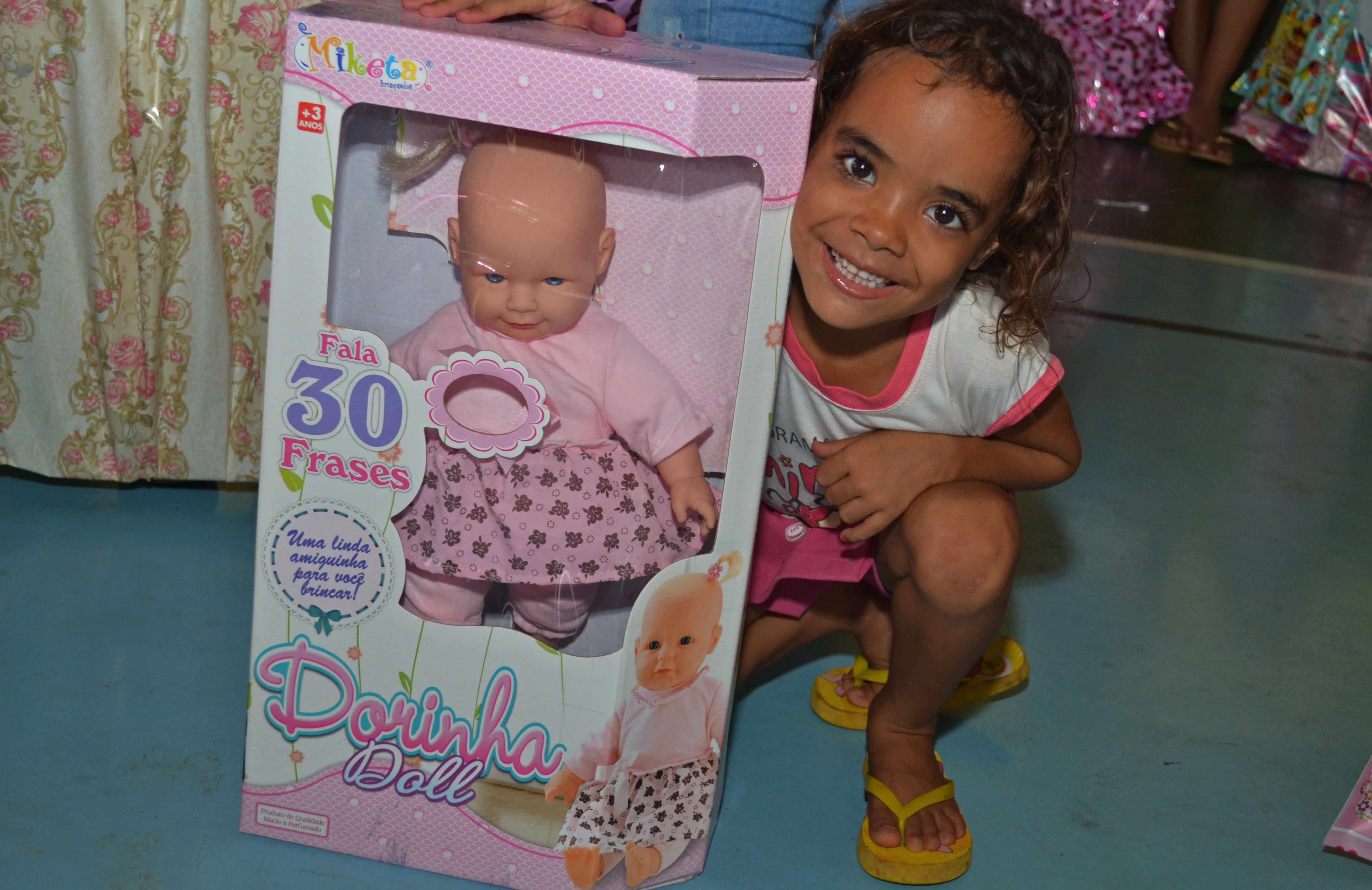 Taila Cristina da Silva Gomes, de 7 anos, disse que nunca havia tido uma boneca tão grande quanto a que ganhou. “Ela é linda. Eu adorei”, festejou.