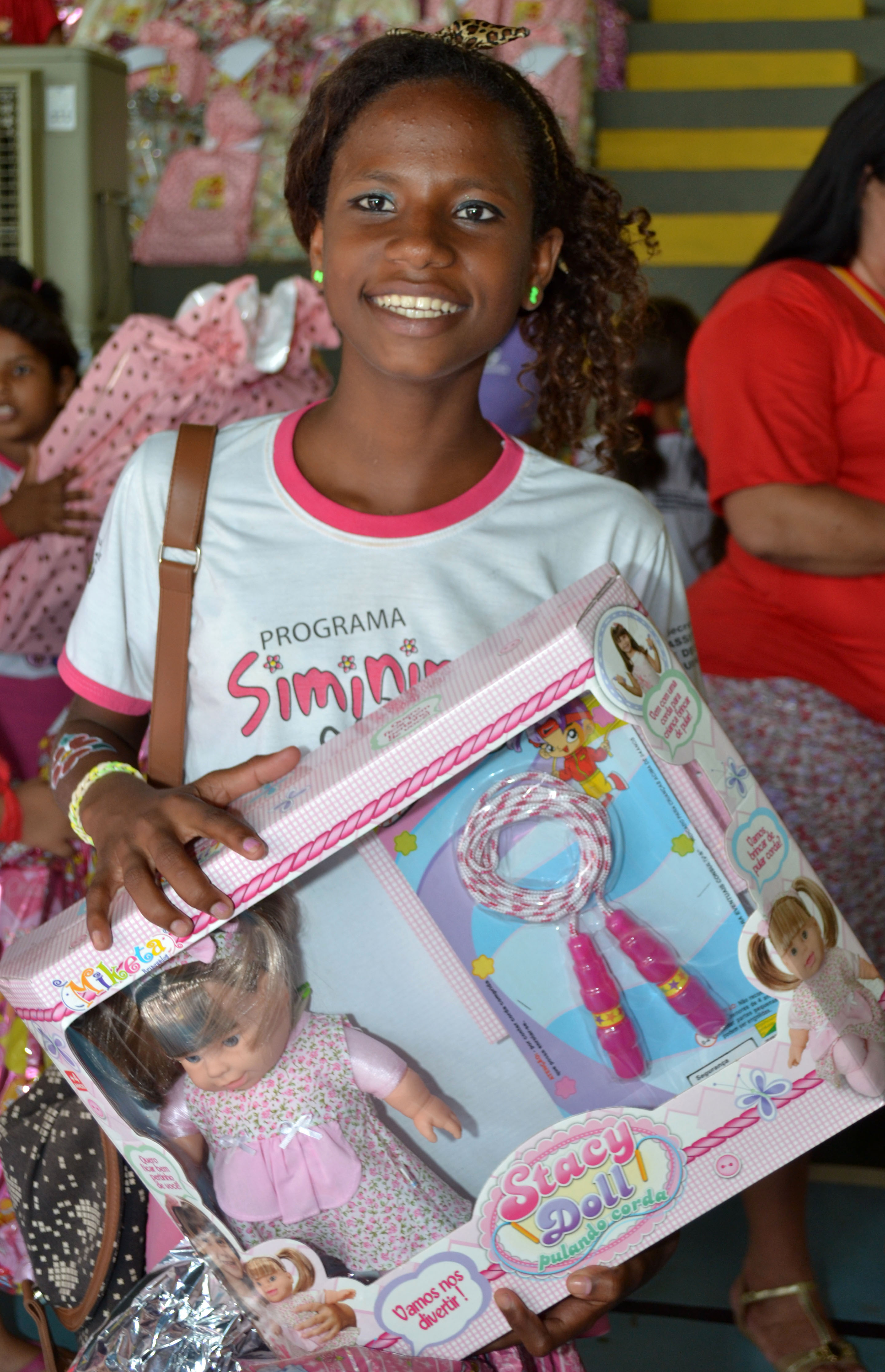 Érica Fernandes Silva, de 12 anos, comemorou a vitória na competição de cabo-de-guerra e estava ansiosa para descobrir o que havia dentro dos pacotes distribuídos pelo ginásio. “Nós vamos ganhar presente? O que será que eu vou ganhar? Eu queria muito uma boneca”, revelou.