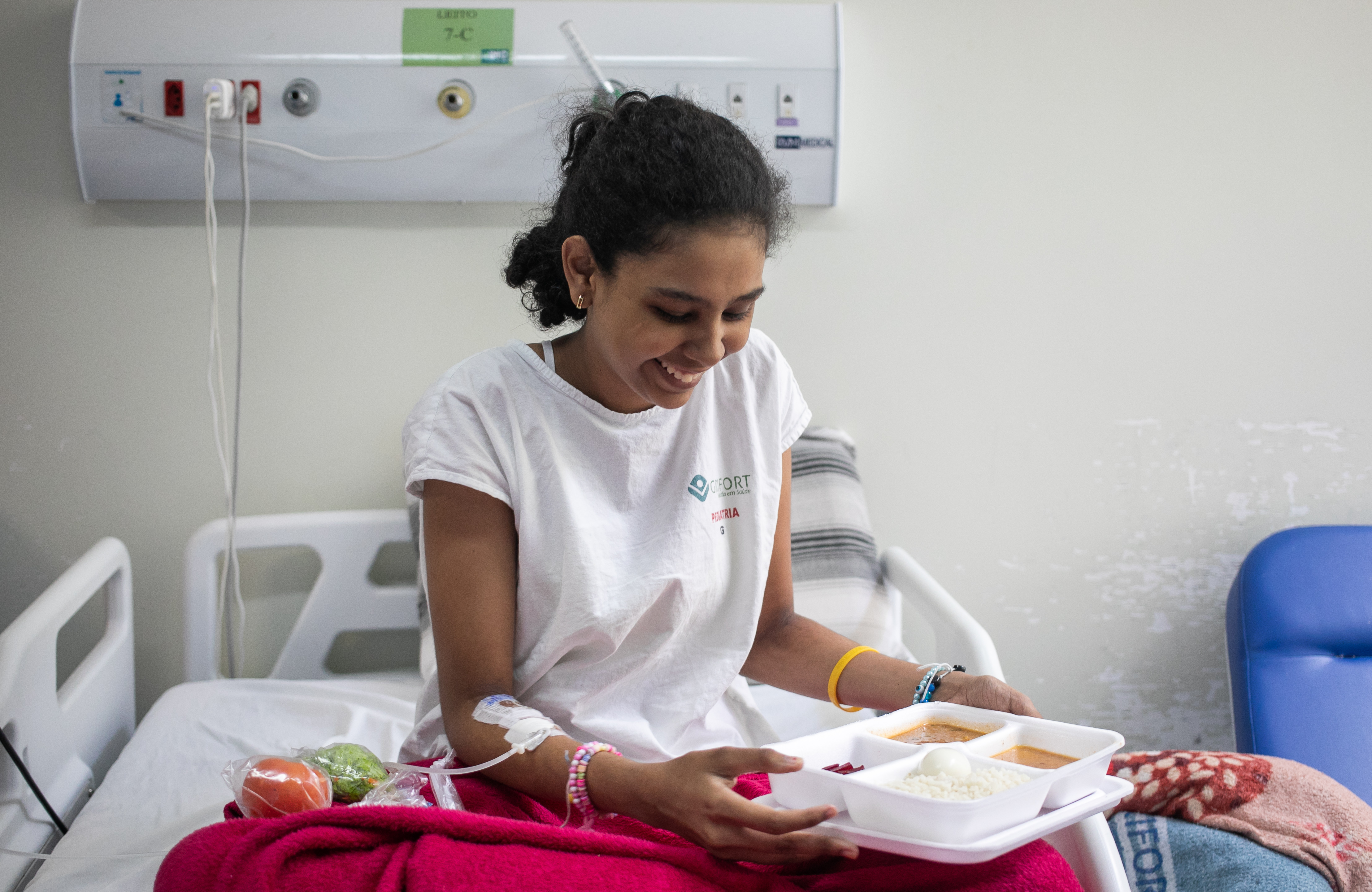 Lasanha, esfiha de carne, laranja, pão de queijo e tomates são alguns dos pedidos de Paloma Santos, uma jovem de 14 anos que sonha em ser estilista. Internada no HMC há três meses para combater uma bactéria recorrente, com alta prevista para março, Paloma elogiou as refeições do hospital. “Todas as comidas são gostosas, o tempero é bom. Tem leite com chocolate pela manhã, às vezes canjiquinha e meu preferido, lasanha e tomate, que como todos os dias. Nem parece comida de hospital”, disse a adolescente.