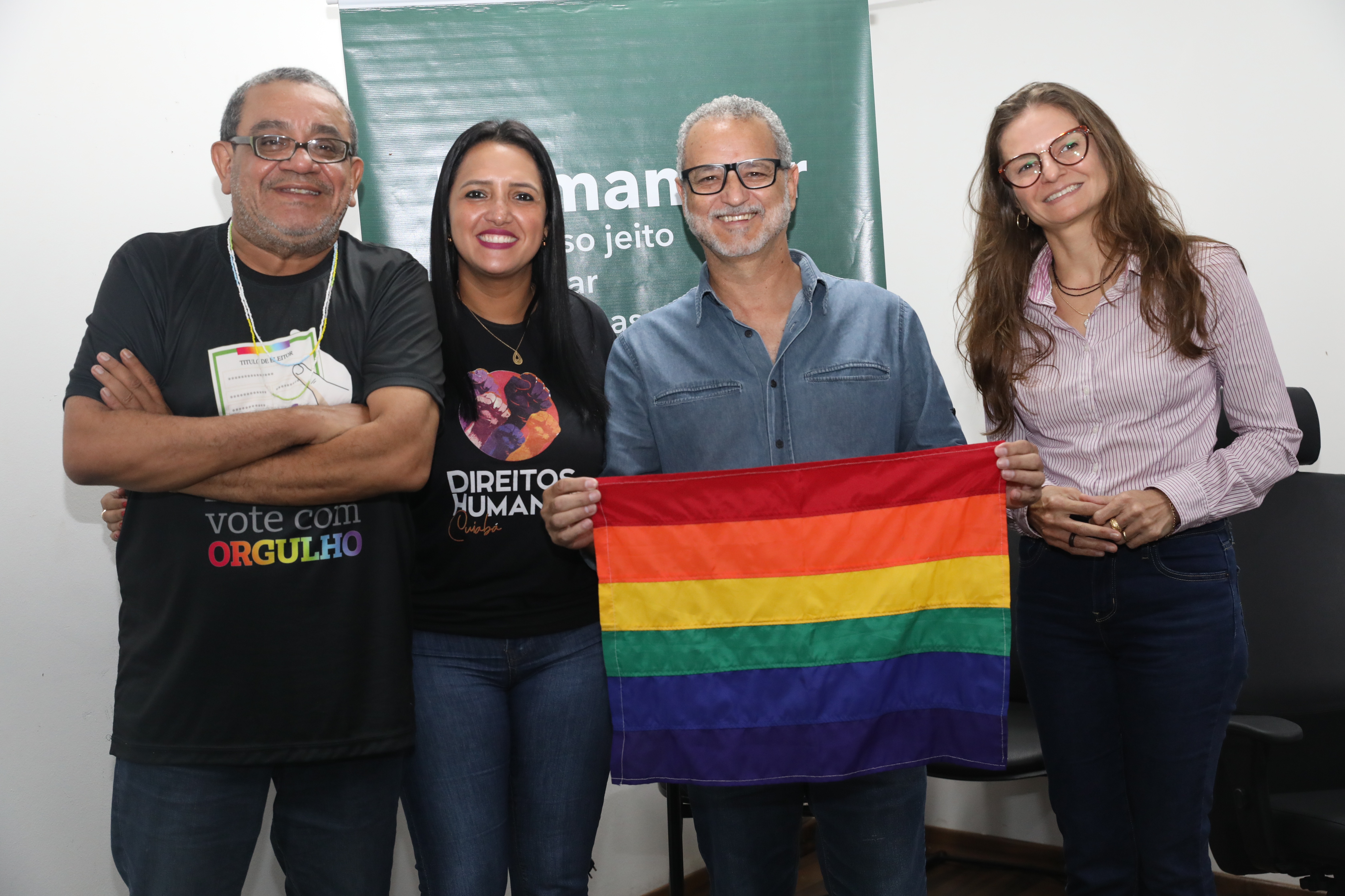 A coordenadora de gestão e política da Secretaria Municipal de Assistência Social, Direitos Humanos e da Pessoa com Deficiência, Failse Sibele, Presidente do Conselho Municipal de Atenção à Diversidade Sexual, Valdomiro Arruda, presidente da Associação da Parada LGBTQUIA+ e tesoureiro do grupo Livre Mente, Clóvis Arantes, presidente do Conselho Municipal da Mulher, Vera Wender e a defensora pública, Drª Rosana Leite Antunes.