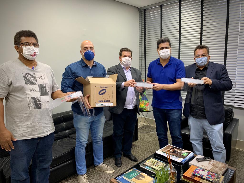 A Prefeitura de Cuiabá recebeu na tarde desta segunda-feira (11), a doação de 1,3 mil protetores faciais do Sindicato do Tribunal de Contas (SINTTCONTAS), da Associação dos Auditores (AUDIPE), da Associação dos Técnicos (ASTECONPE), e da Associação dos Aposentados e Pensionistas (AAPTCE). O material irá contribuir com o estoque de equipamentos individuais utilizados pelos profissionais que estão na linha de frente no combate ao Coronavírus em Cuiabá.