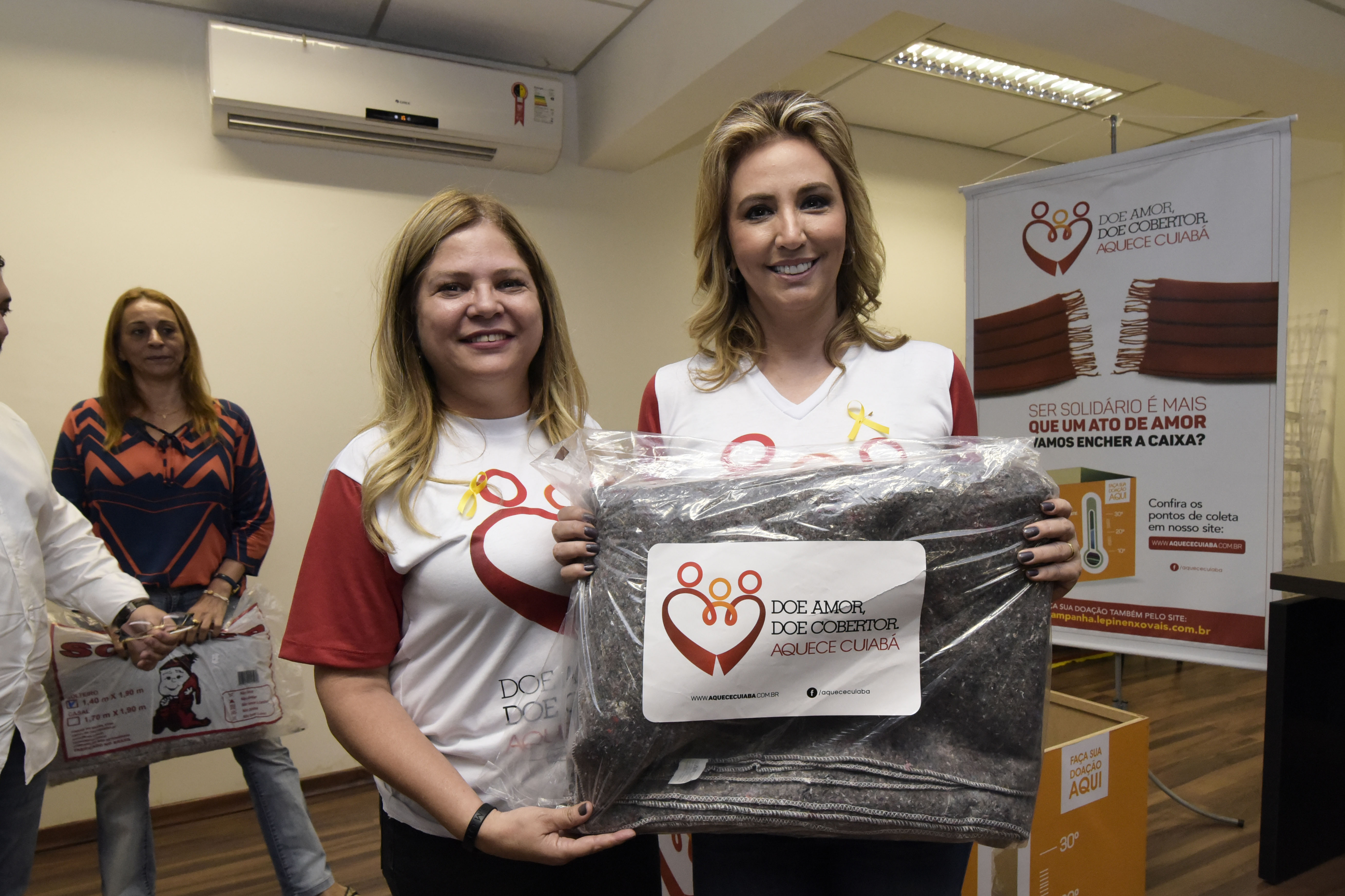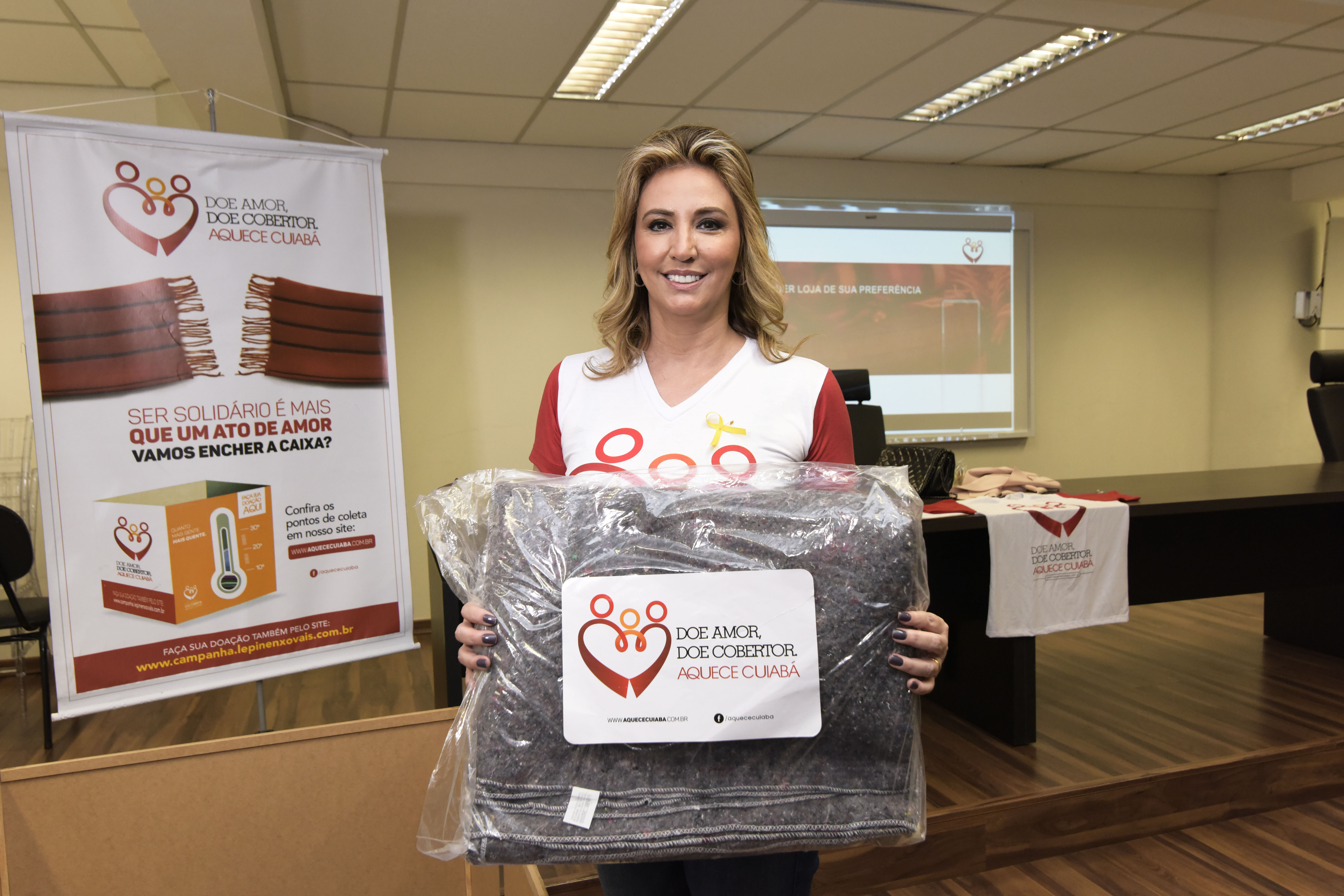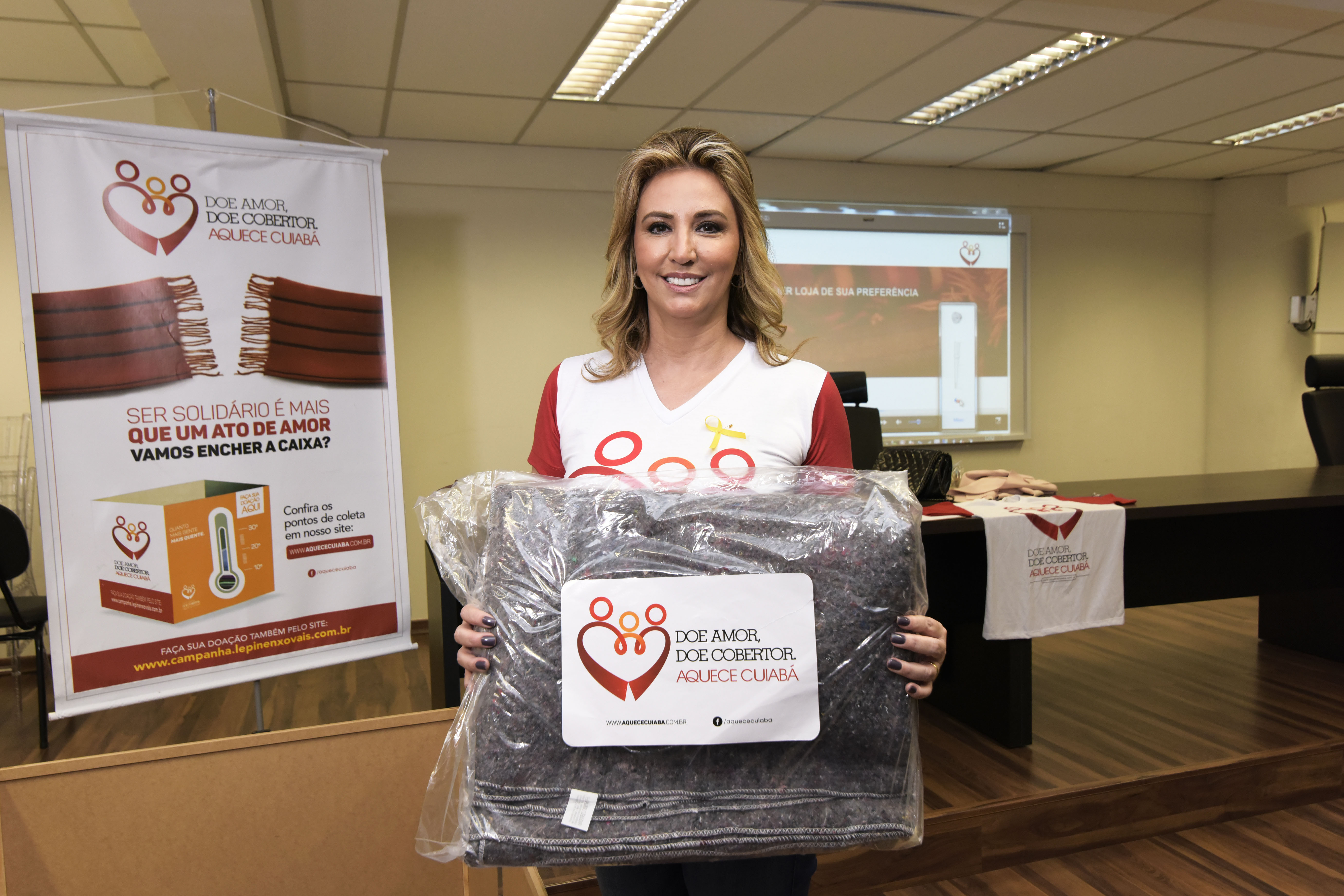 As doações de cobertores da campanha Aquece Cuiabá foram iniciadas, nesta sexta-feira (19), no Palácio Alencastro, sede da prefeitura de Cuiabá, com a primeira-dama de Cuiabá, Márcia Pinheiro, convidando os servidores públicos a contribuírem para a ação solidária, voltada a atender as pessoas de abrigos sociais, famílias carentes e, em especial, os moradores de ruas da capital mato-grossense.