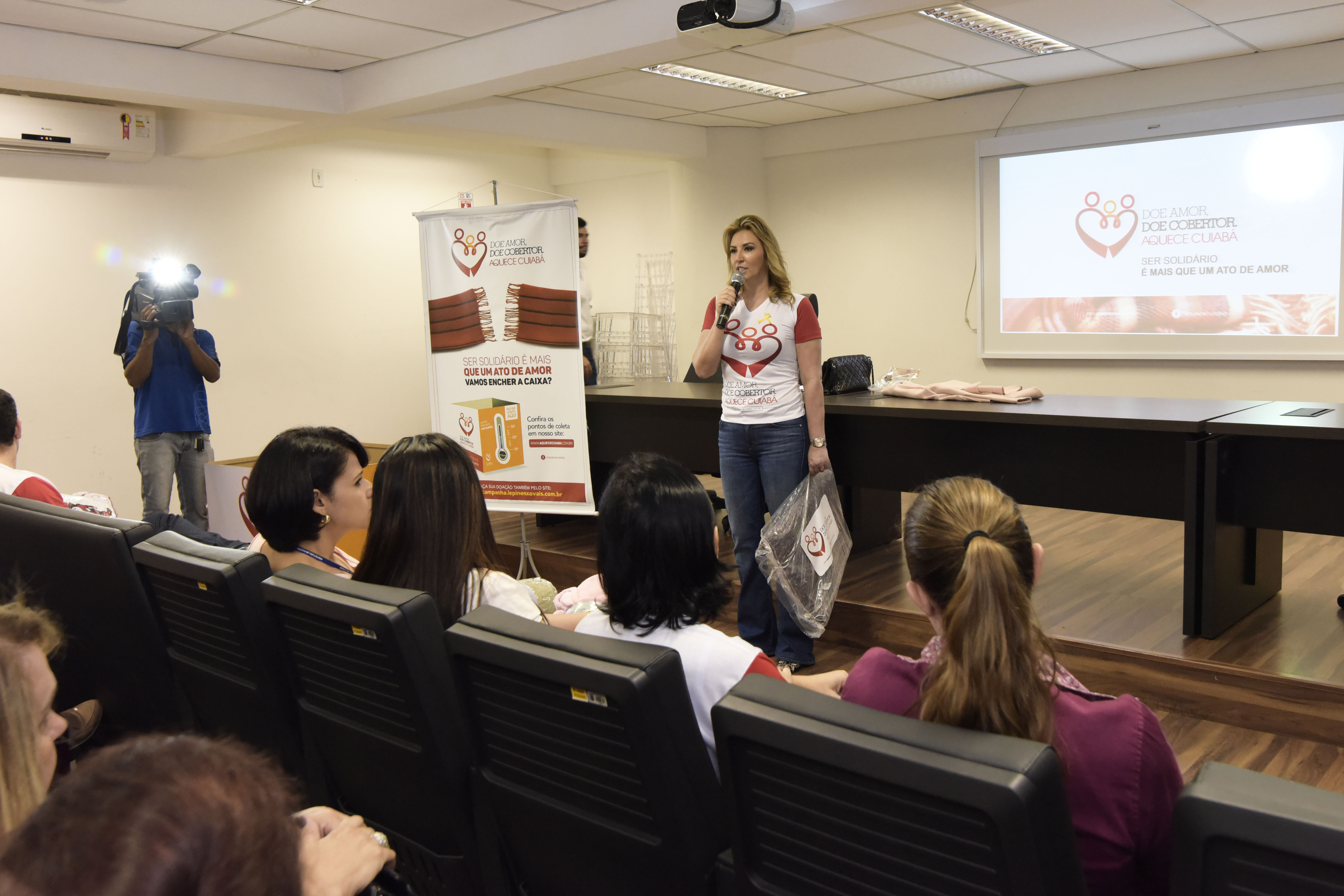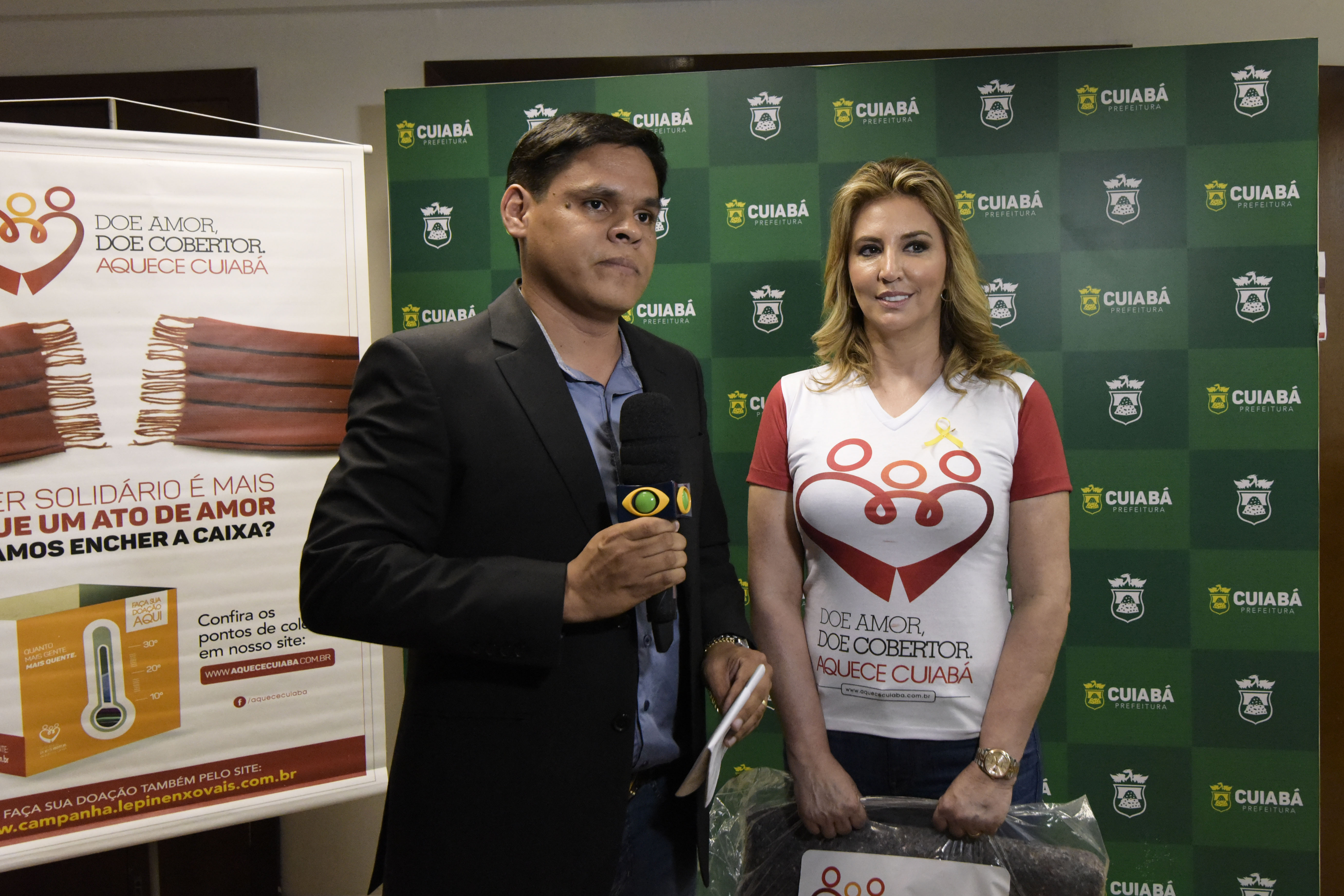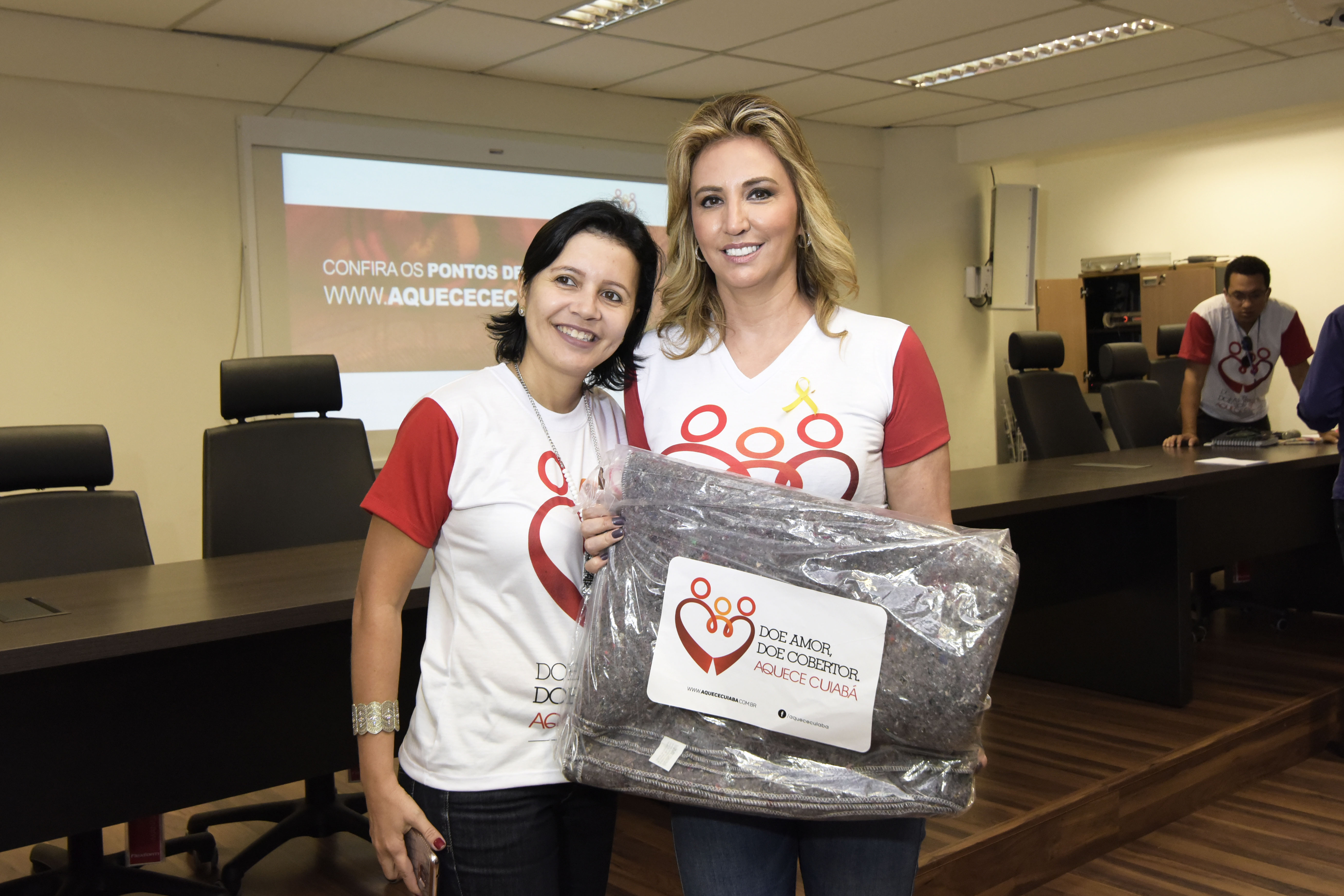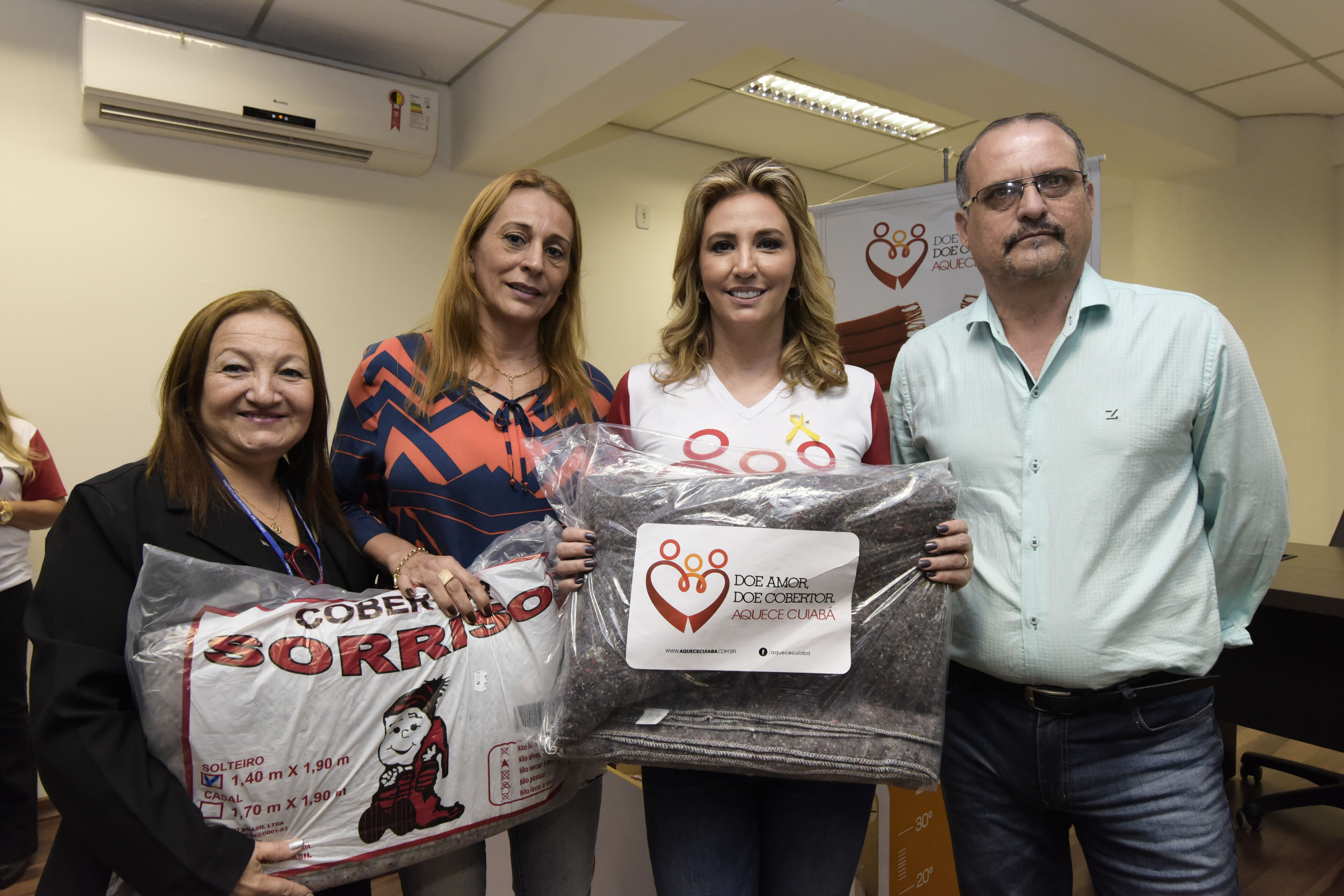 As doações de cobertores da campanha Aquece Cuiabá foram iniciadas, nesta sexta-feira (19), no Palácio Alencastro, sede da prefeitura de Cuiabá, com a primeira-dama de Cuiabá, Márcia Pinheiro, convidando os servidores públicos a contribuírem para a ação solidária, voltada a atender as pessoas de abrigos sociais, famílias carentes e, em especial, os moradores de ruas da capital mato-grossense.