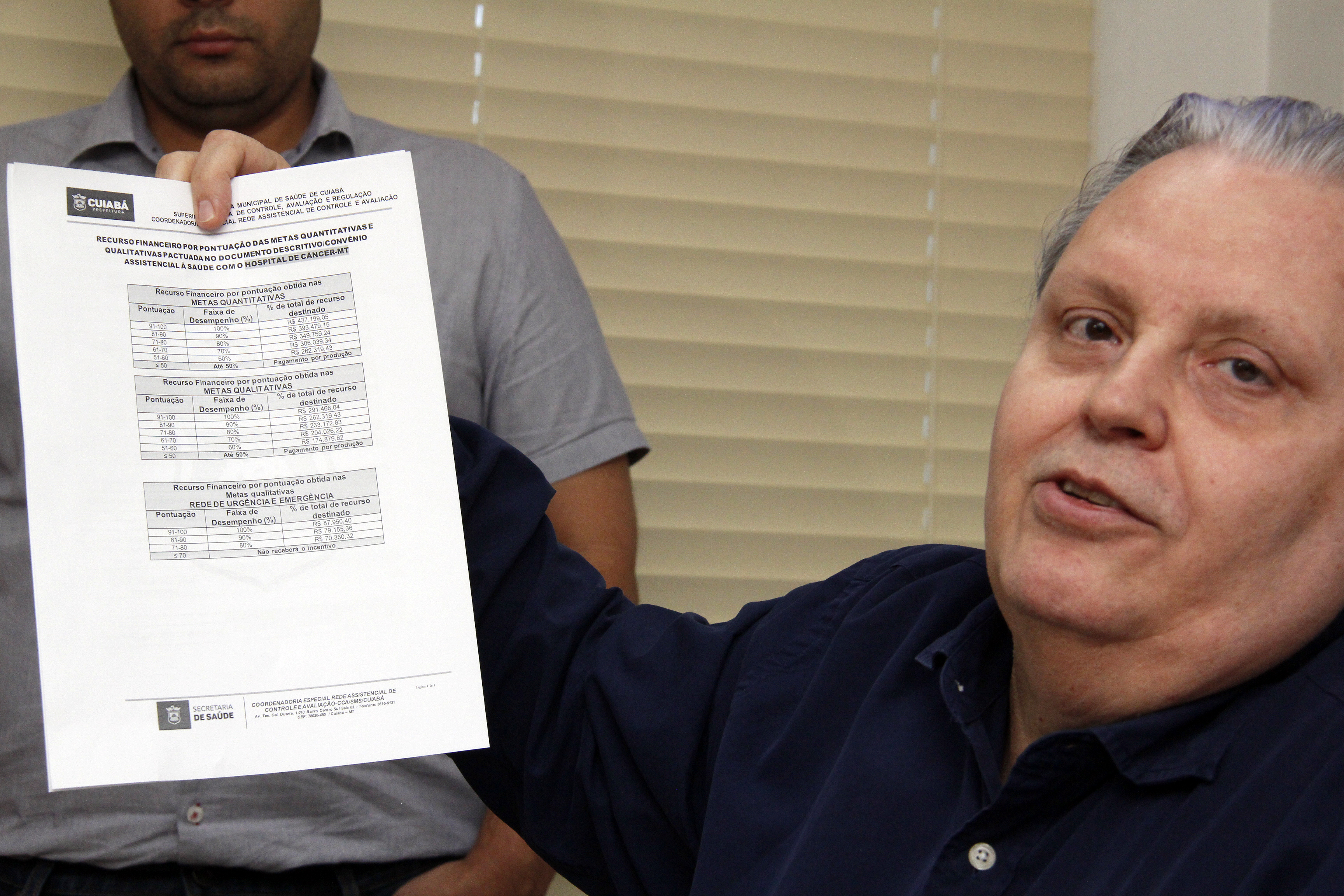 O secretário de Saúde de Cuiabá, Luiz Antonio Pôssas de Carvalho concedeu entrevista coletiva à imprensa na tarde desta quinta-feira (5) para esclarecer sobre a relação da Secretaria de Saúde – SMS com o Hospital de Câncer – HCan.
