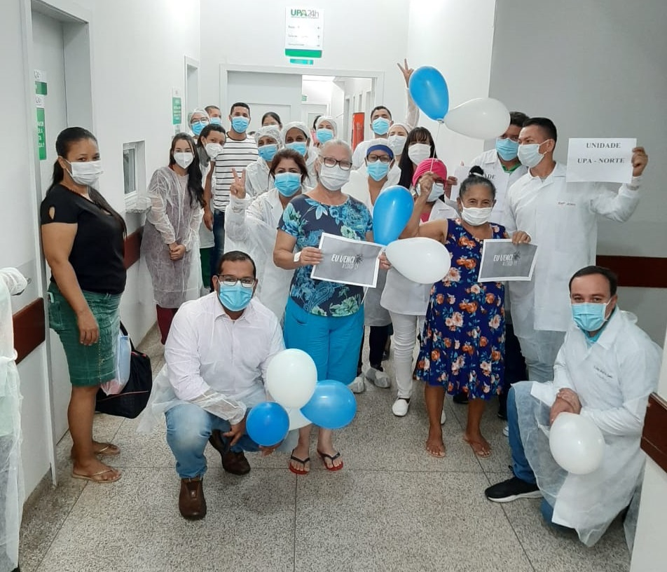 Duas pacientes receberam alta da covid-19, na última quarta-feira (7), na Unidades de Pronto Atendimento (UPA) Norte, no bairro Morada do Ouro, e foram homenageadas na saída pela equipe da unidade e pelos familiares. Receberam alta Marta Regina da Silva, 60 anos, que passou 9 dias internada, e Antônia Amorim Conrado do Amaral, 68 anos, que ficou duas semanas internada.