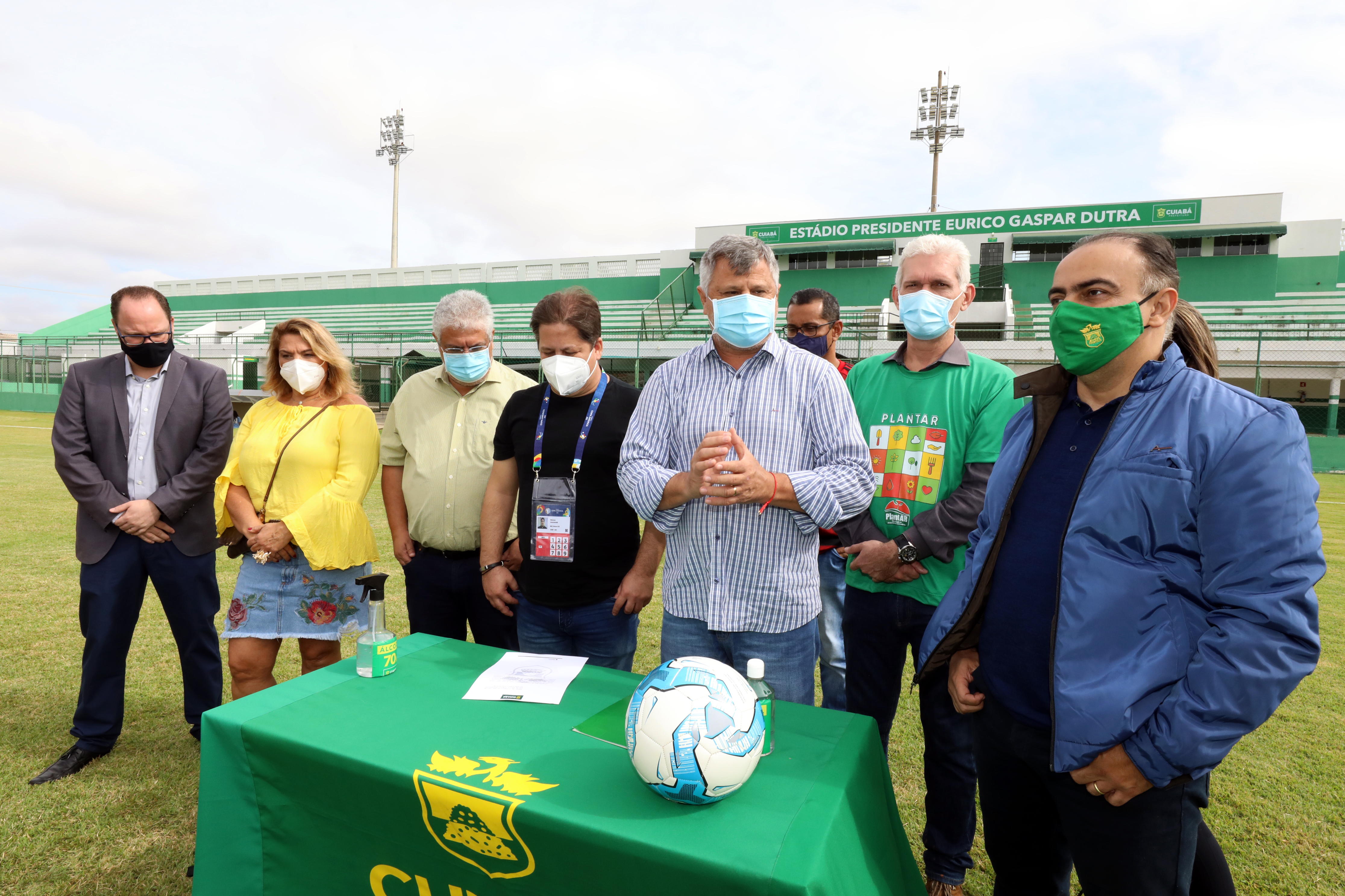 O maior símbolo do esporte cuiabano, o Estádio Eurico Gaspar Dutra foi oficialmente cedido para a Confederação Sul-Americana de Futebol (Conmebol) e vai receber seleções da Copa América de Futebol. A cerimônia simbólica de entrega do Dutrinha foi realizada na manhã deste sábado (12). O Estádio terá o gramado e vestiários utilizados para treinos das equipes da Colômbia, que começam já neste sábado (12). A segurança do local será feita pela Conmebol e não será permitida cobertura da imprensa e a presença de público, em razão do cumprimento das medidas de biossegurança contra a COVID-19.