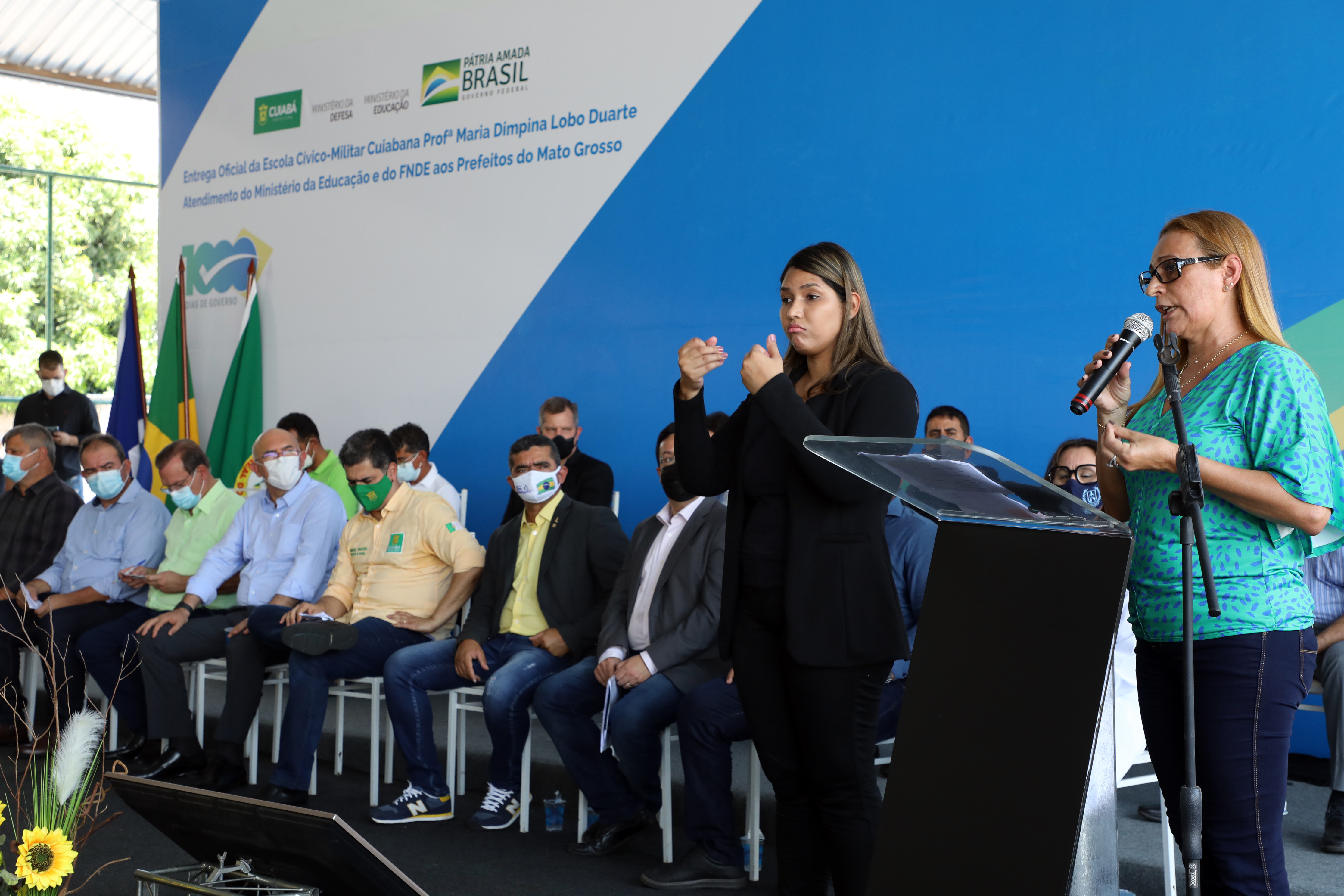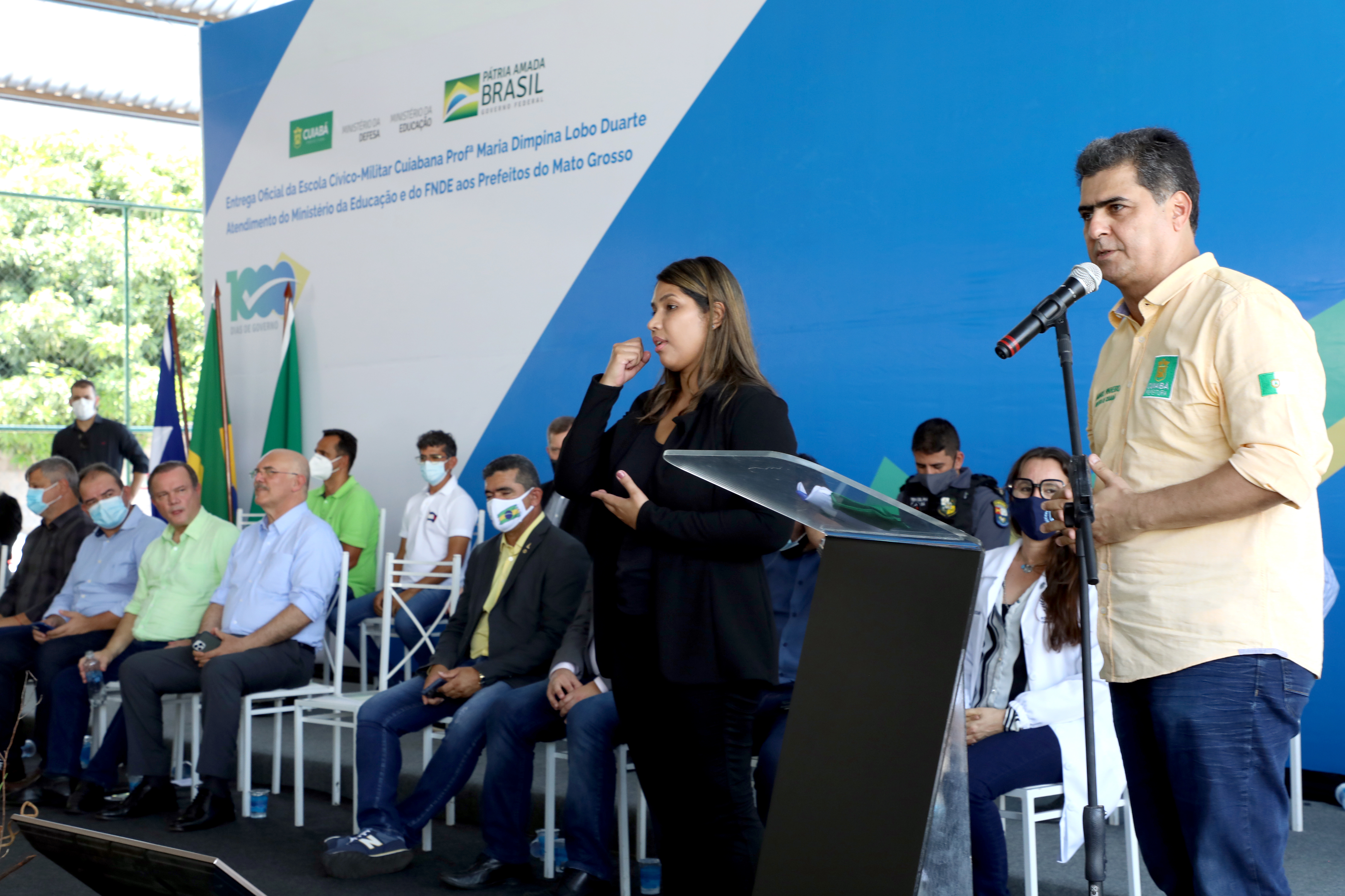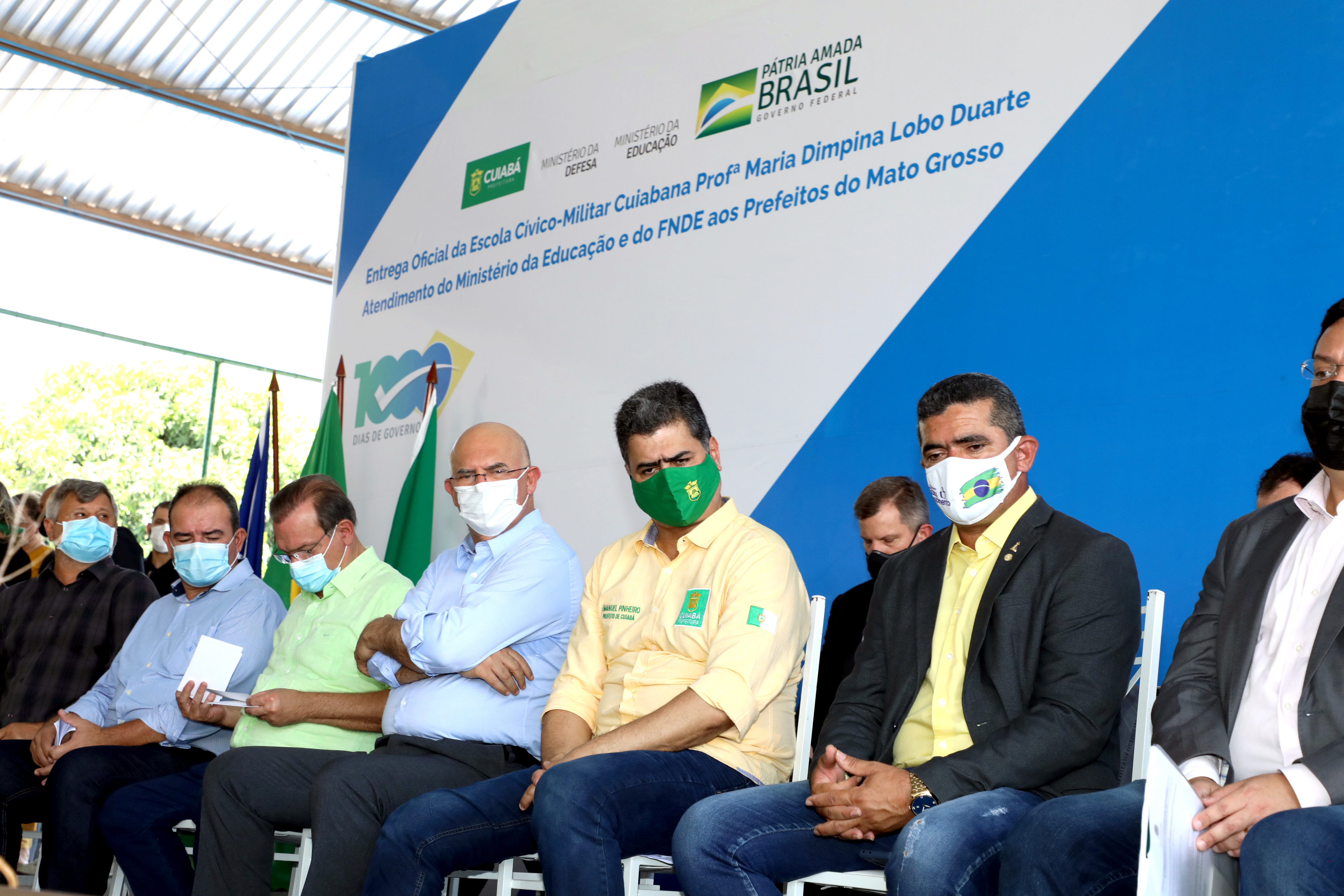 Presentes na solenidade, o senador, Wellington Fagundes, Marcelo Aquino prefeito de General Carneiro e vice presidente da Associação Matogrossense dos Municípios (AMM), deputado Elizeu Nascimento, presidente do Fundo Nacional do Desenvolvimento da Educação, Marcelo Lopes Pontes (FNDE), Gilson Passos diretor de políticas para escolas cívico militares, Luiz Robério de Souza Tavares, diretor de Supervisão da Educação Superior (DISUP/MEC), o ex-deputado federal, Vitório Galli, entre outras autoridades.