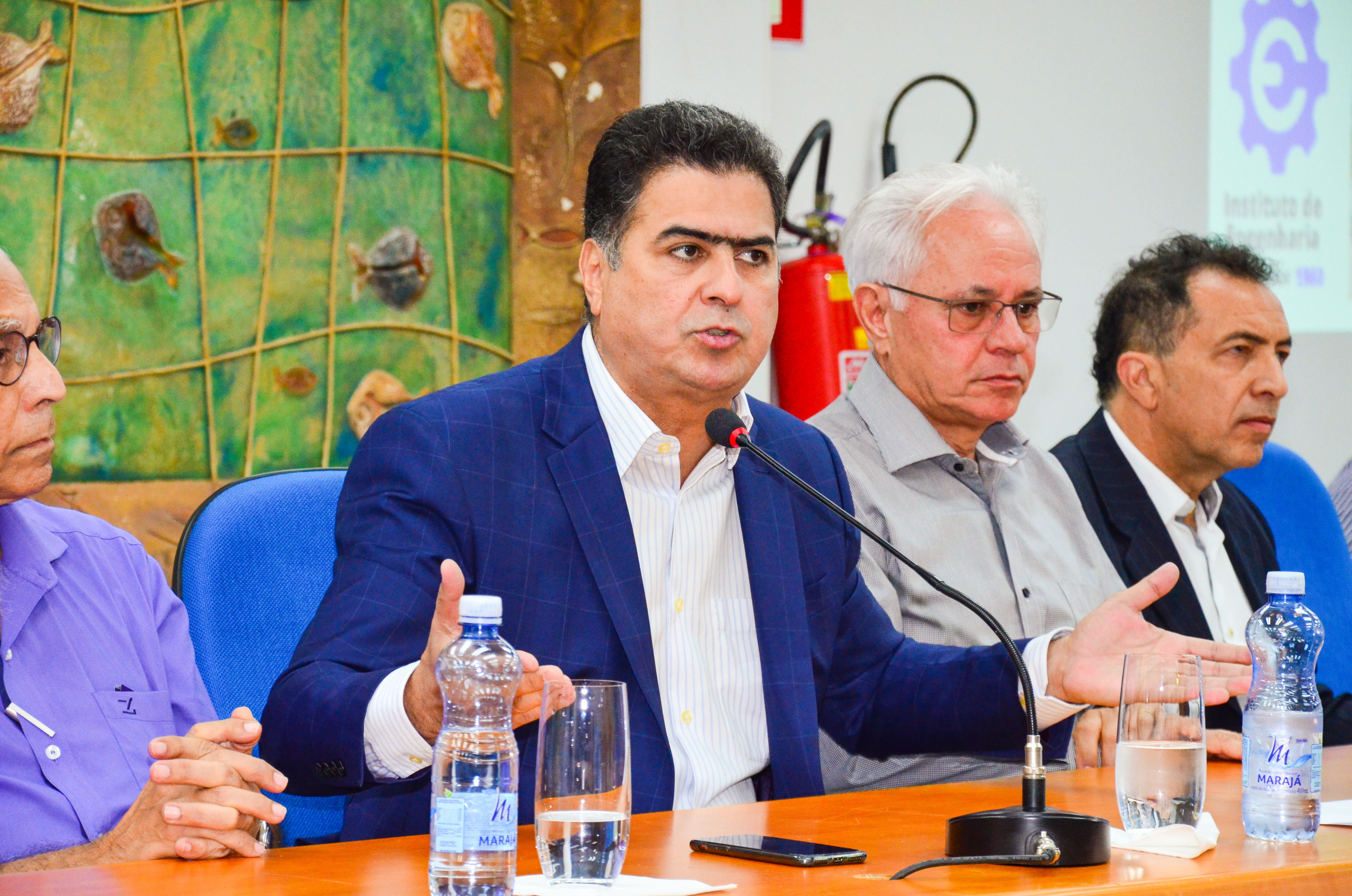 O prefeito de Cuiabá, Emanuel Pinheiro, participou nesta segunda-feira (12) da audiência pública promovida pelo Instituto de Engenharia de Mato Grosso em parceria com o Conselho Regional de Engenharia e Agronomia (CREA- MT) para debater a retomada das obras do Veículo Leve sobre Trilhos (VLT).