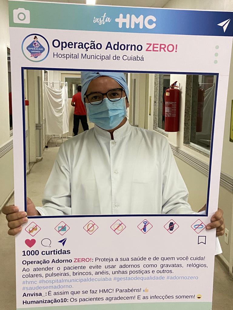 No dia 11 de abril, é celebrado o Dia do Infectologista, a data chama a atenção para a importância do trabalho do profissional na prevenção, diagnóstico e tratamento de doenças infecciosas. Uma das atuações deste profissional no Hospital Municipal de Cuiabá “Dr. Leony Palma de Carvalho”- HMC e Hospital Municipal São Benedito – HMSB é a operação adorno zero, que alerta sobre os riscos do uso de adornos (pulseira, crachá, gravata, anéis, relógios, colares, brincos etc) nas áreas assistenciais, que prestam atendimento direto ao paciente.