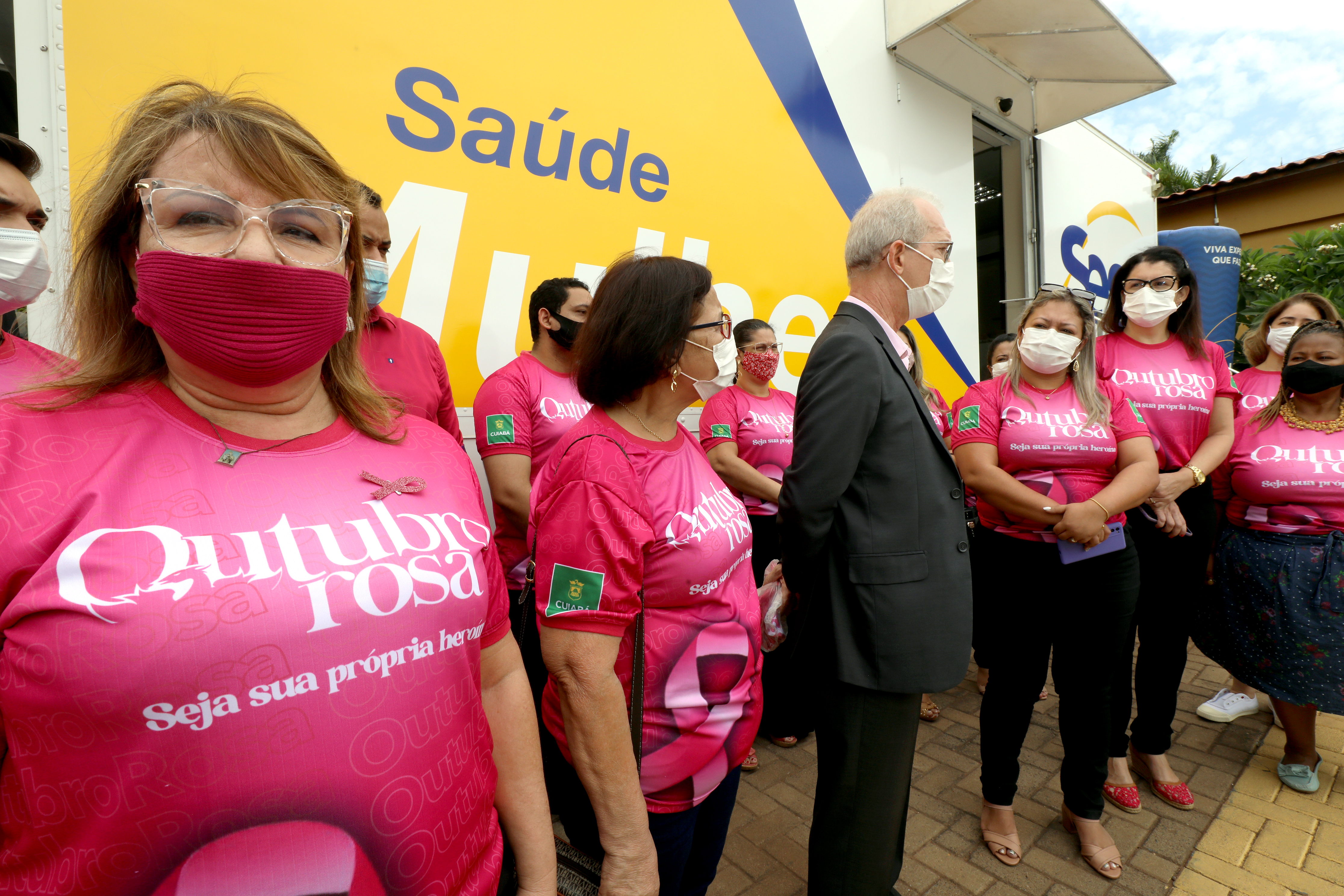 Foi lançada na manhã desta segunda-feira (4), no SESC Arsenal, a campanha “Outubro rosa – seja sua própria heroína”, uma parceria entre a Prefeitura de Cuiabá, através das Secretarias Municipais de Saúde e da Mulher e da Empresa Cuiabana de Saúde Pública e Núcleo de Apoio à Primeira-dama Márcia Pinheiro, e o Serviço Social do Comércio – SESC. Por meio dessa ação conjunta, serão realizados cerca de mil exames de mamografia e Citopatológico de Papanicolaou (CCO) ao longo do mês de outubro. As coletas ocorrerão na Carreta Saúde da Mulher, que está localizada no estacionamento do SESC Arsenal.