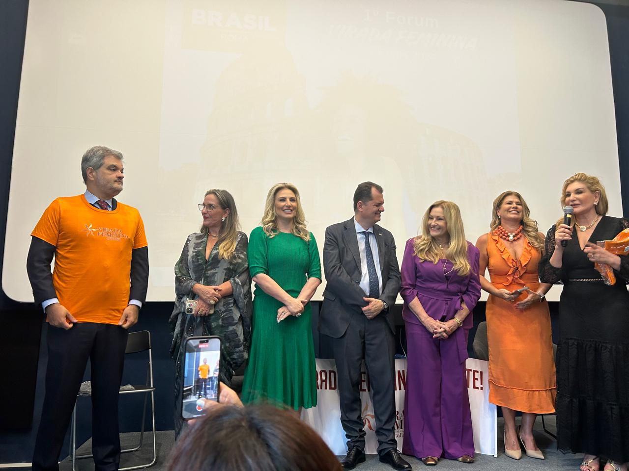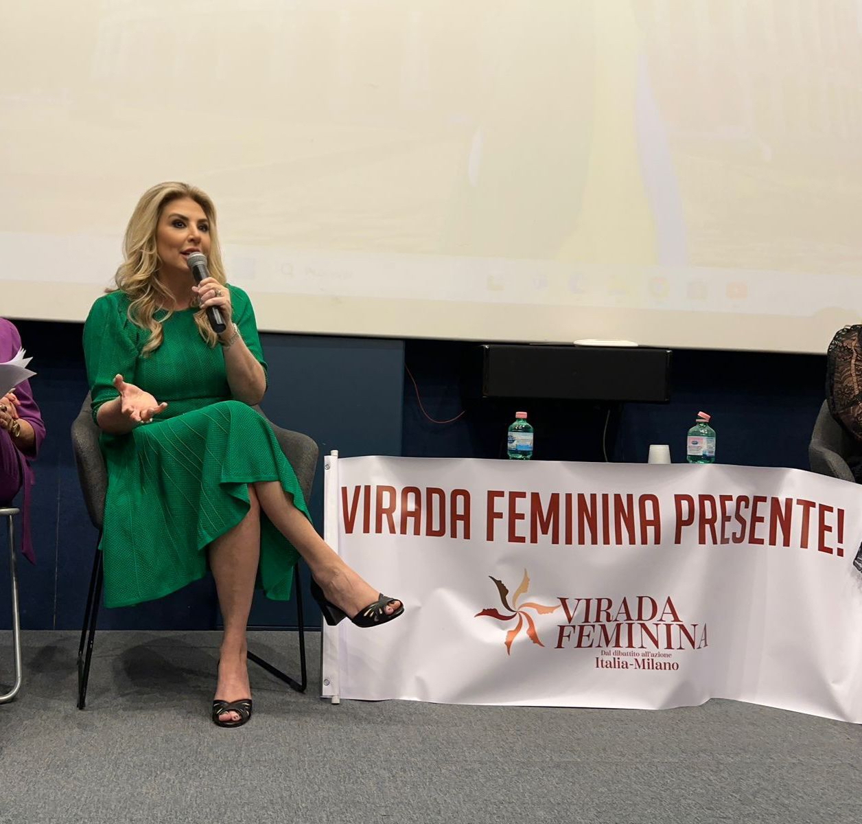 A primeira-dama de Cuiabá, Márcia Pinheiro, que também é vice-presidente nacional da Associação das Primeiras-damas, apresentou casos de empreendedorismo do programa Qualifica Mulher nesta segunda-feira (1), durante o 1º Fórum Internacional da “Virada Feminina”, realizado em Roma, capital da Itália.