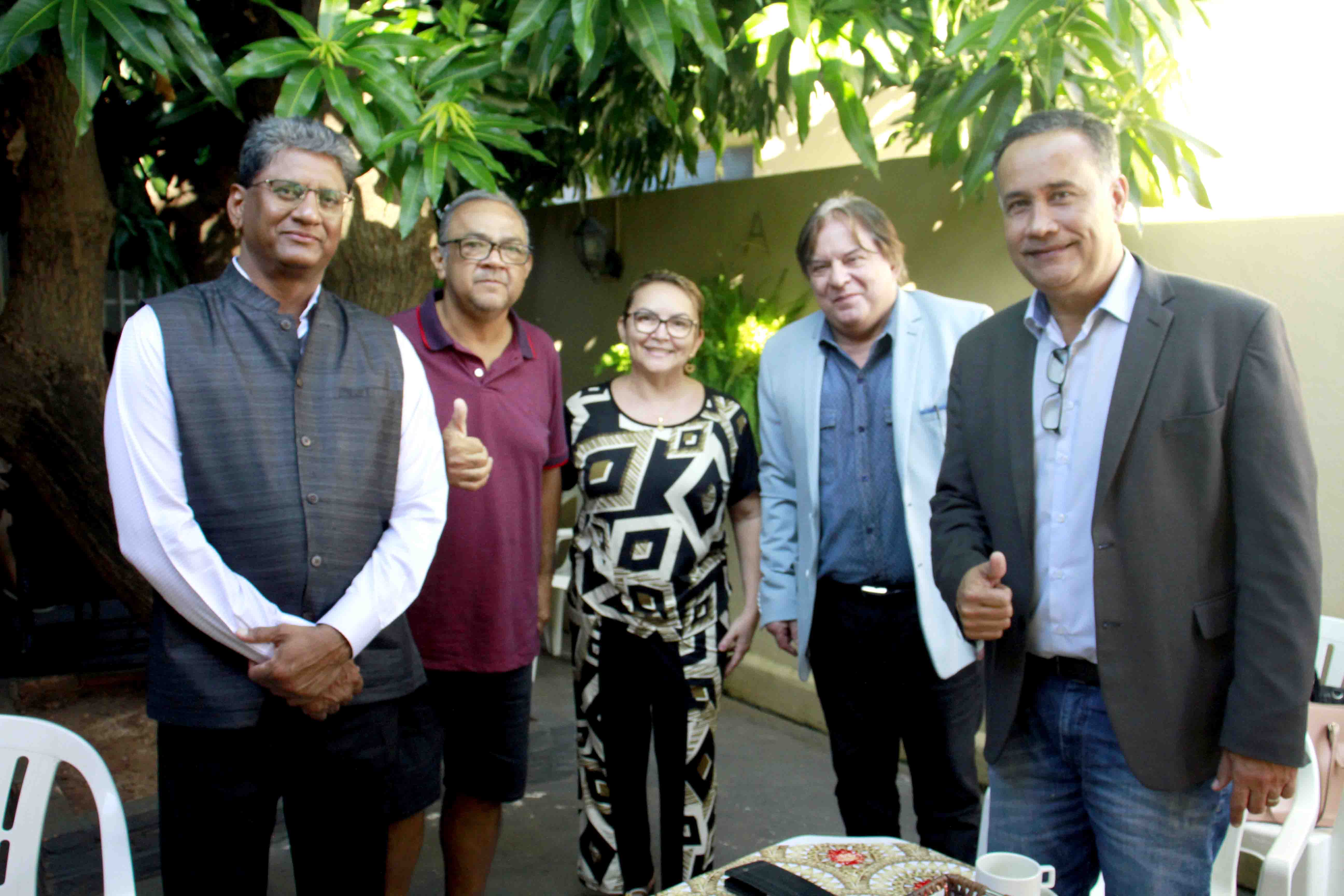 O embaixador da Índia no Brasil, Suresh Reddy, cumpre uma ampla agenda de atividades objetivando o fomento as relações e potencializar parcerias com Cuiabá. Na manhã desta terça-feira (20), o diplomata apreciou um delicioso café da manhã no tradicional ‘Chá com Bolo Cuiabano da Tia Fran’.