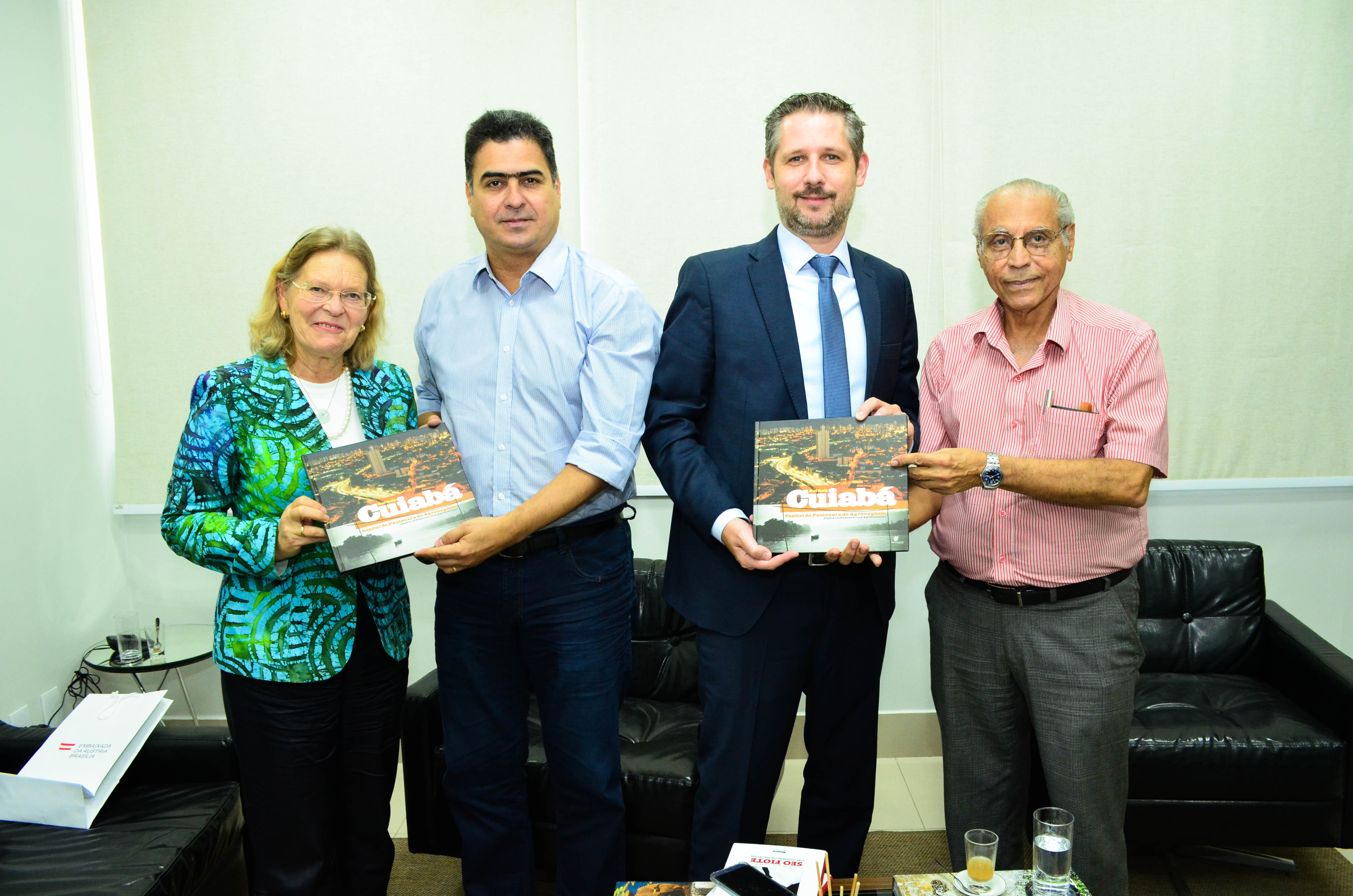 O prefeito de Cuiabá, Emanuel Pinheiro, recebeu nesta quinta-feira (7), a embaixadora da Áustria no Brasil, Irene Giner-Reichl, e o cônsul-geral da Áustria em São Paulo e chefe do Departamento Comercial do país, Klaus Hofstadler, para uma visita de cortesia na Prefeitura de Cuiabá, que contou com a participação do ex-governador de Mato Grosso, Júlio Campos.