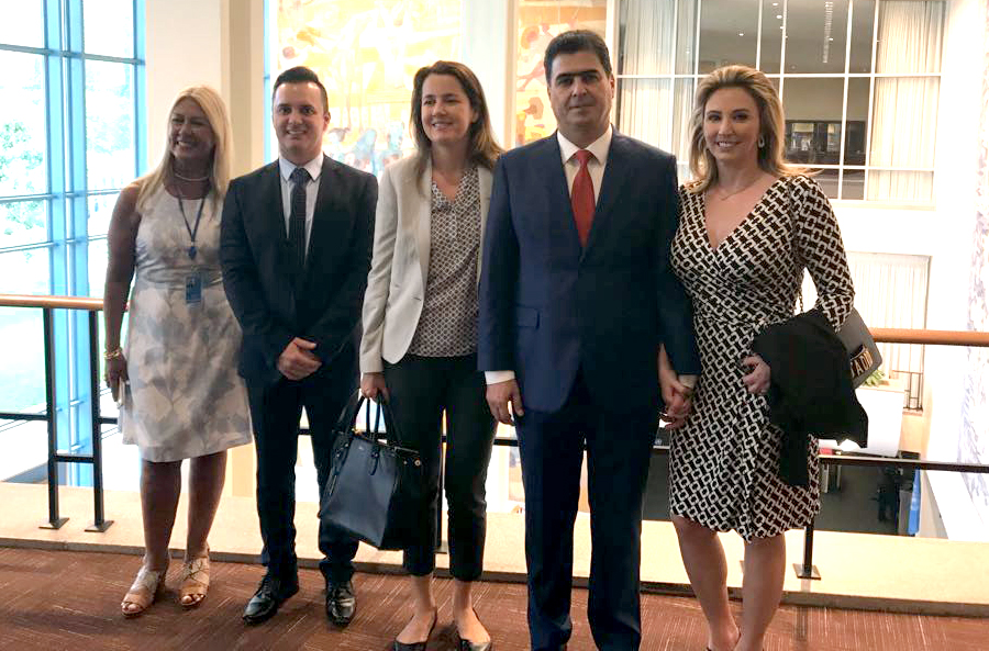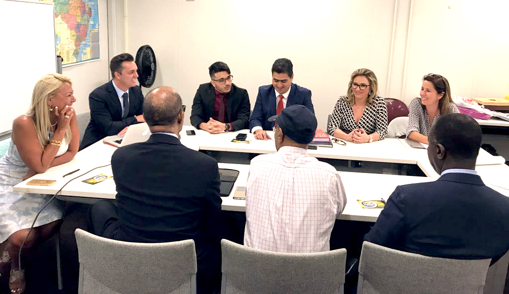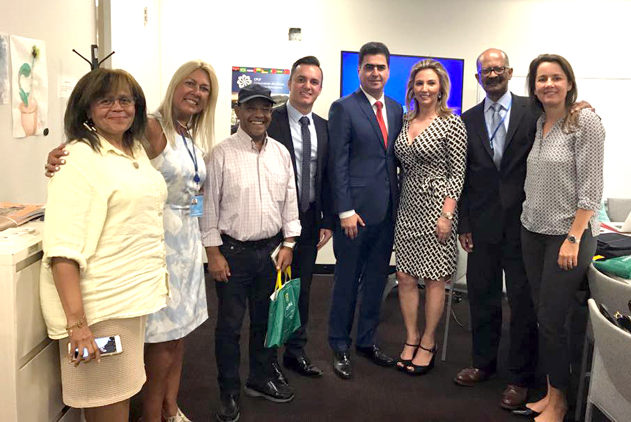 O prefeito de Cuiabá, Emanuel Pinheiro, visitou nessa segunda-feira (14) a sede da Organização das Nações Unidas (ONU), em Nova Iorque, no intuito de viabilizar uma parceria para a inclusão das ações dos 300 anos da Capital no calendário oficial da organização. Na oportunidade, o gestor, em companhia do secretário extraordinário dos 300 anos, Júnior Leite, apresentou as riquezas cuiabanas para a presidente do Portugueses Languege Institute da ONU, Rosely Saad, para a presidente do United Nations Staff Recreation Council, Tainá Glaudia, e também para o diretor de Eventos Especiais, Gordan Framer.