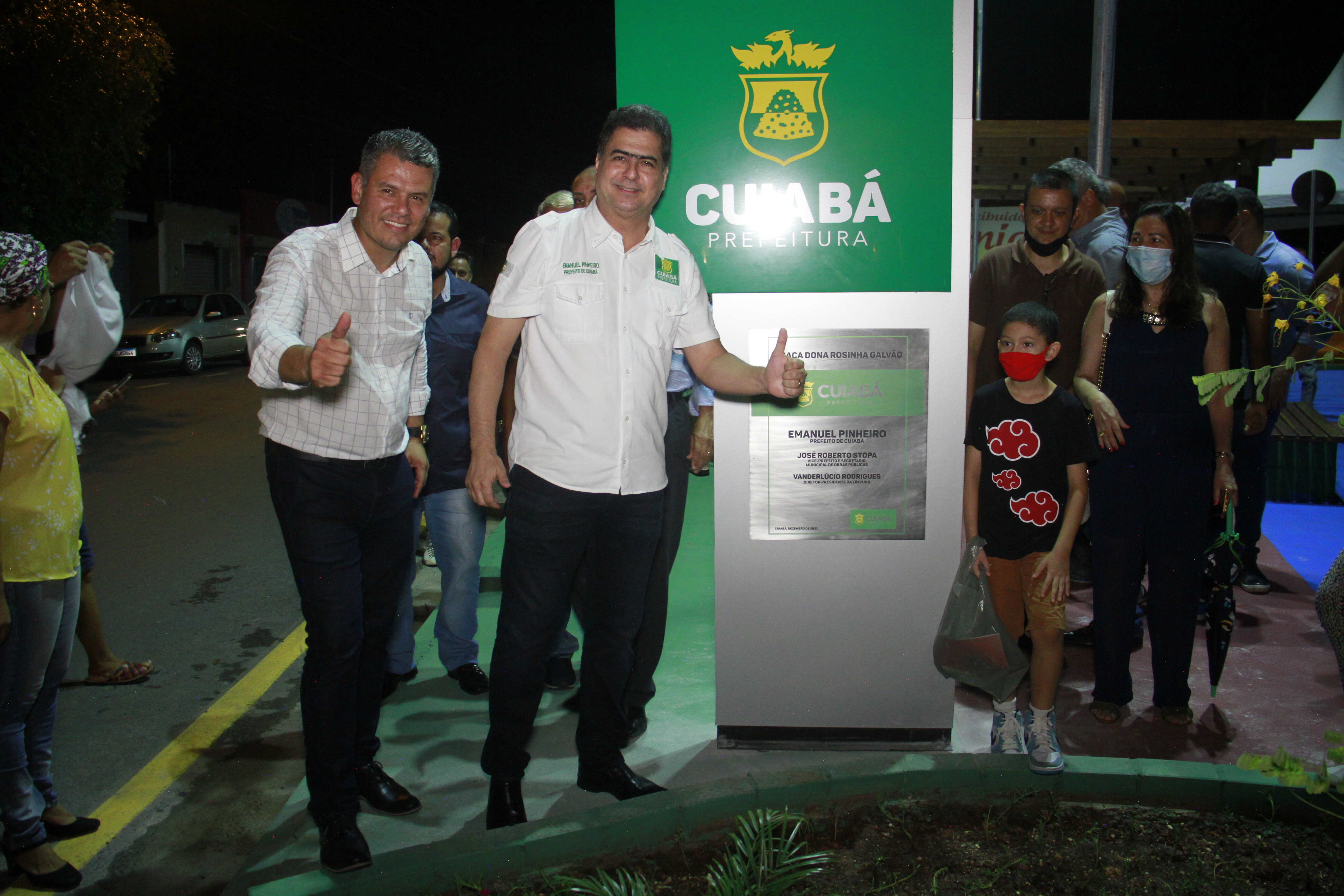 O prefeito Emanuel Pinheiro entregou nesta terça-feira (21) o 16º espaço de lazer revitalizado pela Prefeitura de Cuiabá, somente no ano de 2021. Localizada no bairro Lixeira, a Praça Dona Rosinha Galvão, homenageia uma das mais tradicionais famílias que ajudaram a construir a história da Capital. A revitalização foi executada por meio de parceria entre a Secretaria Municipal de Obras Públicas e a Empresa Cuiabana de Zeladoria e Serviços Urbanos (Limpurb).