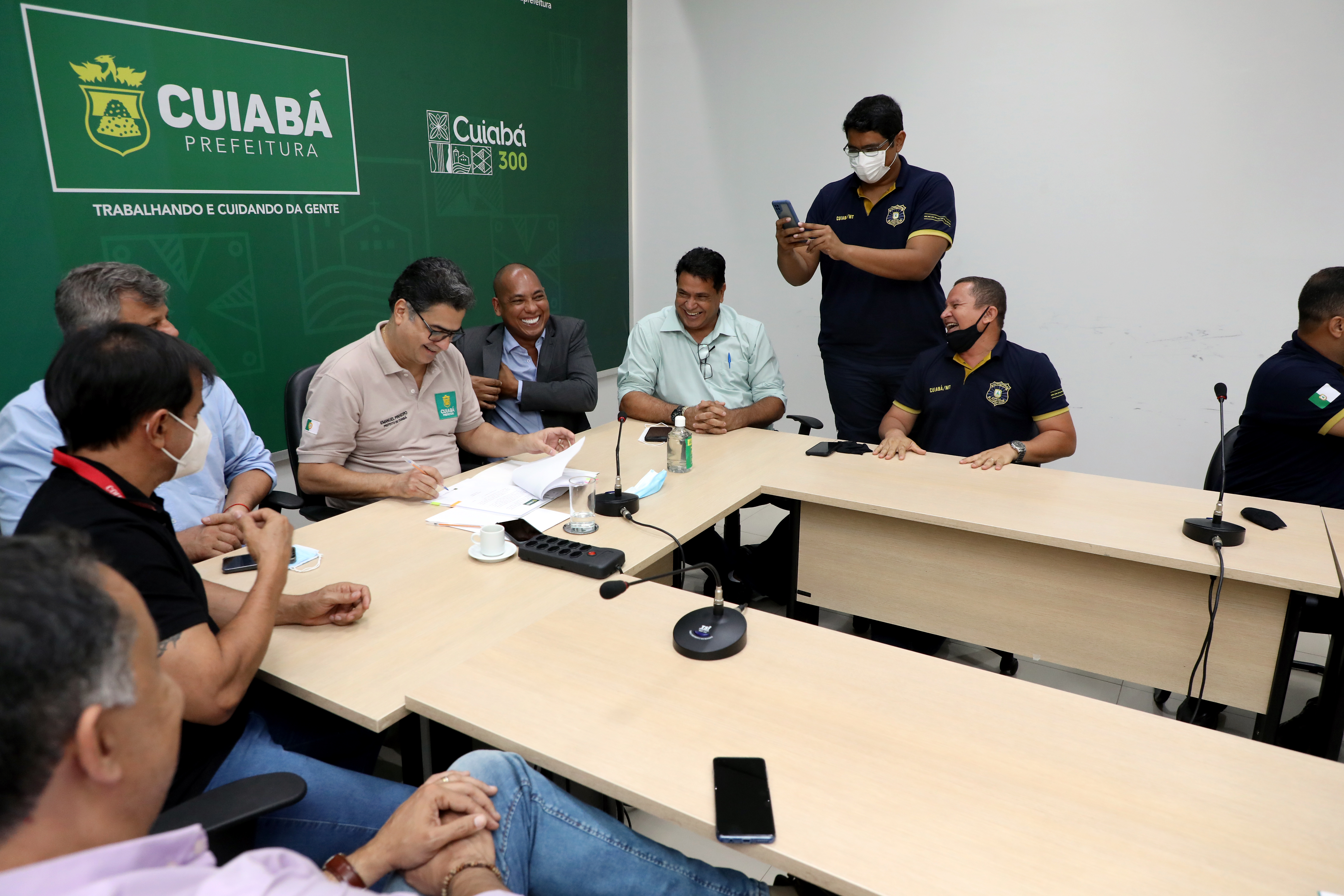 Estiveram presentes na reunião, o presidente do Sindicato dos Servidores Públicos Municipais de Cuiabá (Sispumc), o vereador Adevair Cabral e representantes da diretoria da Pasta de Mobilidade Urbana.