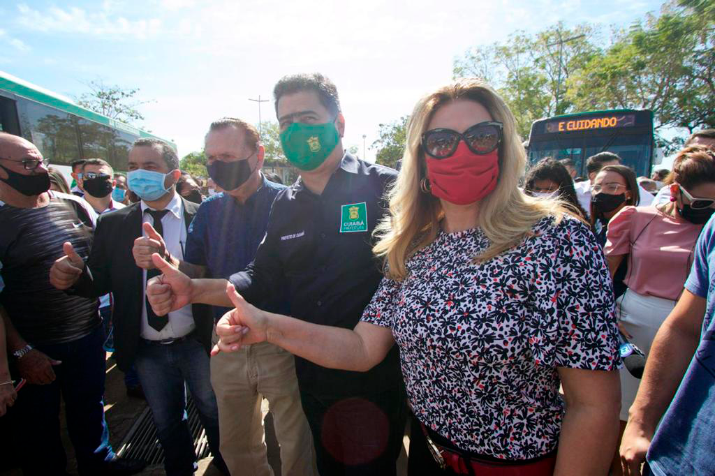 "Estou aqui com a minha esposa, a primeira-dama Marcia Pinheiro, que é o meu sustentáculo, uma guerreira que ao meu lado me ajuda a tomar as decisões. Meu filho, Elvis Kuhn, representando o deputado federal, Emanuel Pinheiro Neto. E quero dizer, até o final do meu mandato, Cuiabá será a única capital do país com 100% da frota renovada com elevadores para PCDs, wi-fi e ar-condicionado, um caminho sem volta. Terá portas para os dois lados para atender o modal que será implantado na Capital. Se for o VLT, a porta para o lado direito e se for BRT usará o lado esquerdo. Estou entregando o BRT para Cuiabá, esses 144 ônibus já representa o BRT. E peço ao Estado que nos ajude a trazer a modernidade, o que existe de melhor no desenvolvimento sustentável, no caso, o VLT. Hoje, a história da mobilidade irá mudar. Começamos com o corredor exclusivo para ônibus, e passamos para o ligeirinho, fomos para estações sustentáveis (Alencastro, Bispo e Ipiranga), estamos trocando todos os abrigos de ônibus seguindo um padrão. Estamos saindo de 18% para 60% da frota com ar-condicionado. E, ano que vem, a frota com ar-condicionado irá para 75%. Com esses 144 ônibus estamos diminuindo a idade média da frota. Esse é o padrão Emanuel Pinheiro, priorizar os mais humildades e mais carentes, transformando Cuiabá em uma cidade mais justa e solidária e muito melhor para se viver. Esse é o desejo da minha família e do meu governo", discursou o prefeito da Capital.