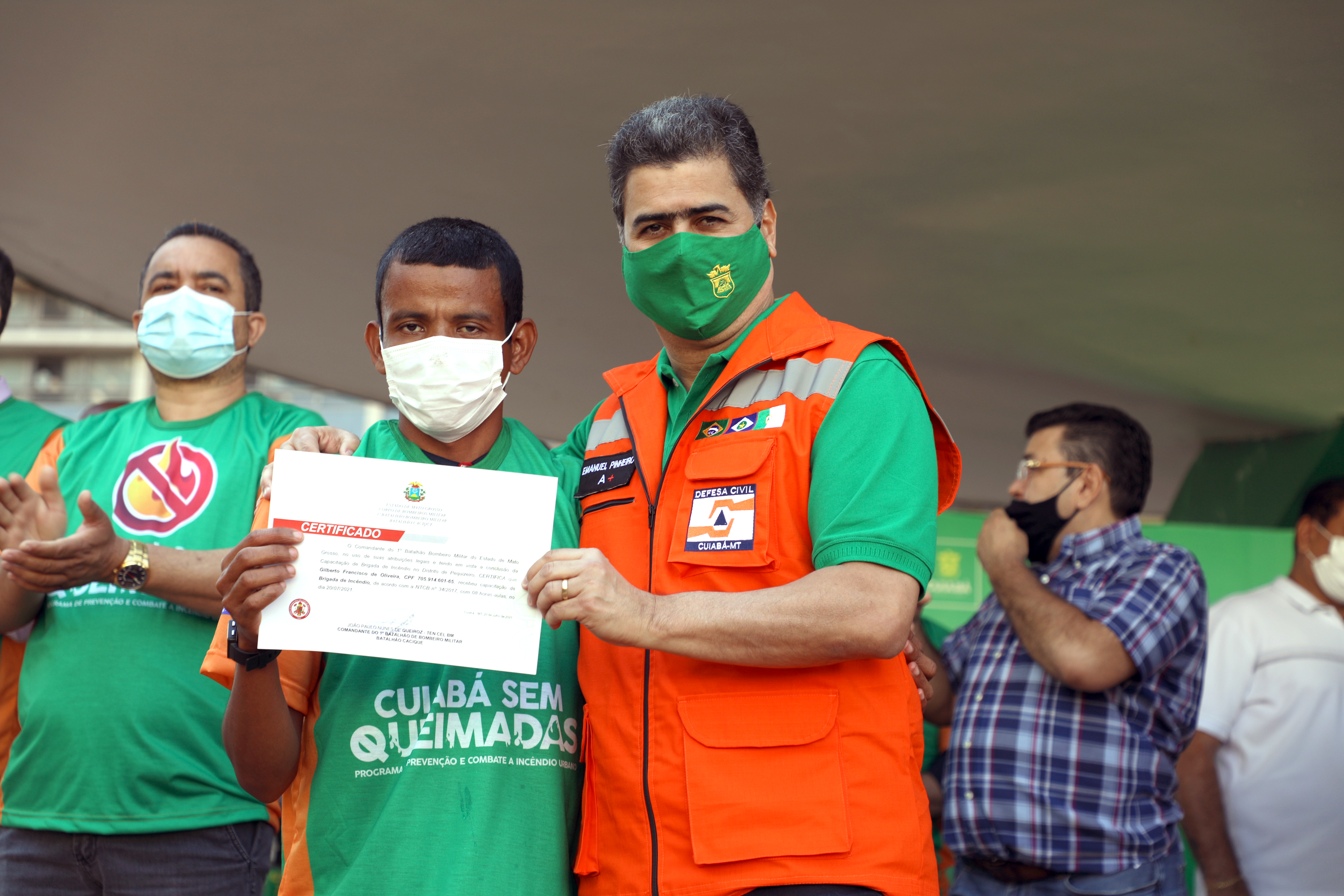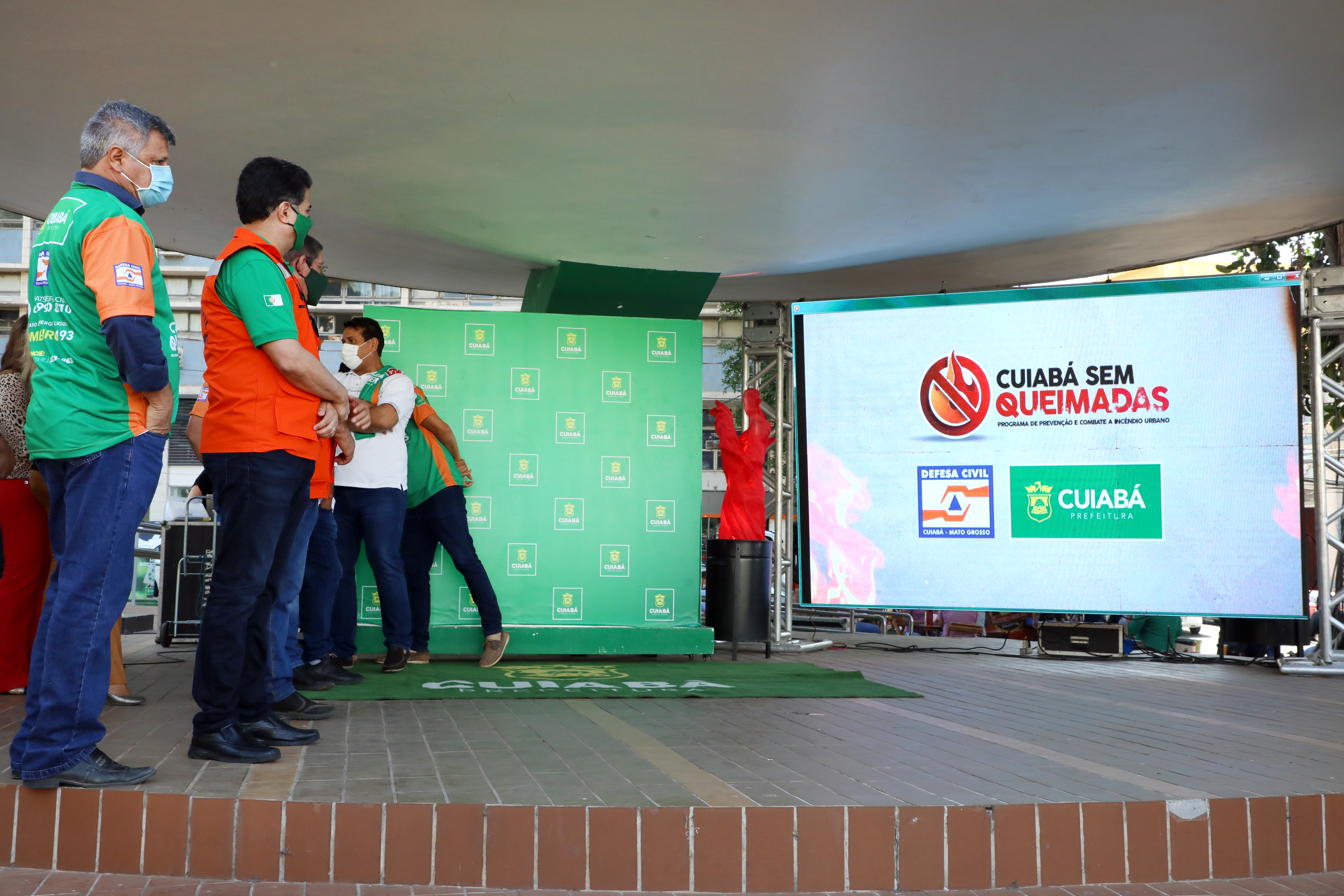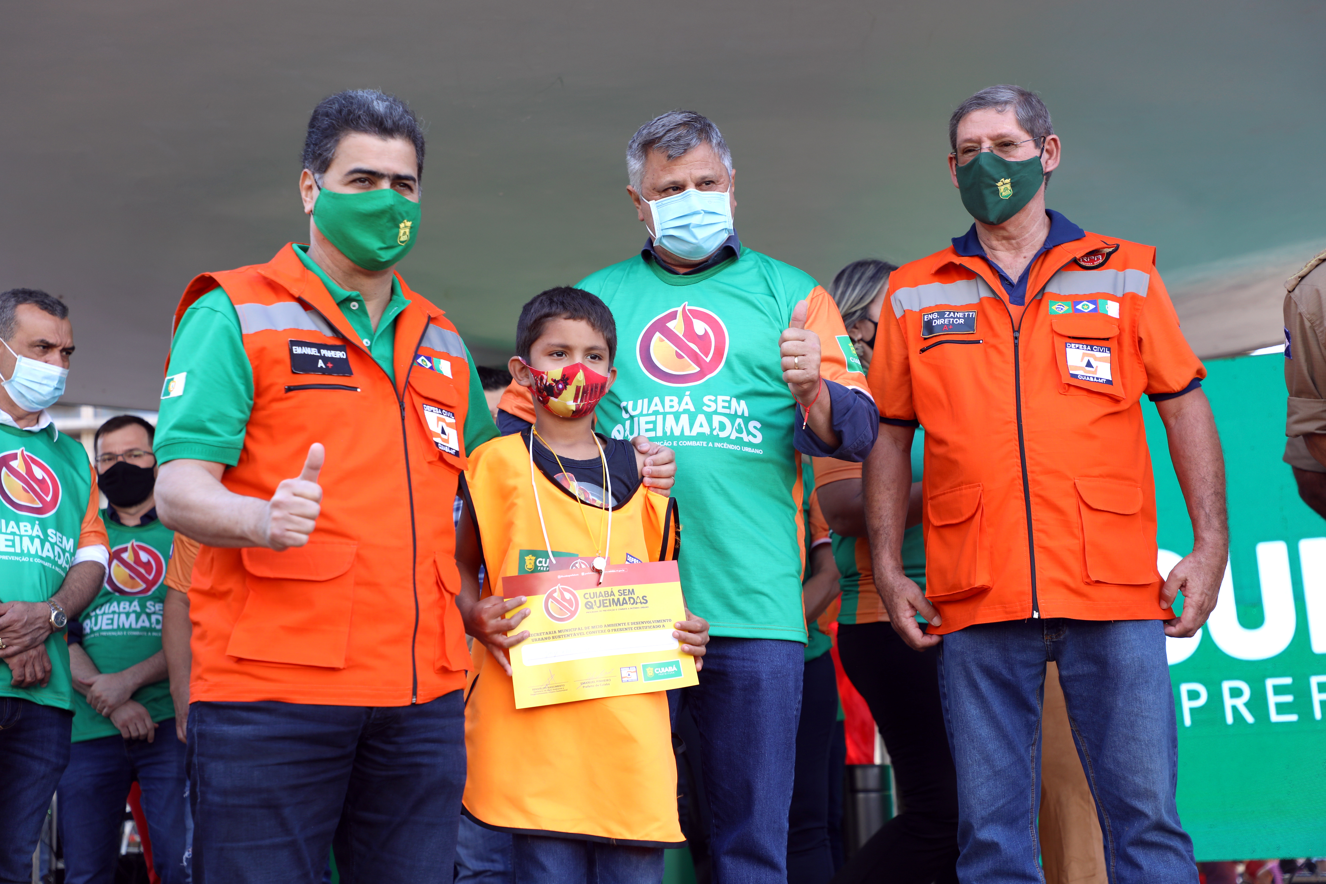 O prefeito de Cuiabá Emanuel Pinheiro lançou na manhã desta sexta-feira (06), na praça Alencastro, o Programa Municipal de Prevenção e Combate às Queimadas Urbanas de Cuiabá. Quatro viaturas - uma para cada região da cidade - foram entregues para reforçar o trabalho da Secretaria de Ordem Pública, por meio da Defesa Civil. Brigadistas voluntários de comunidades da zona rural e brigadistas mirins do Coxipó do Ouro receberam certificados de formação durante o ato. O Programa será executado conjuntamente pela Secretaria de Meio Ambiente e Desenvolvimento Urbano e Sustentável, a Secretaria de Ordem Pública, por meio da Defesa Civil e Secretaria de Governo.