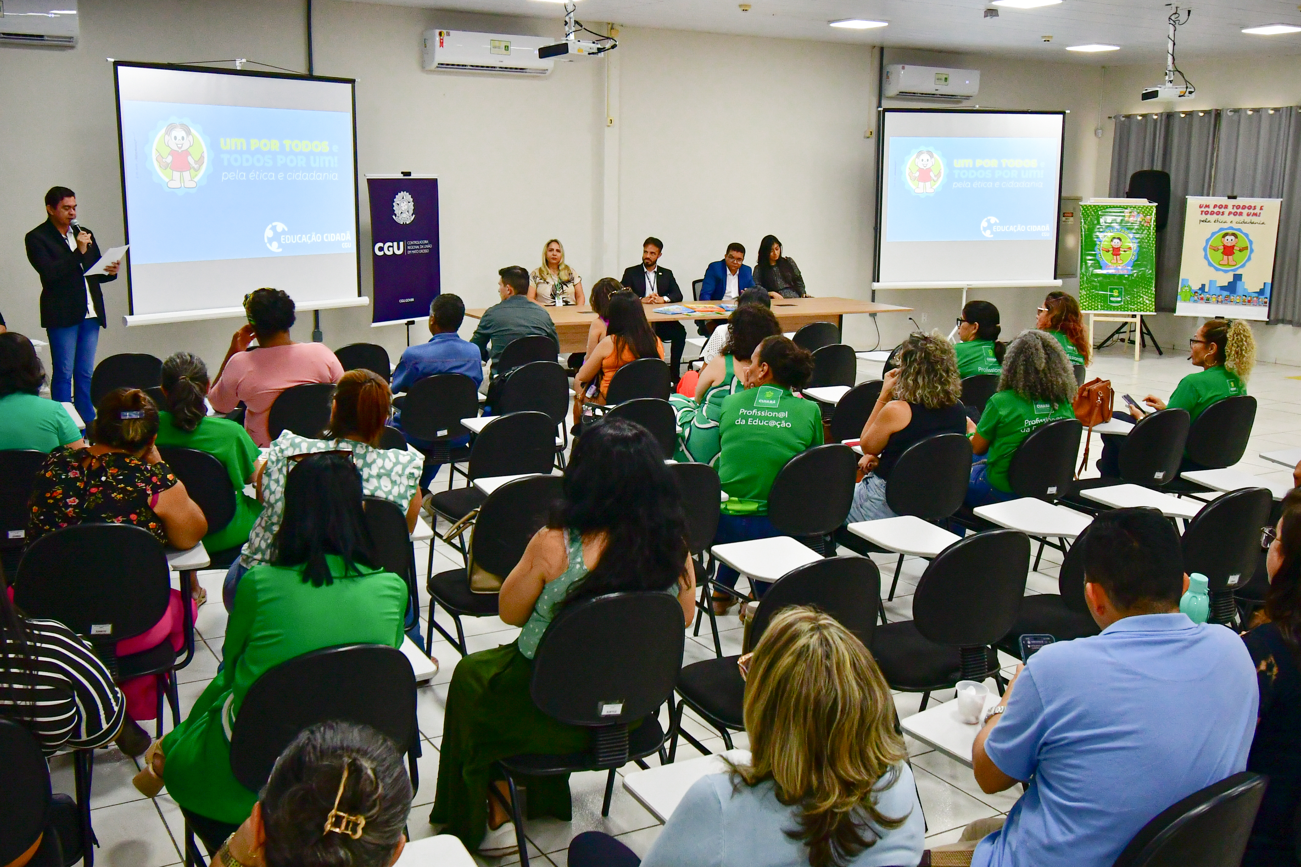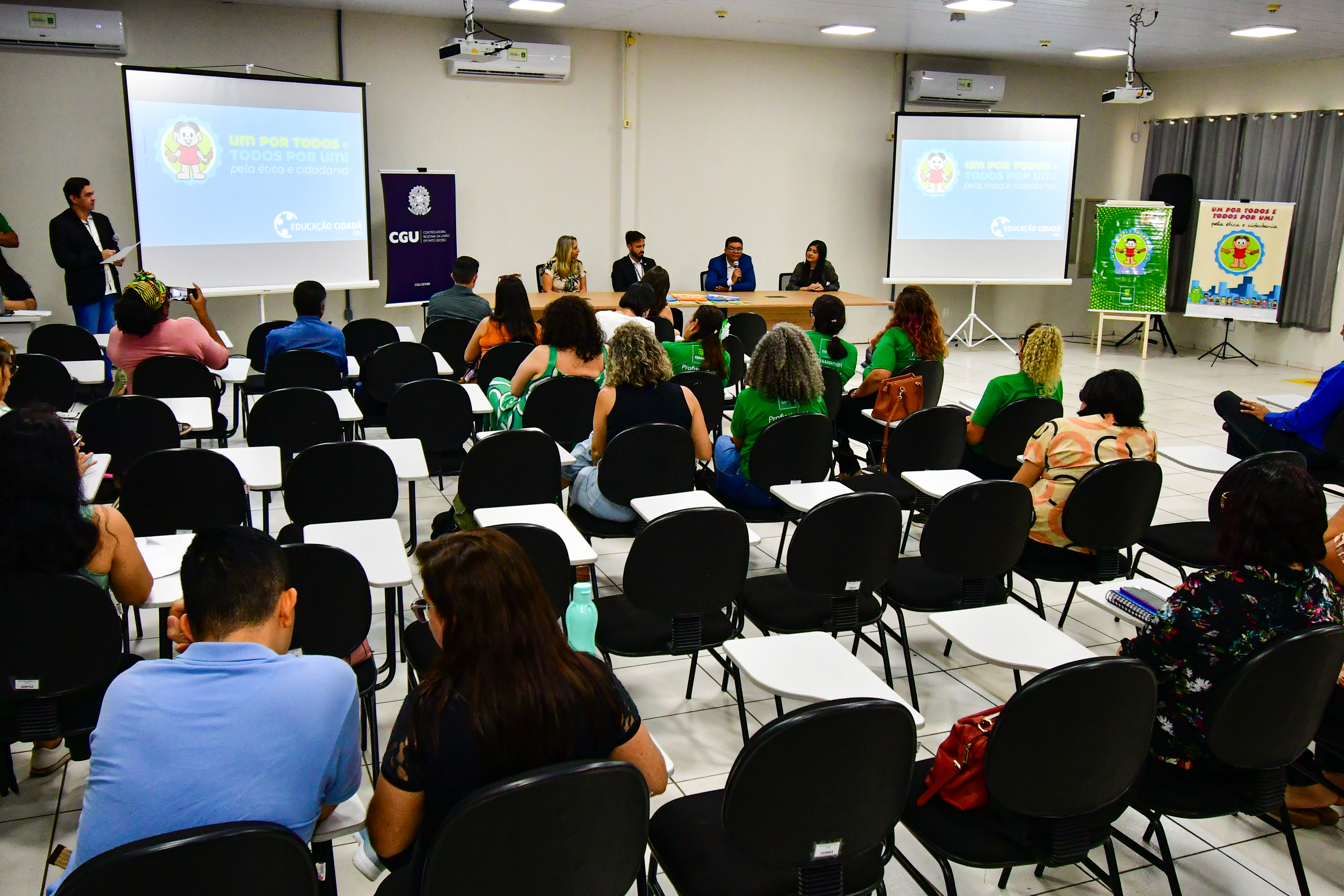 Os alunos do 1º ao 5º ano do Ensino Fundamental de 10 escolas municipais de Cuiabá estão participando do programa “Um Por Todos e Todos Por Um! Pela Ética e Cidadania” este ano. Essa iniciativa é fruto de uma parceria entre a Prefeitura de Cuiabá, a Controladoria Geral da União (CGU) e a Secretaria Municipal de Educação (SME), em andamento desde 2014. Neste ano, além do aumento do interesse das escolas, uma delas, a EMEB Professora Gracildes Melo Dantas, desenvolverá o projeto de forma digital. Essa novidade foi anunciada durante o lançamento do programa na segunda-feira (29), com a presença de representantes das instituições envolvidas e das 10 unidades escolares. A abertura do evento, no Centro de Formação da Escola Cuiabana, incluiu uma apresentação cultural de Siriri da Escola Professora Gracildes Melo Dantas.