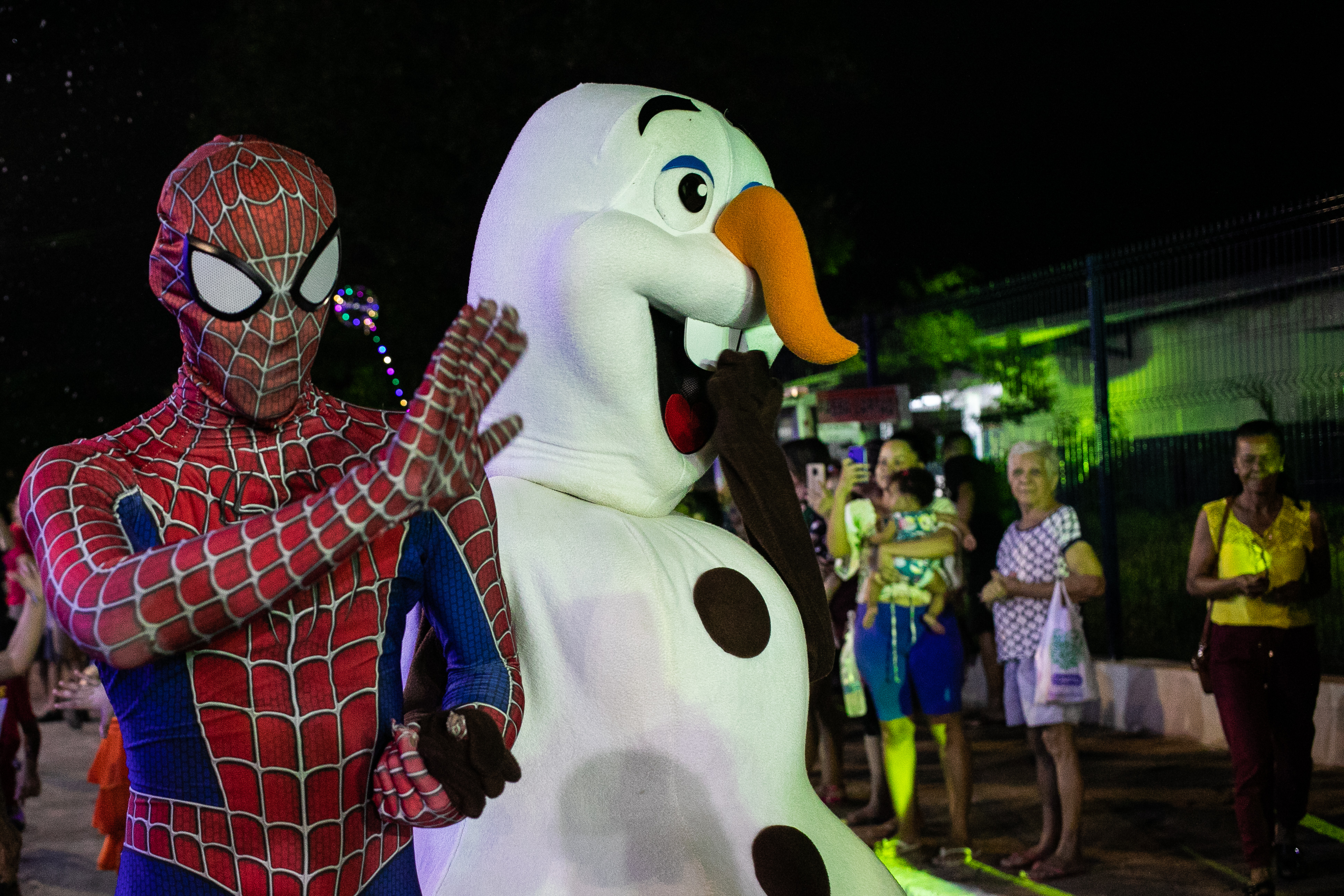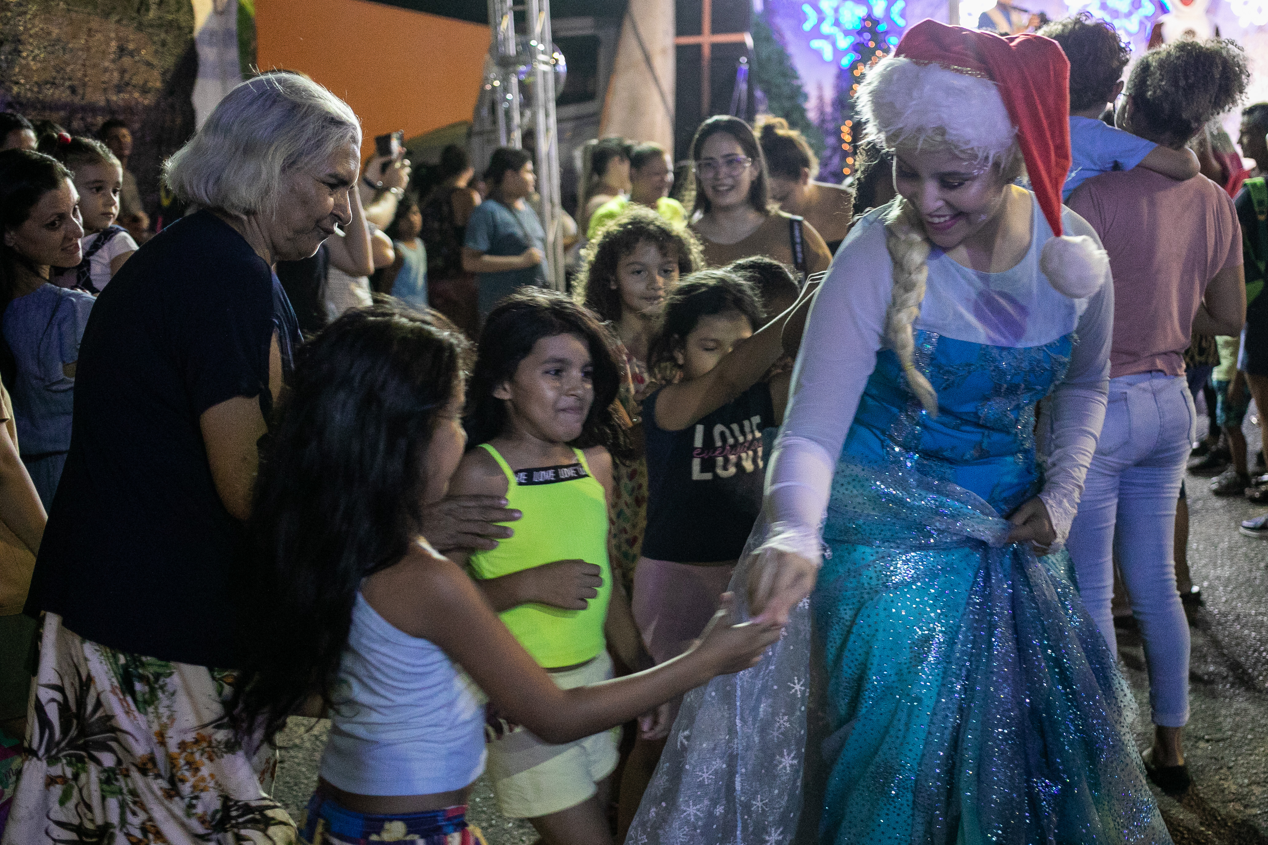 A pequena Camila Souza, de 3 anos, também se divertiu muito, acompanhada pela mãe Ane de Souza e pela prima Isabela Calazaens. Enquanto aguardavam a chegada do Papai Noel, aproveitaram a animação promovida pelo grupo da Tia Hanna, que incluía personagens como Elsa, Olaf, Homem-Aranha e Zuma da Patrulha Canina, proporcionando música, brincadeiras e diversão.