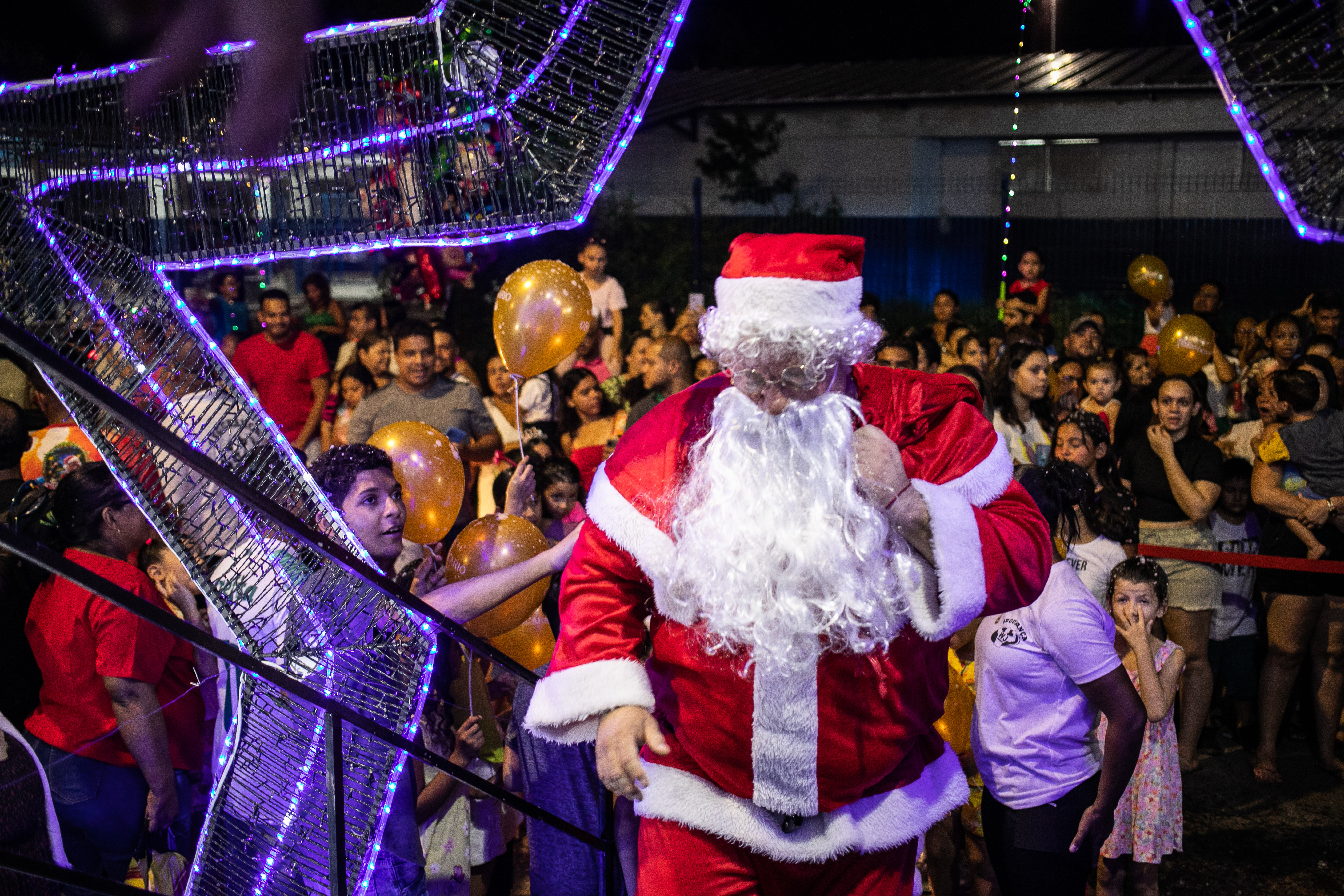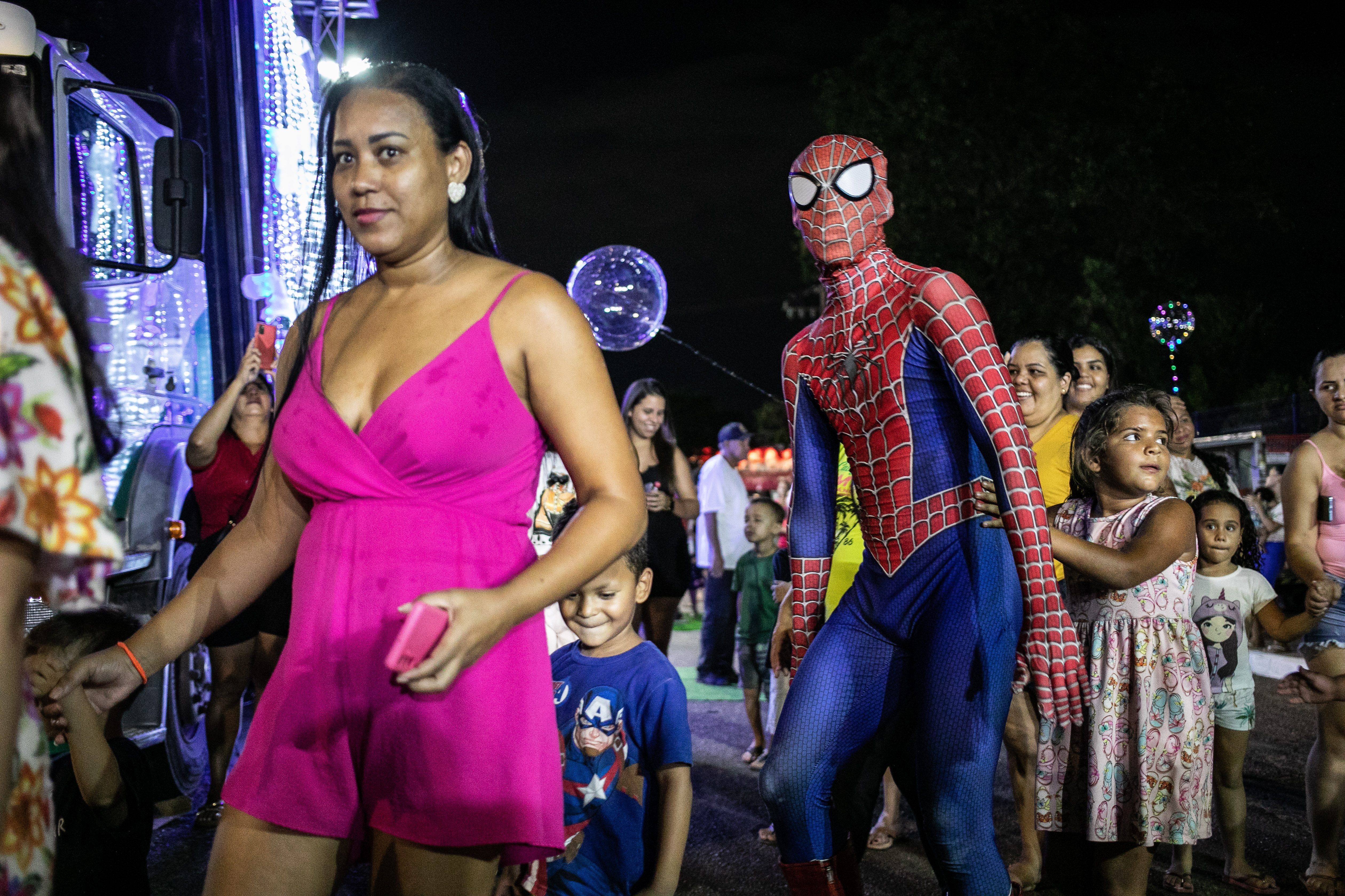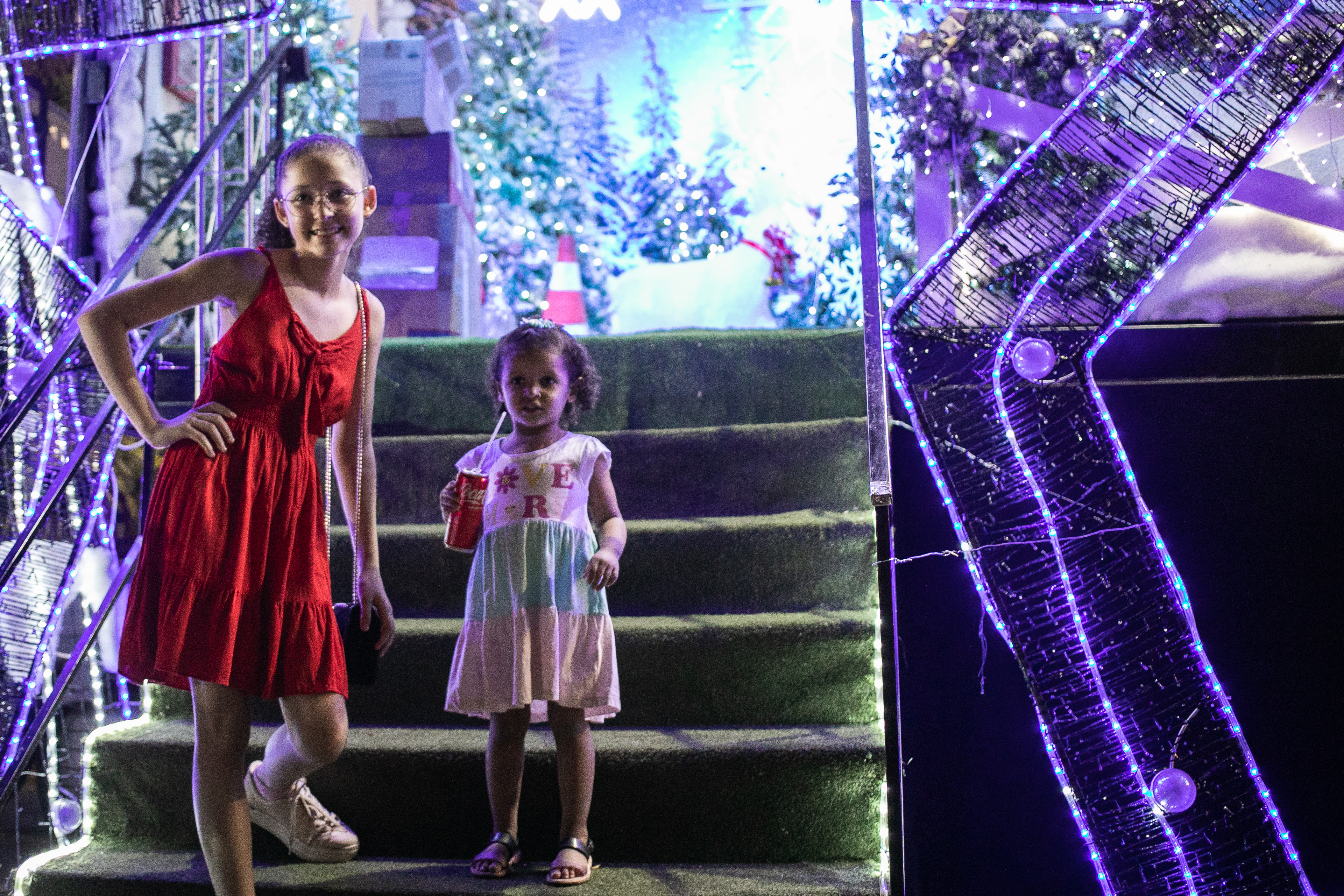 Antecipando a magia natalina, a mãe, Cidilaine dos Santos, de 44 anos, preparou trajes especiais para a ocasião, envolvendo toda a família nessa magia festiva. Vestidos como Papai Noel, eles aguardavam ansiosos a chegada da Carreta de Luz, parte integrante do evento que está percorrendo diversos bairros, incluindo o CPA I.